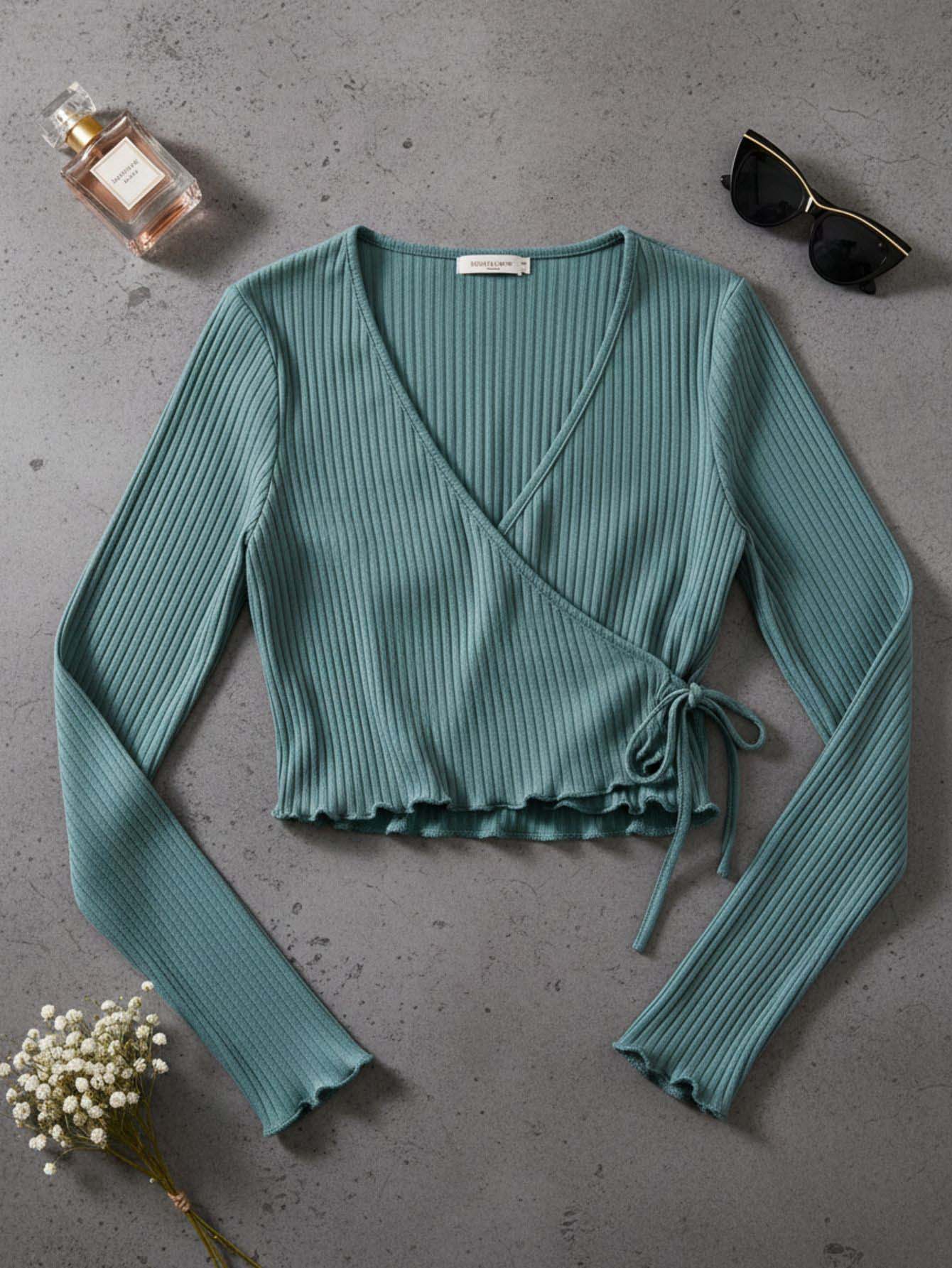 بلوزة محبوكة برباط جانبي مزينة بالخس