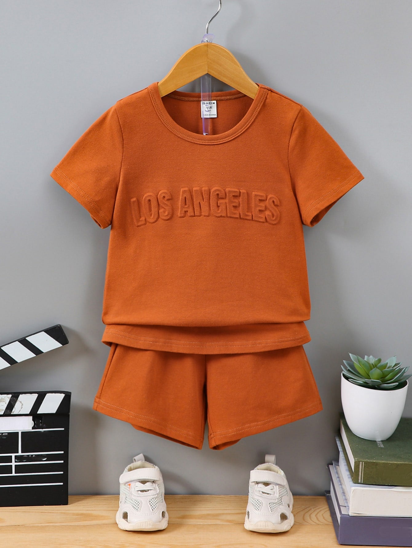 Young Boy 2pcs/Set Los Angeles Letter Print Short Sleeve T-Shirt And Shorts Set, Summer Casual And Breathable