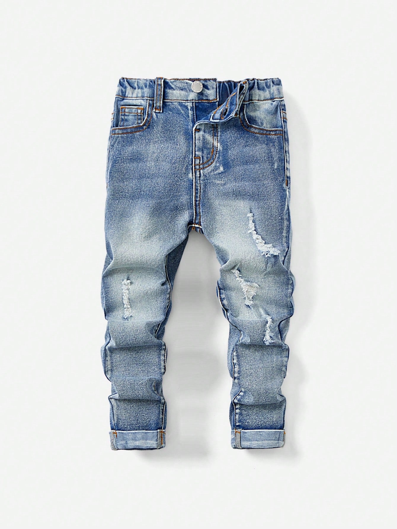 بنطلون جينز ممزق غير متماثل بخصر متوسط مناسب للأولاد الصغار