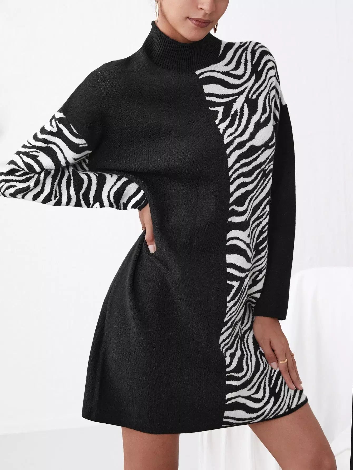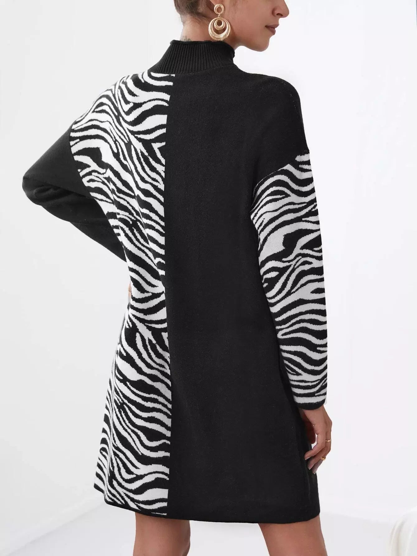 فستان برقبة منسدلة على الكتفين بنقشة حمار وحشي مخطط على شكل سترة برقبة منسدلة على الكتفين