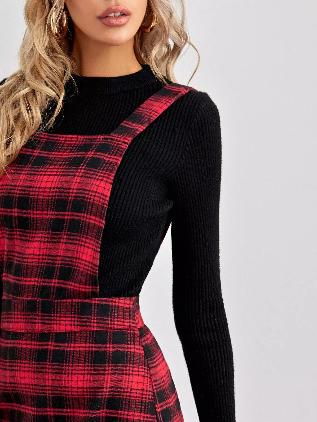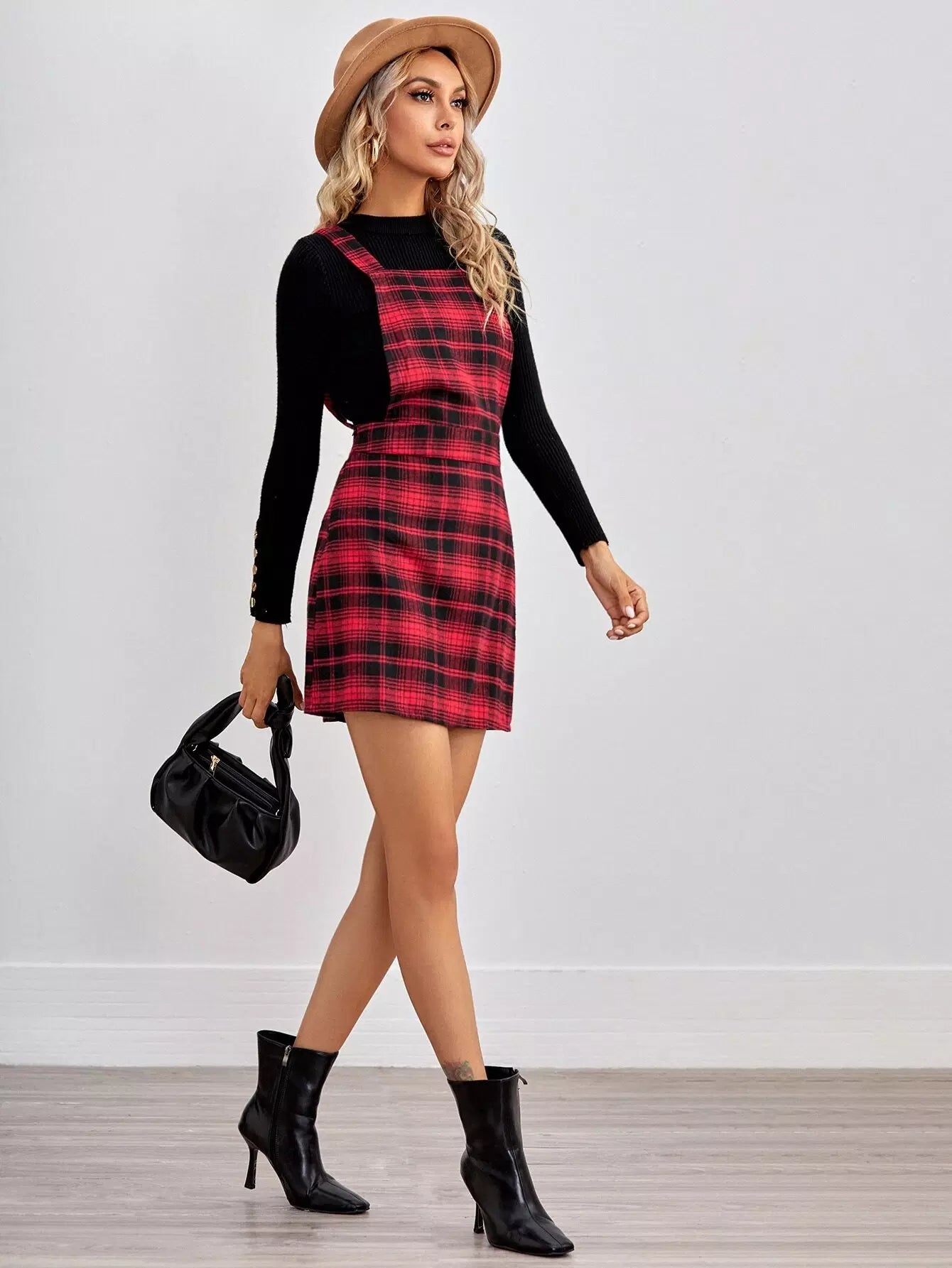 فستان تارتان جانبي بسحاب جانبي بسحاب