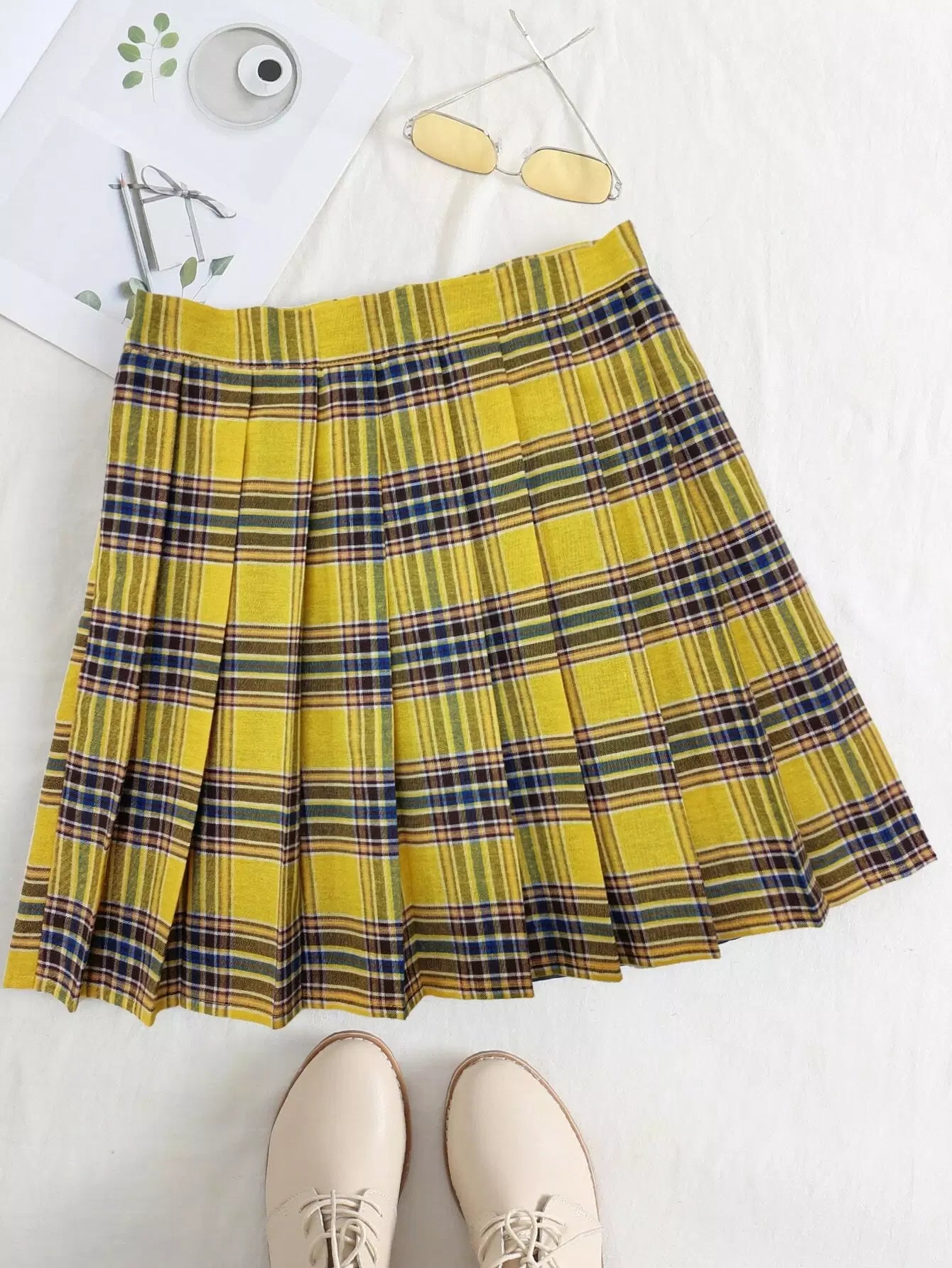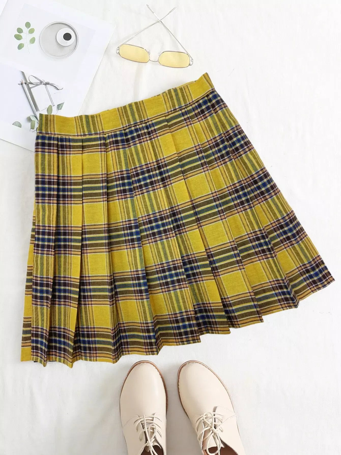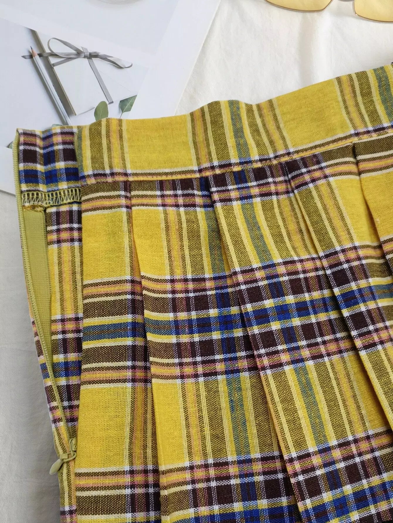 للنساء - تنورة ذات ثنيات من قماش الترتان بسحاب جانبي