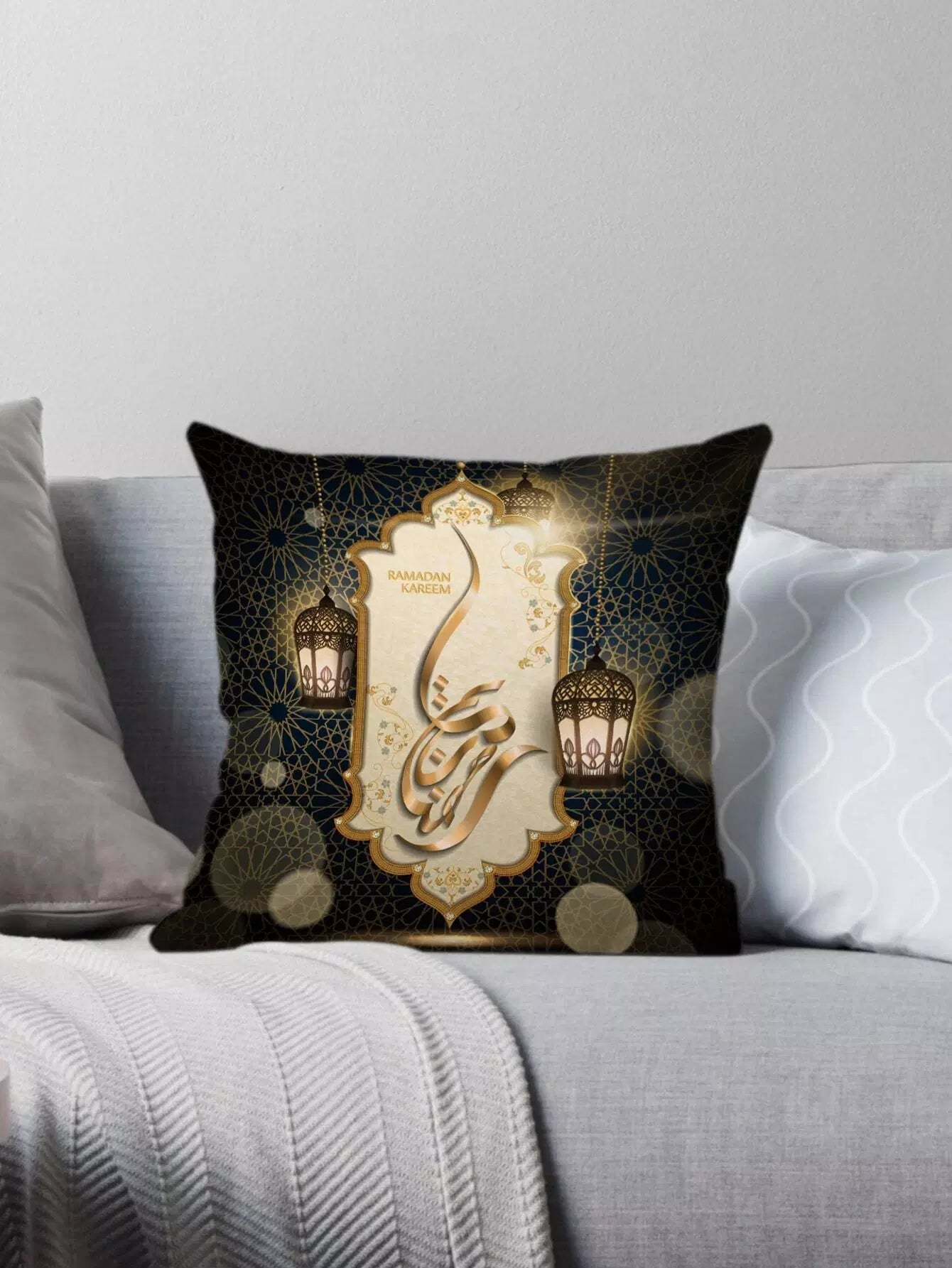 Lantern Print Ramadan Cushion Cover Without Filler
