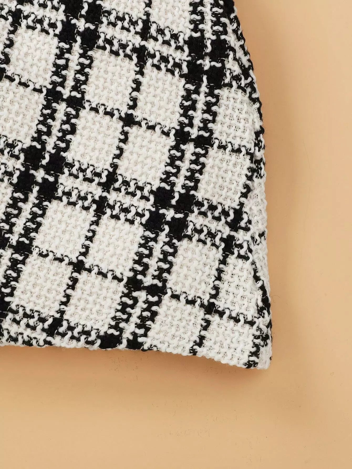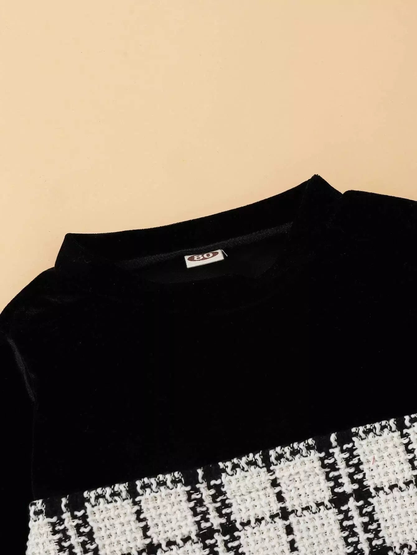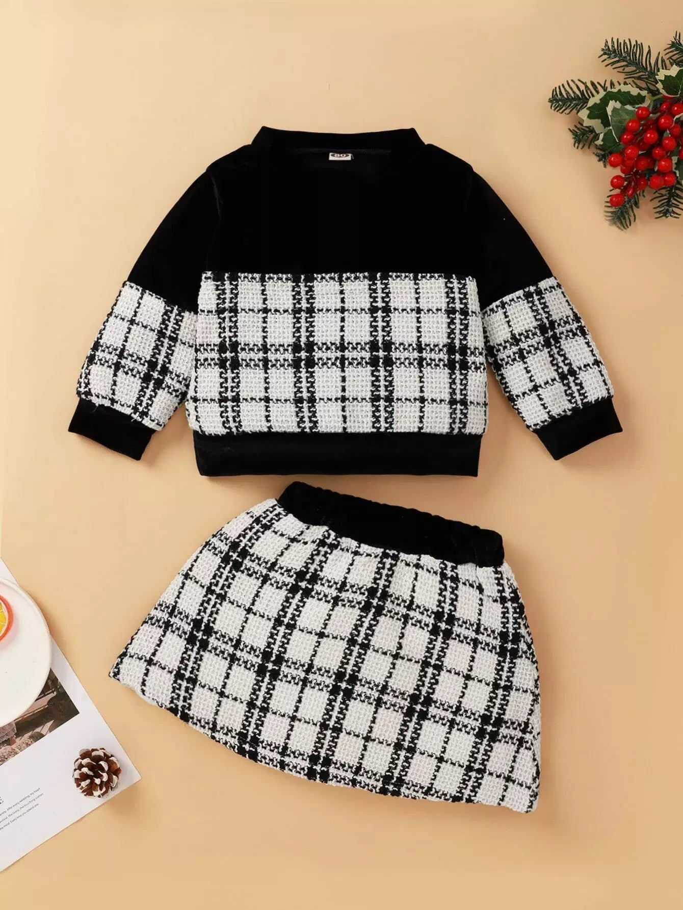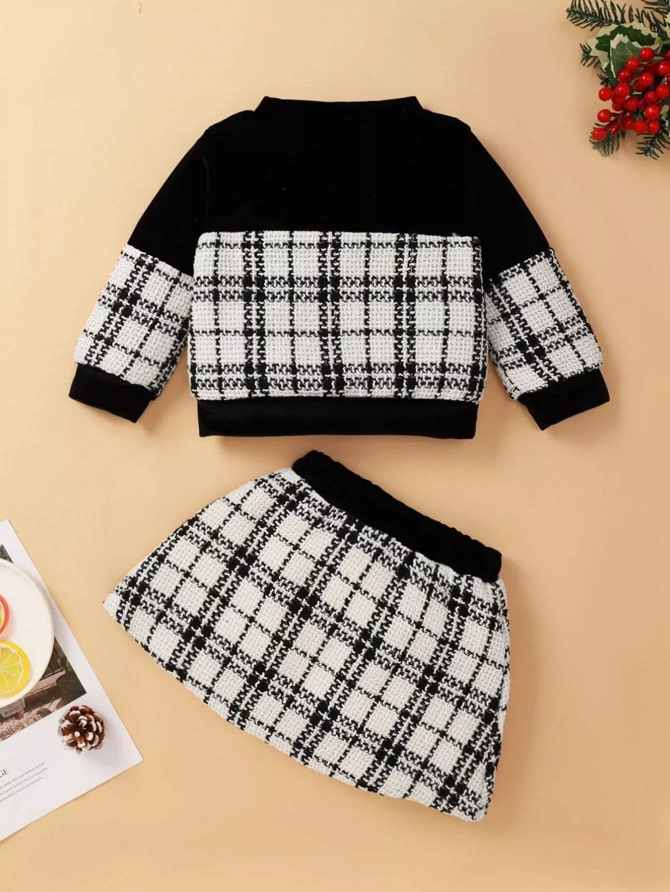 Baby Girl Tweed Plaid Sweatshirt With Skirt