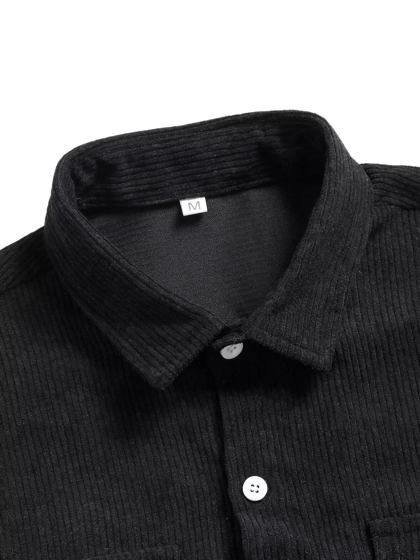 Men 1pc Corduroy Flap Pocket Button Front Shirt