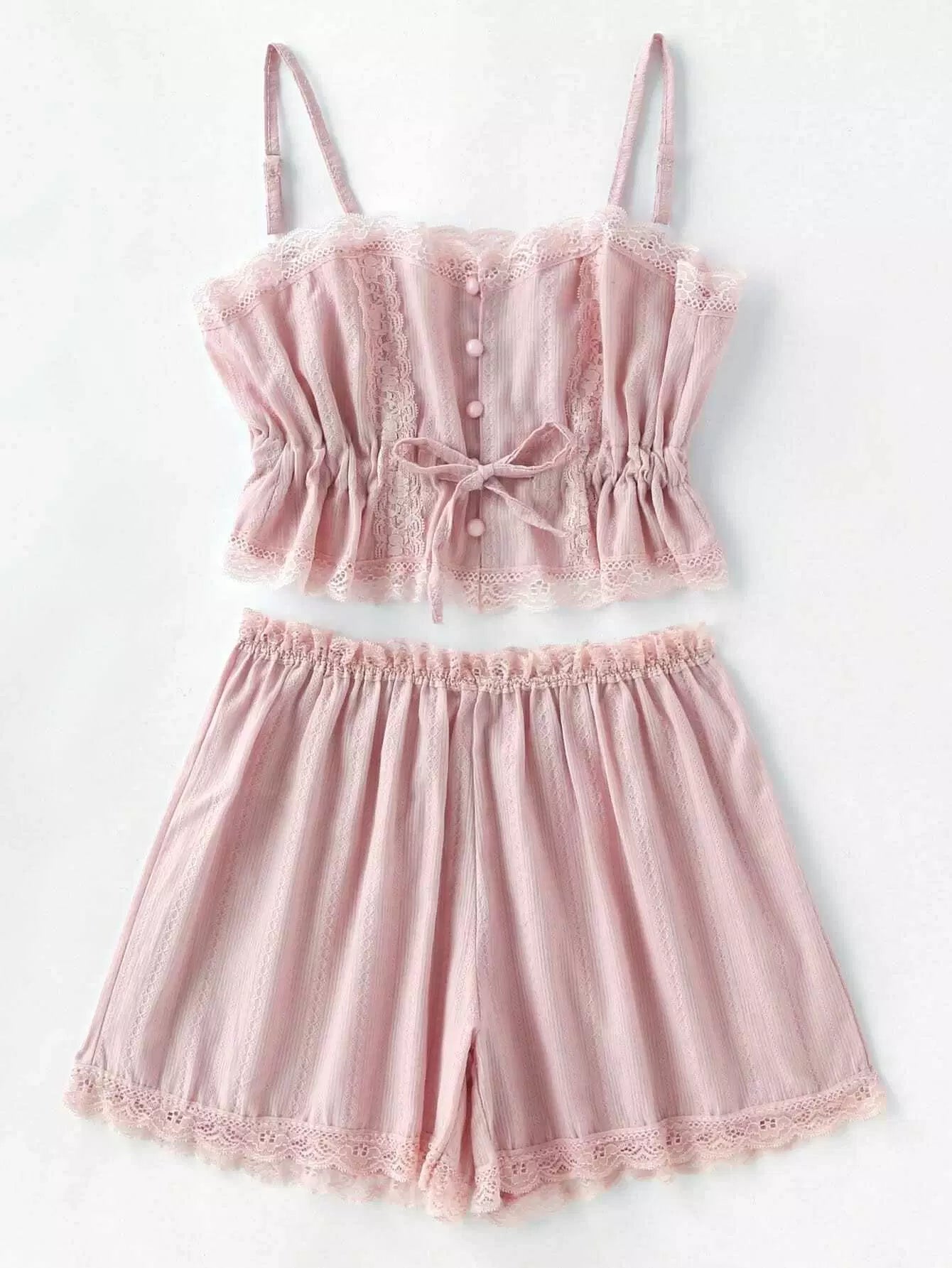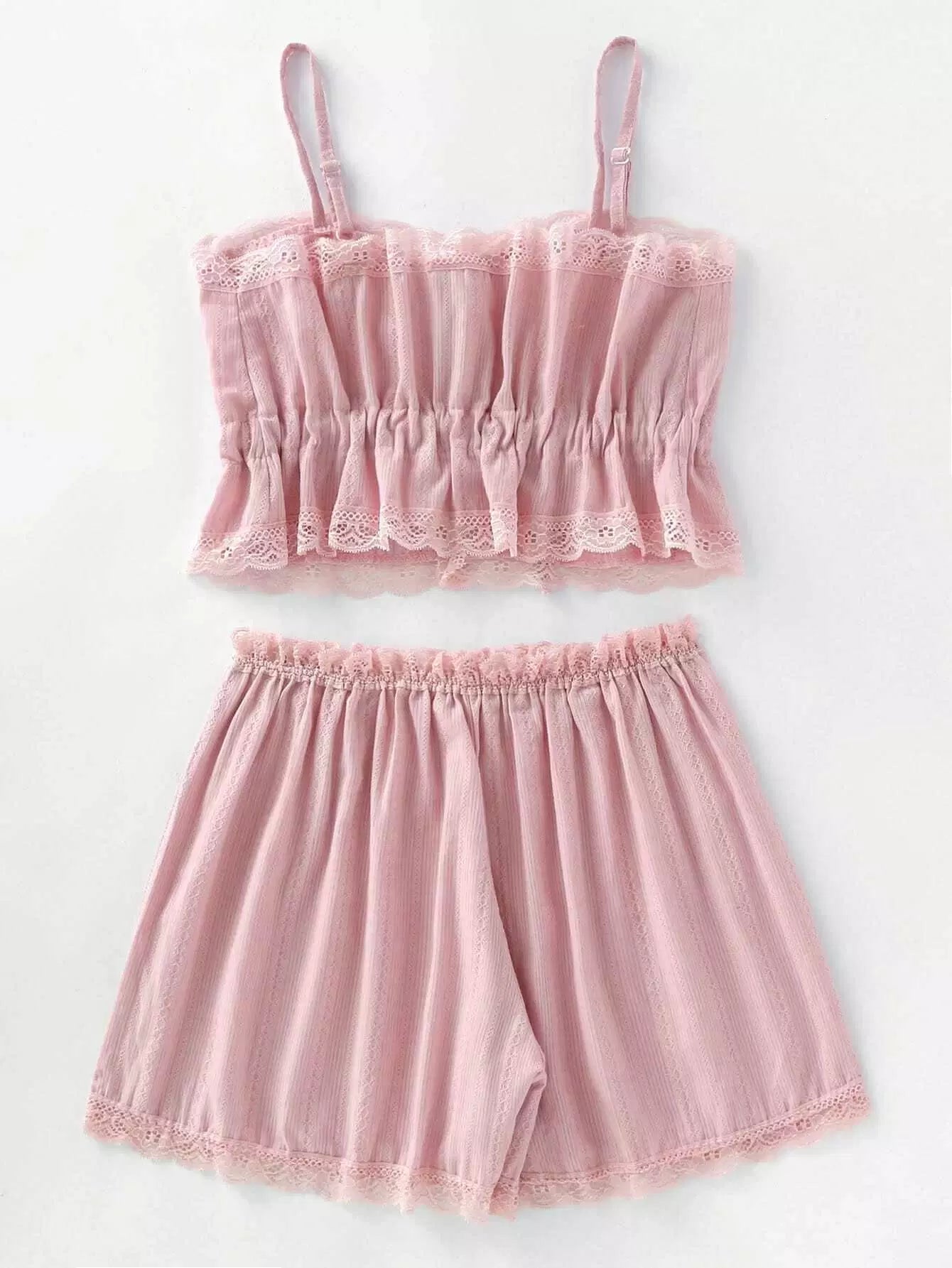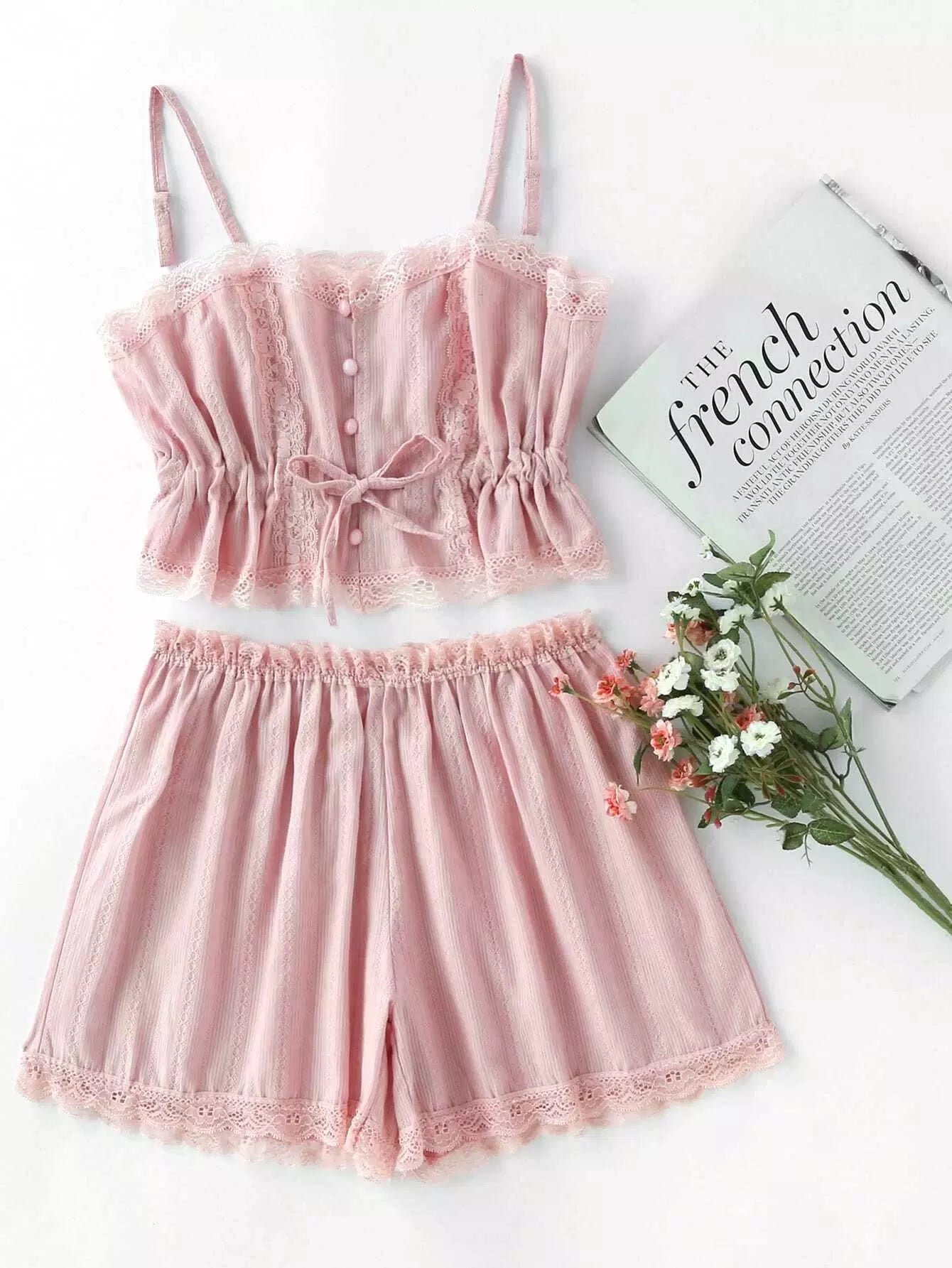 Women - Contrast Lace Cami With Shorts Pajama Set