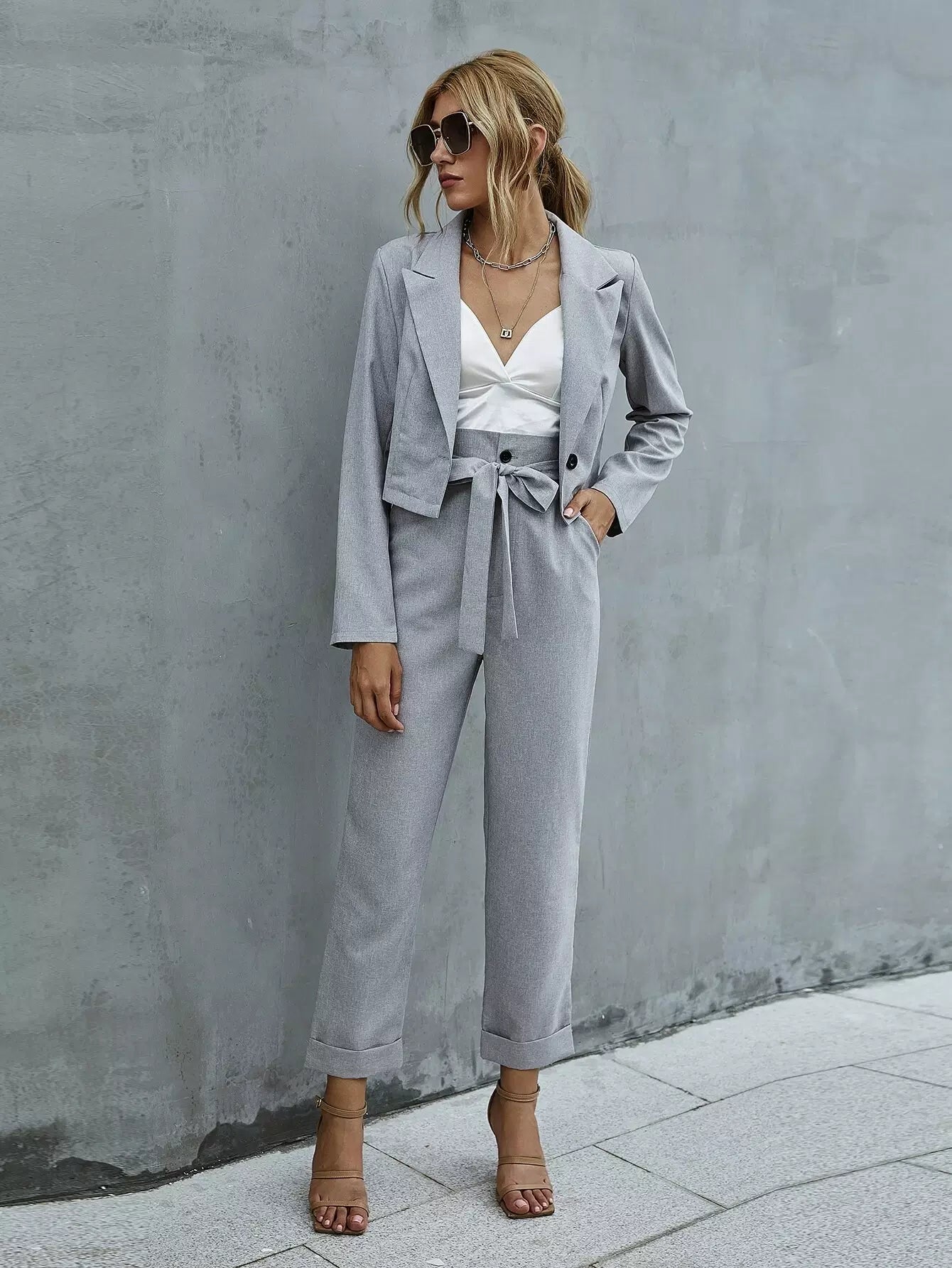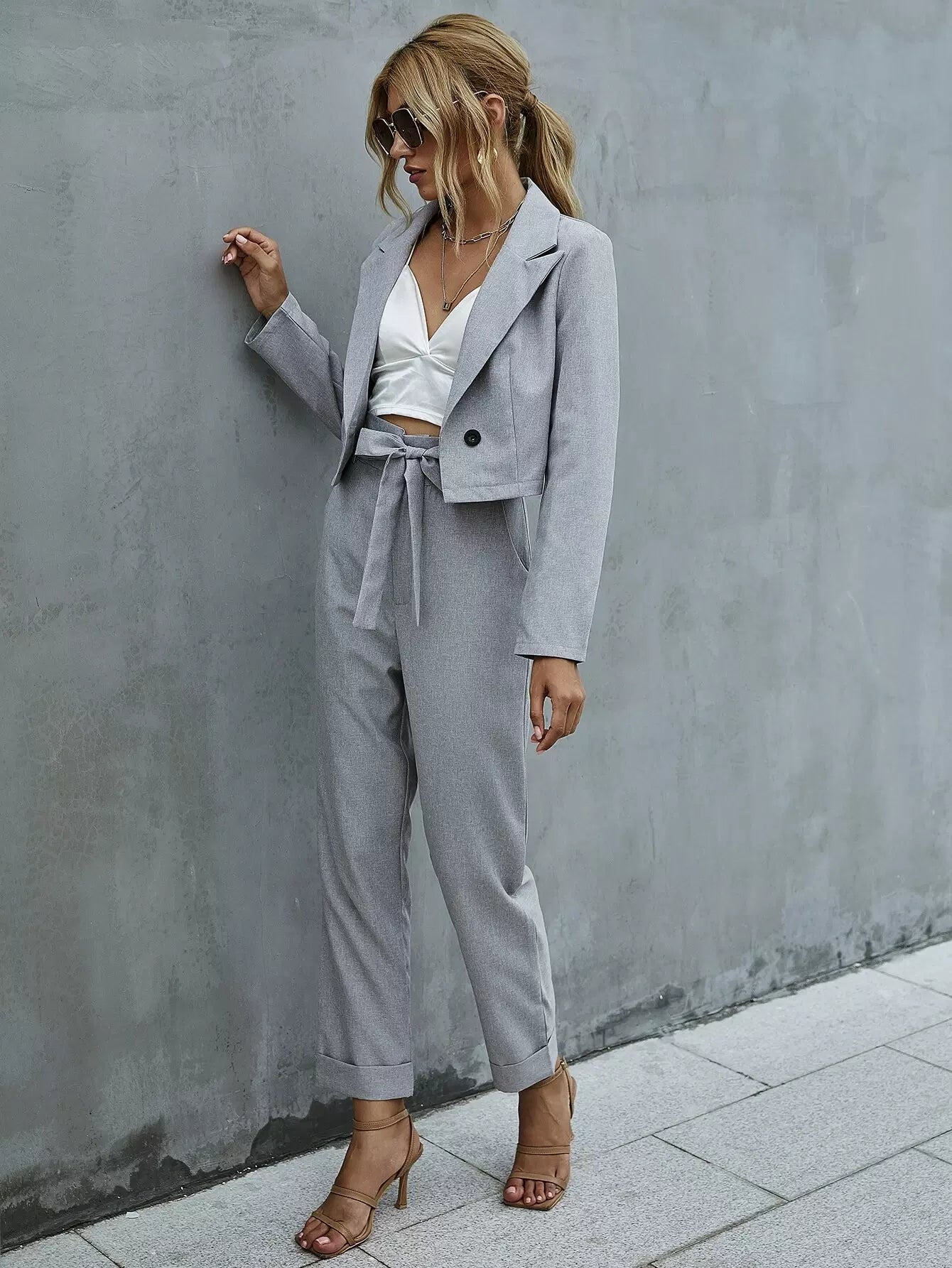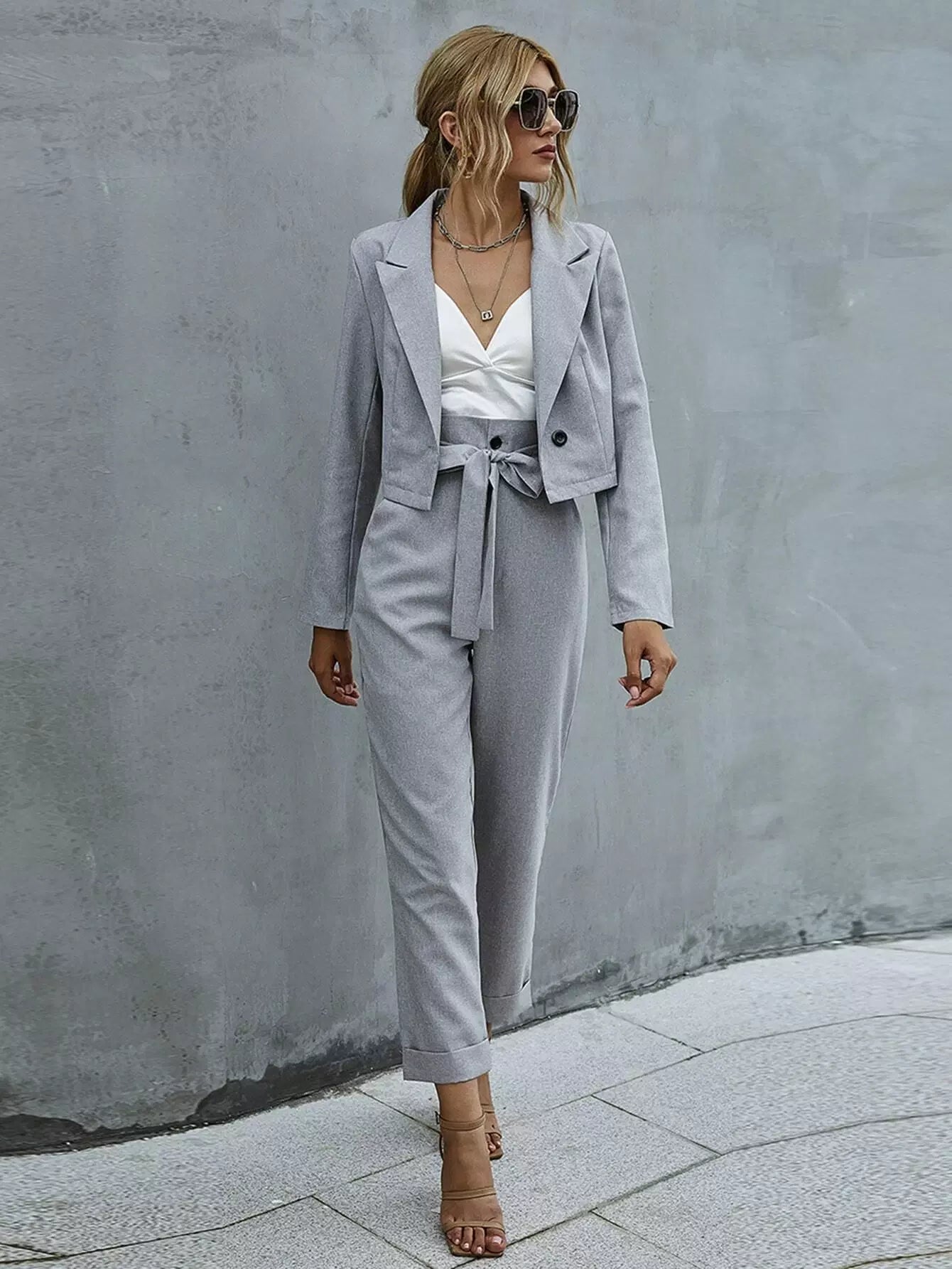 Cropped Blazer & High-Rise Tailored Pants Set Without Belt
