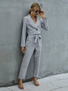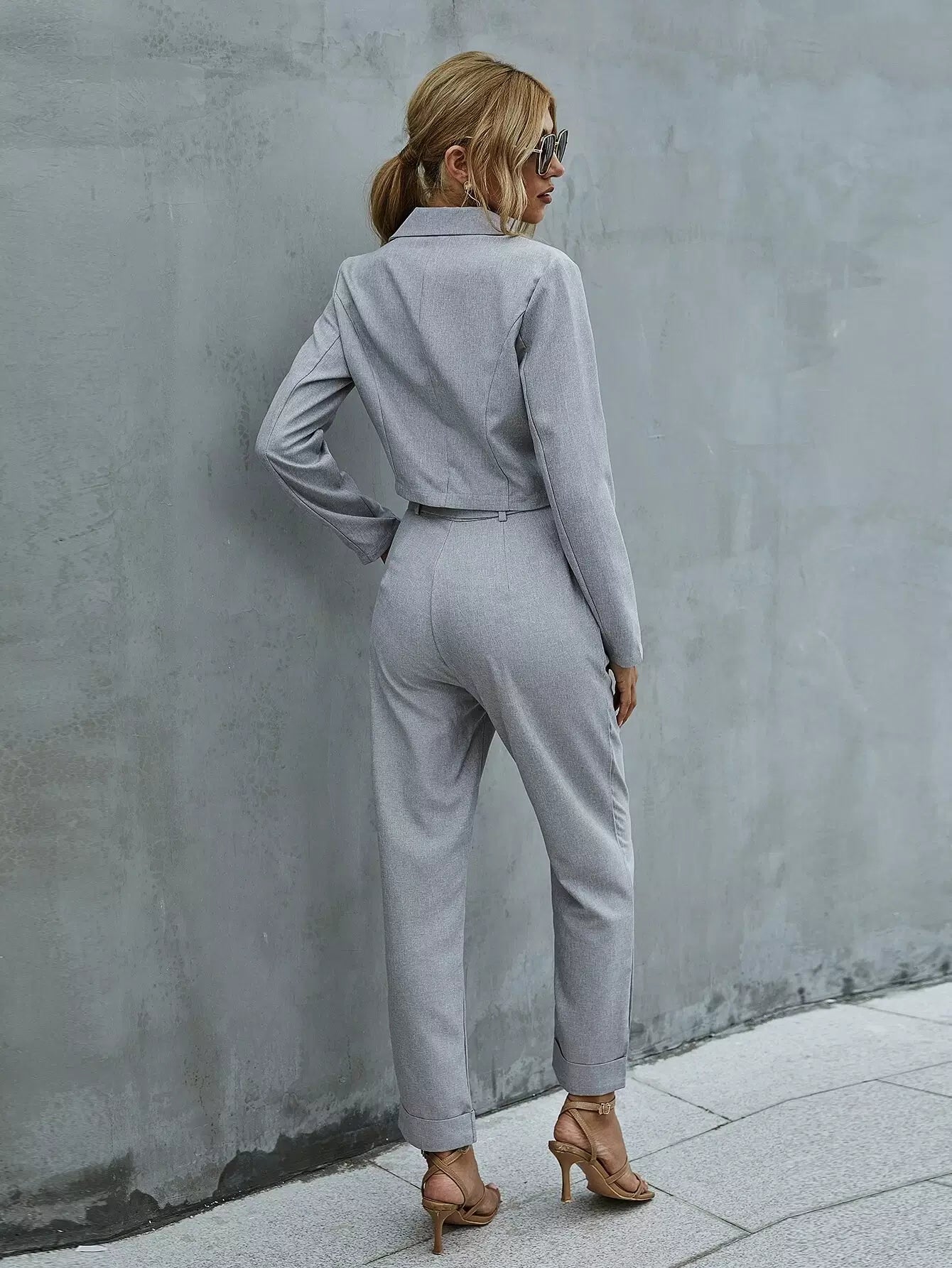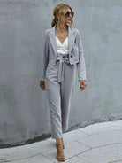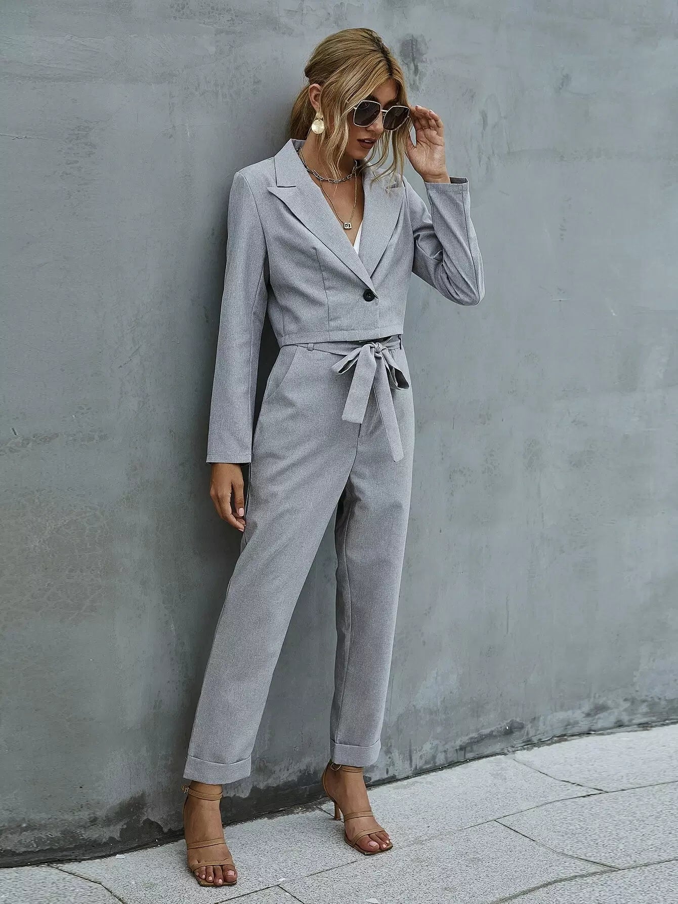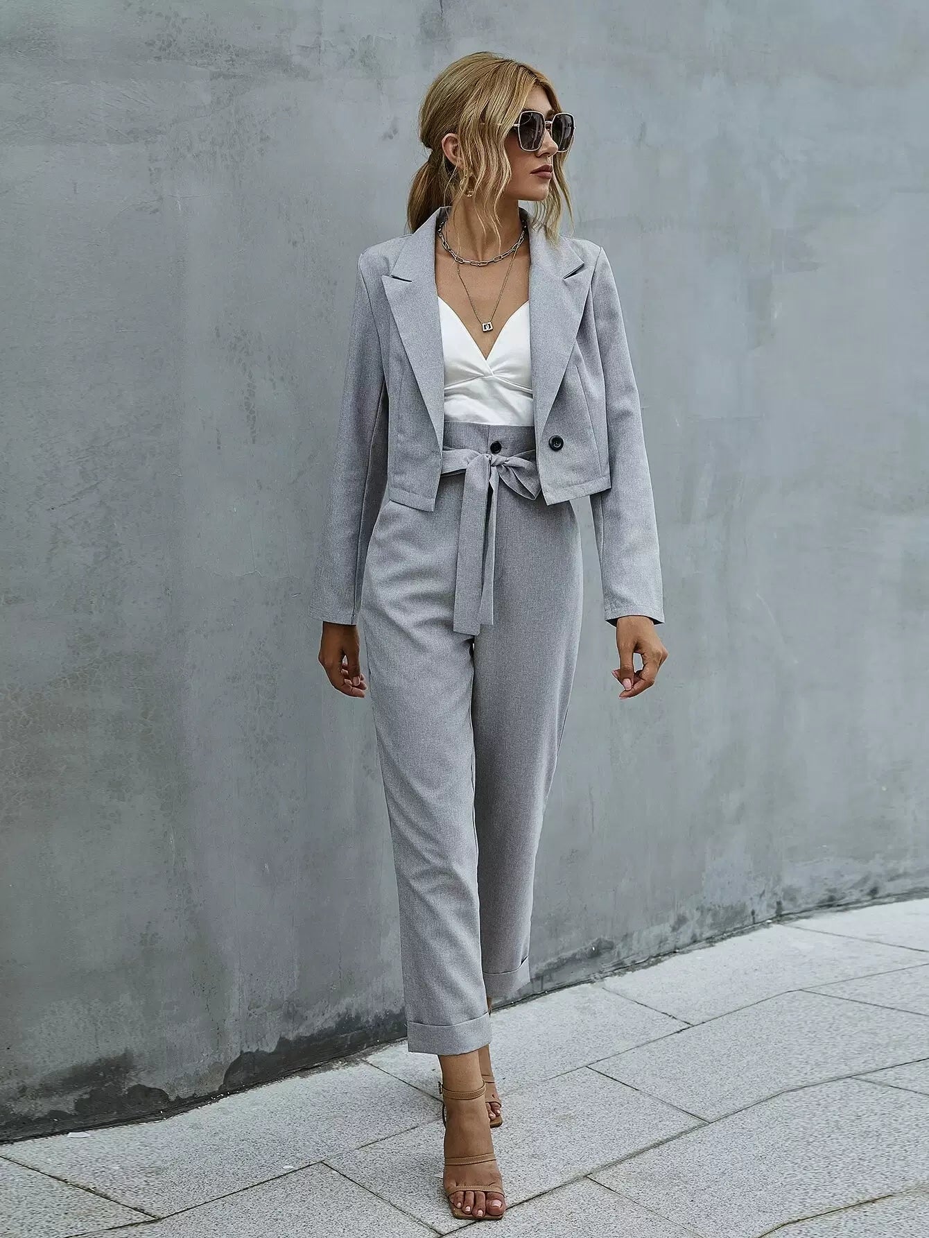Cropped Blazer & High-Rise Tailored Pants Set Without Belt