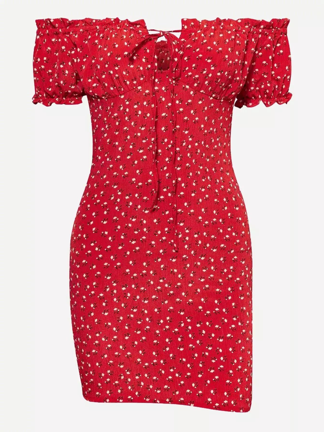 Ditsy Floral Off-the-Shoulder Smocked Mini Dress