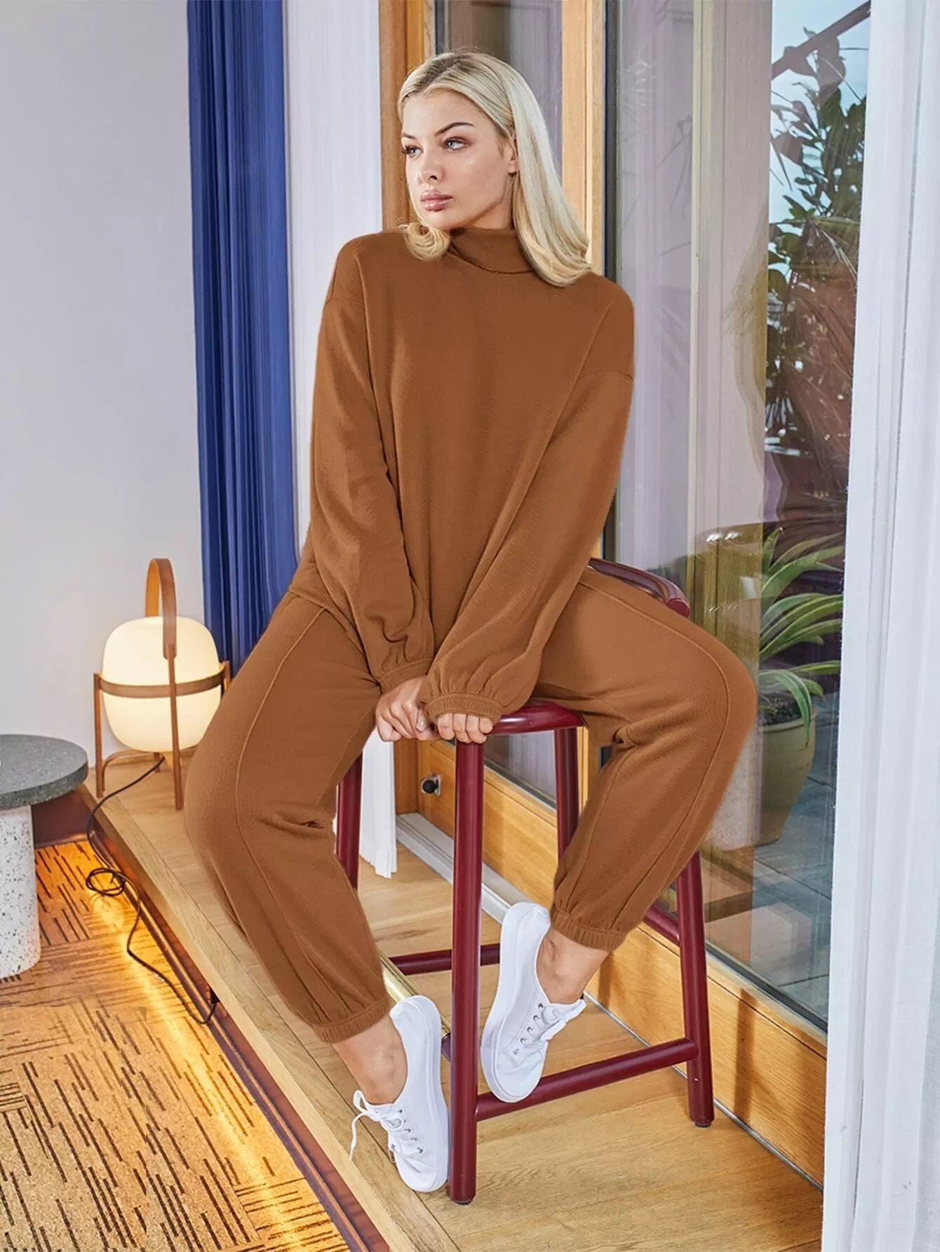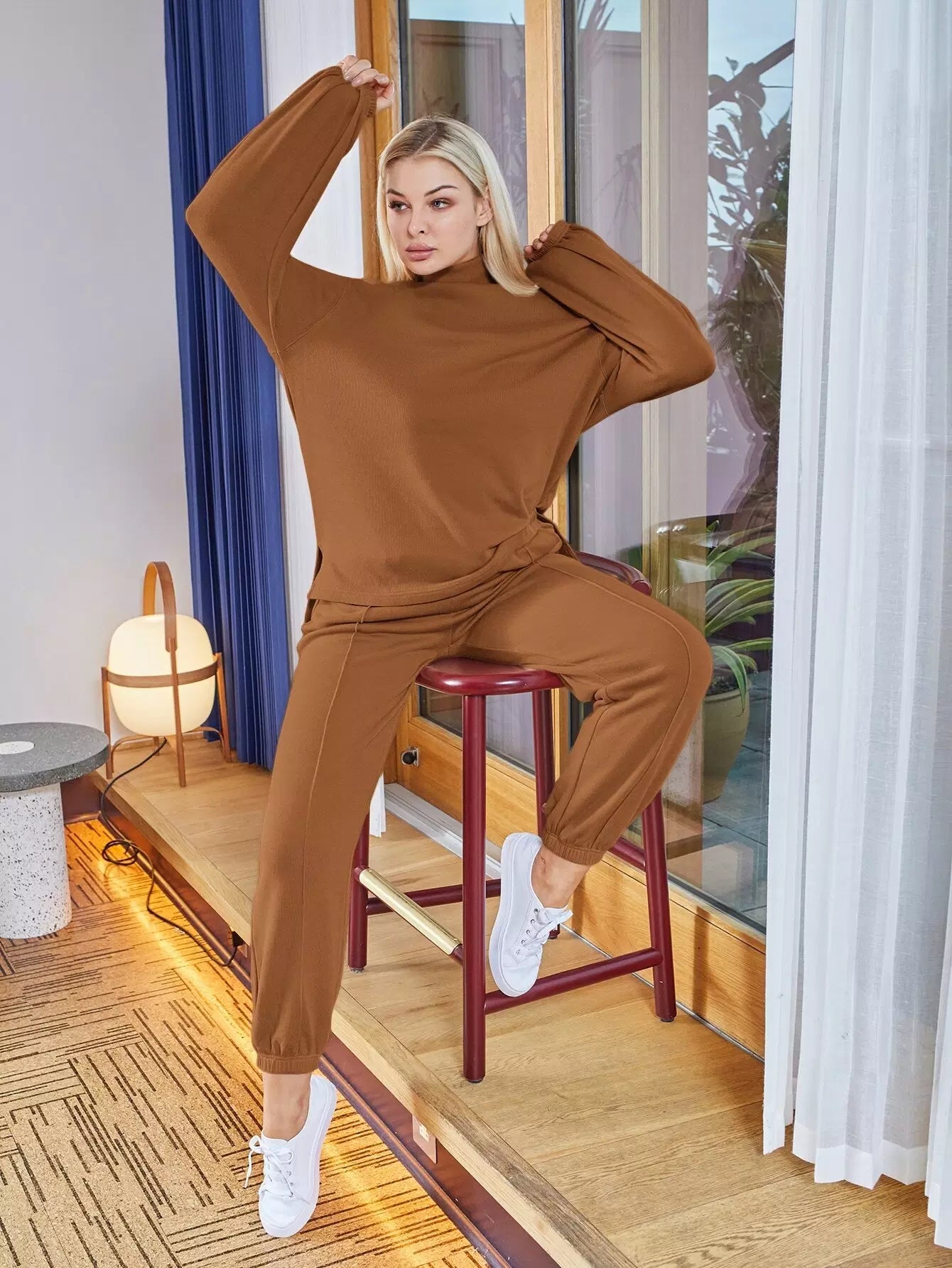 Women - High Neck Drop Shoulder Pullover and Joggers Set