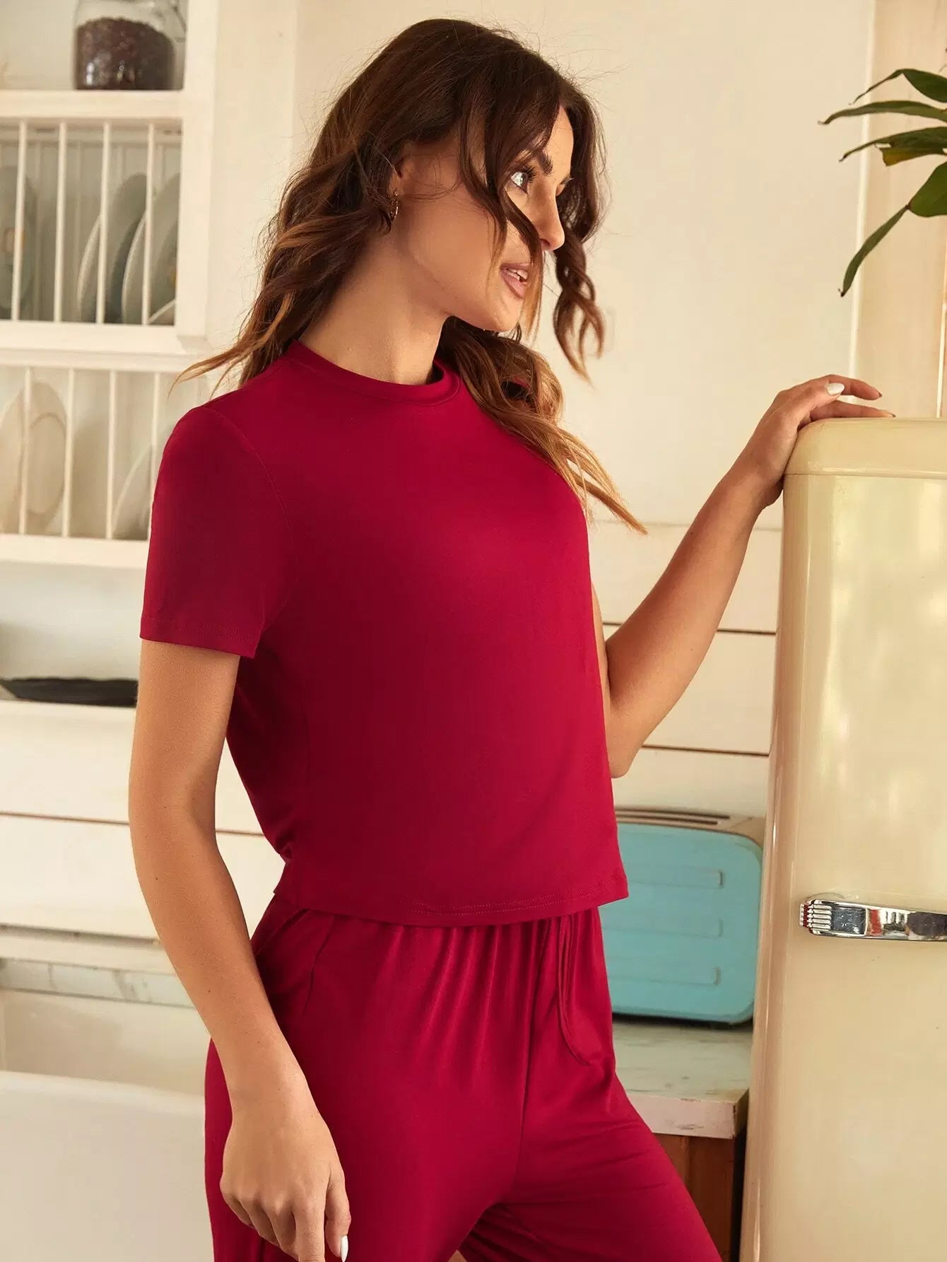 Solid Shorts Sleeve Tee & Pants Lounge Set