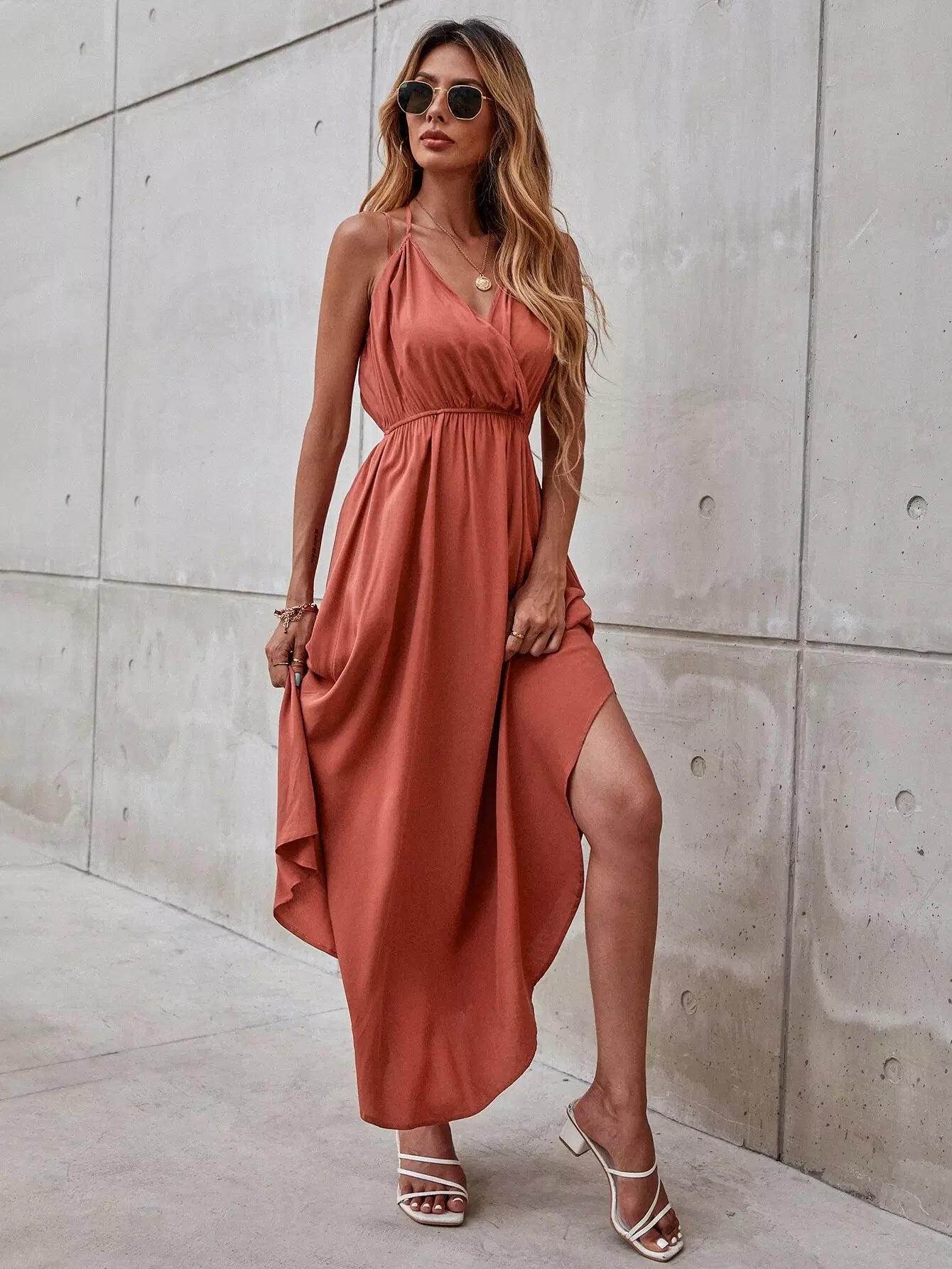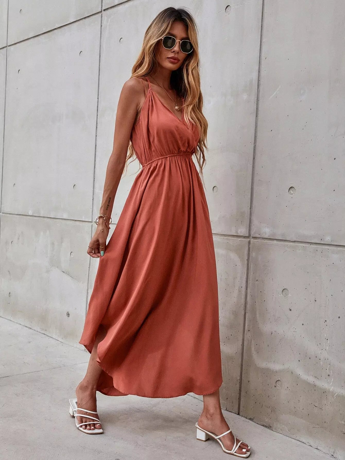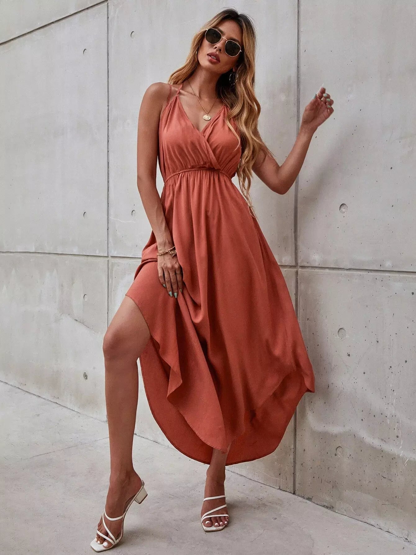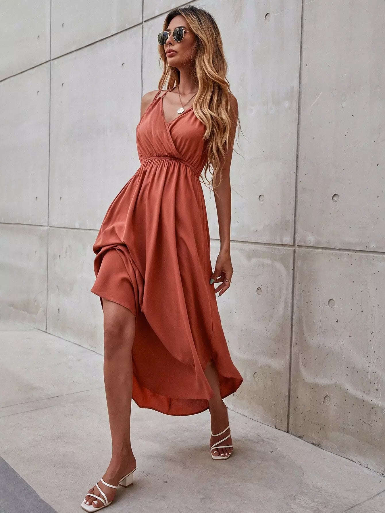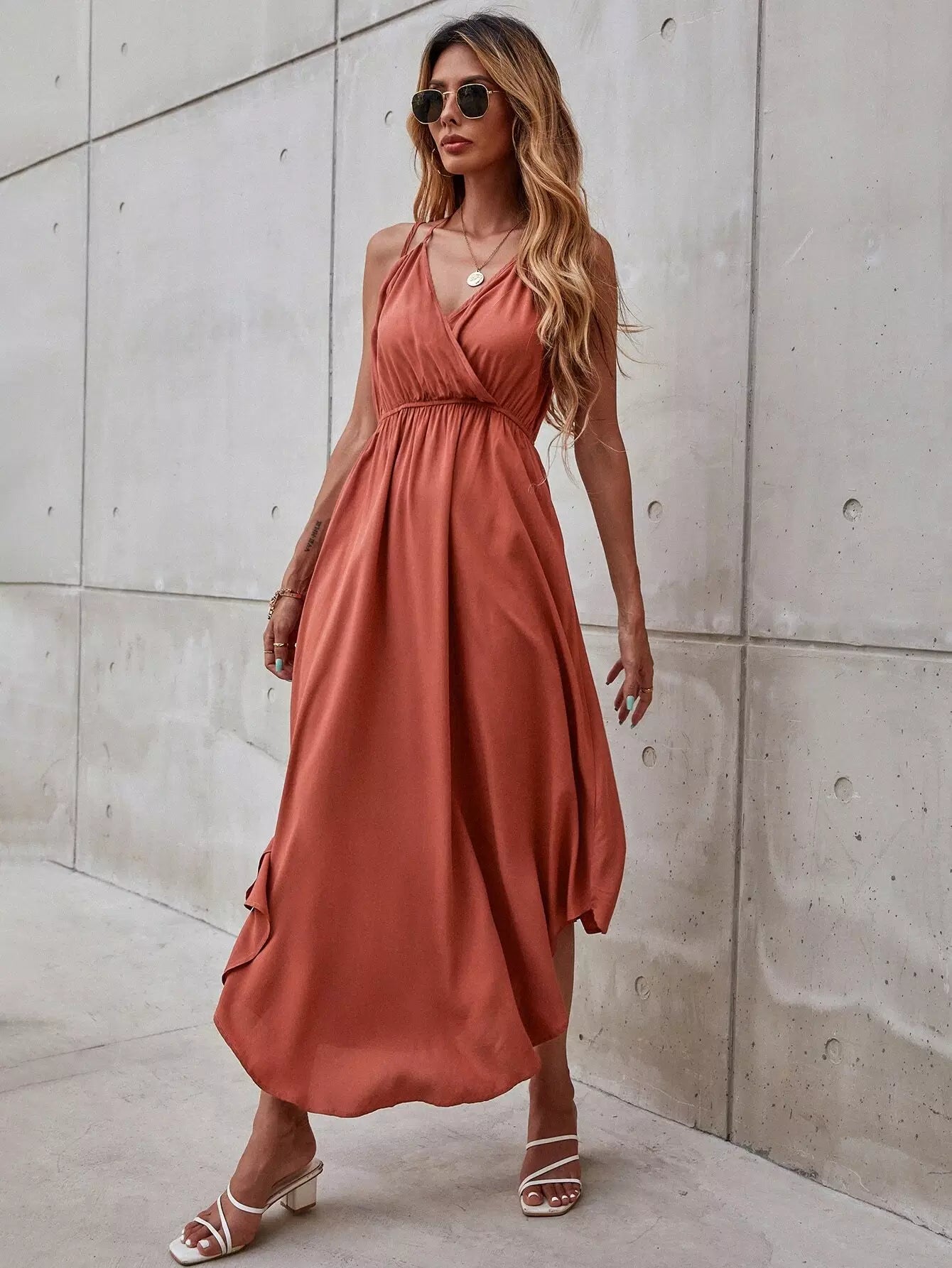 Solid Surplice Front Cami Dress