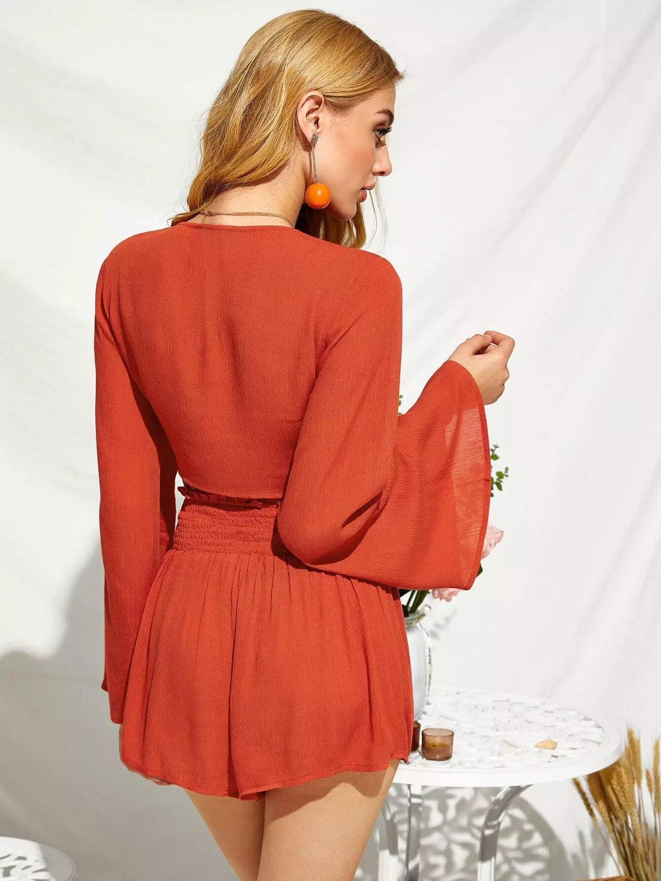 Tie Front Crop Top & Frill Shirred Waist Shorts Set