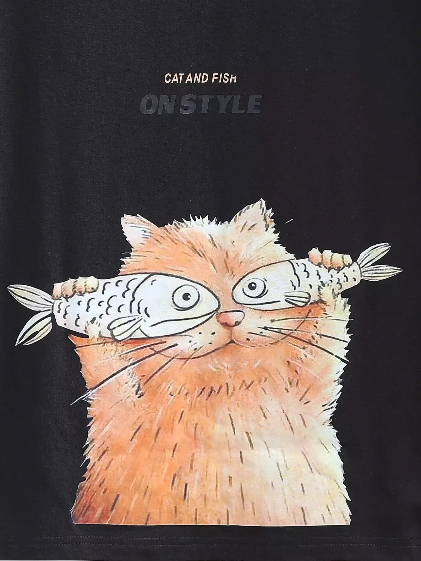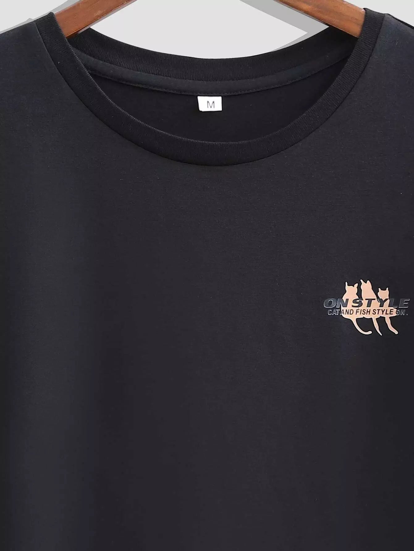 Men Cat & Fish Print Tee