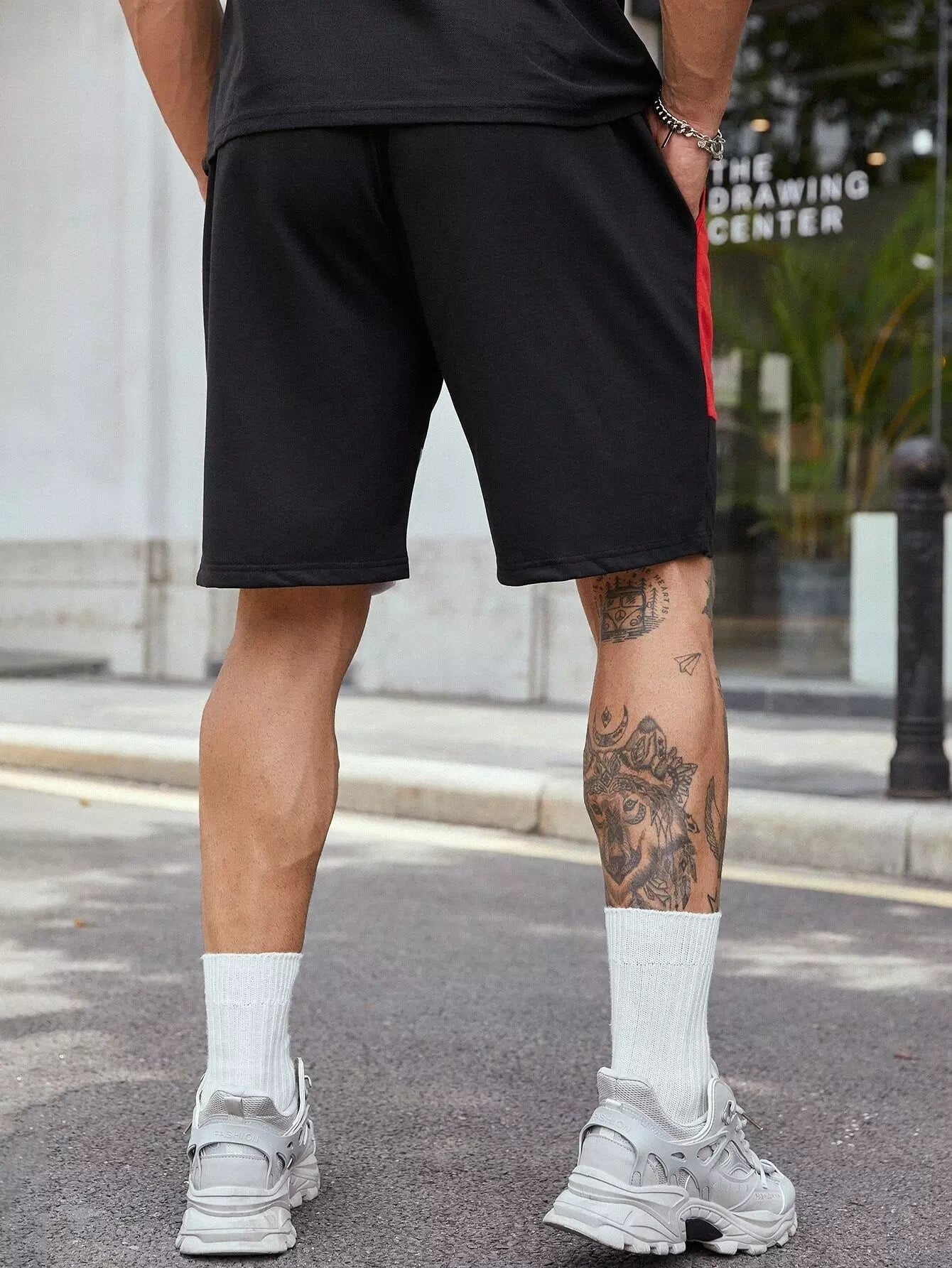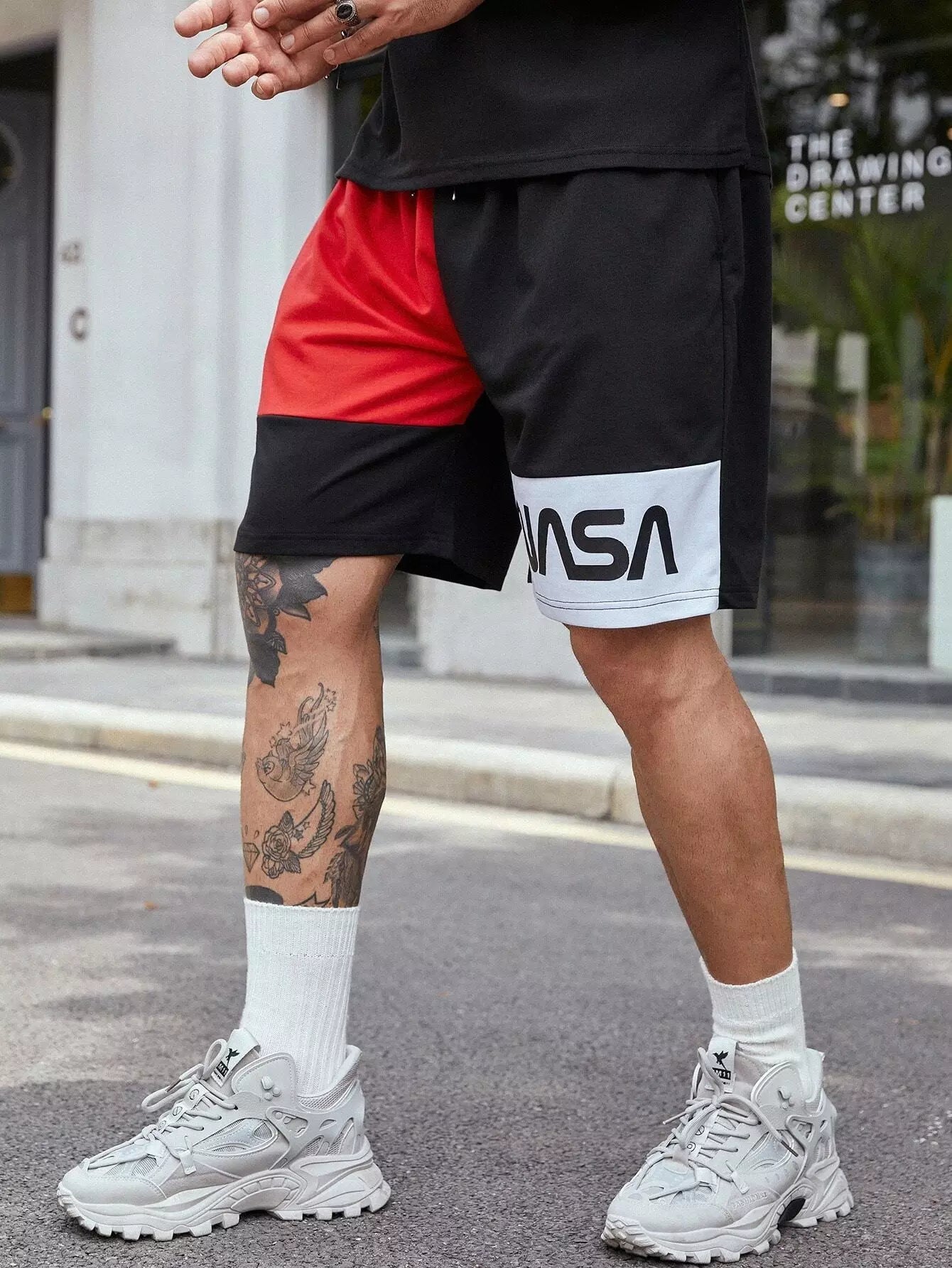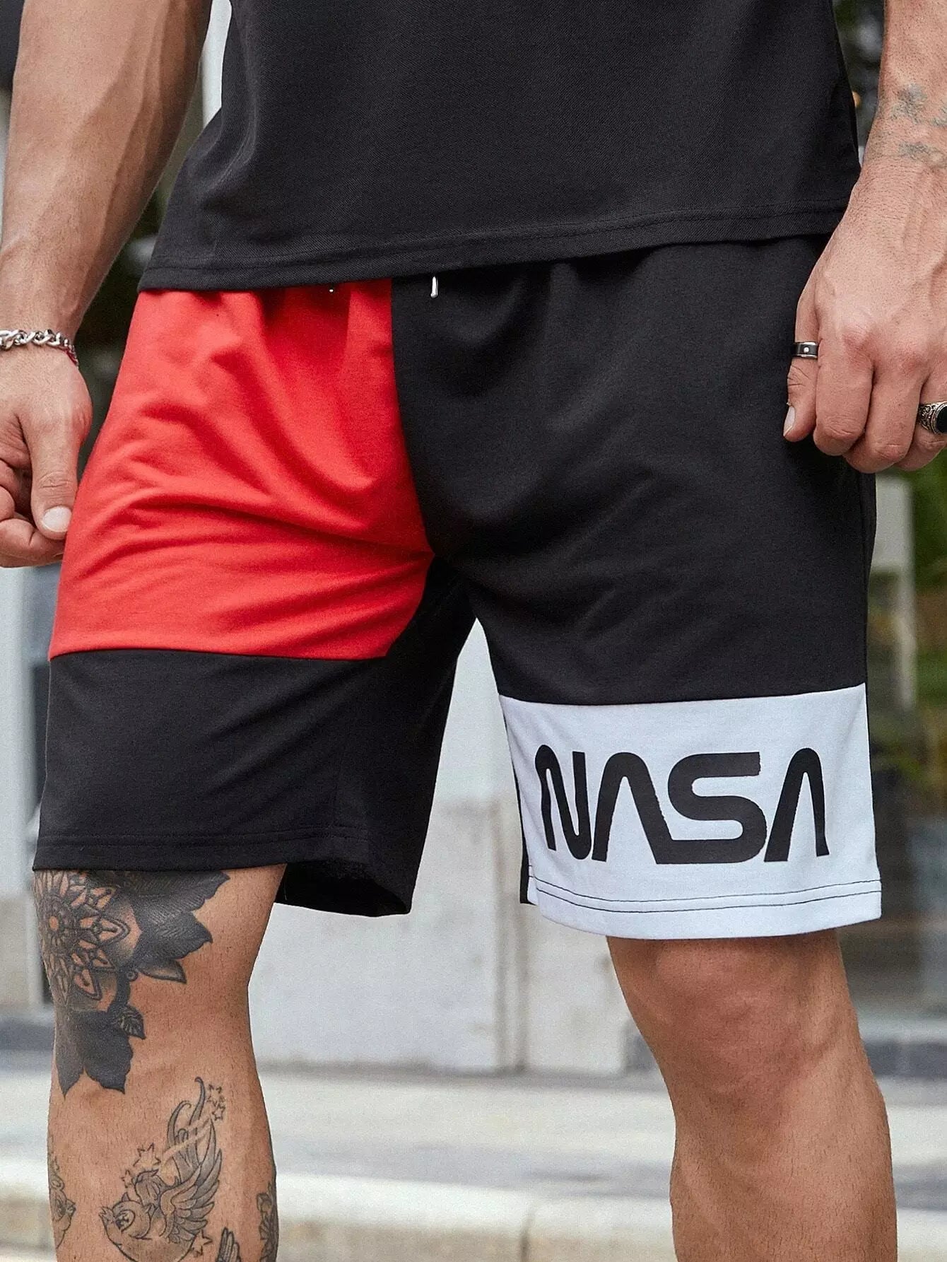 Men Color Block Letter Graphic Drawstring Waist Shorts