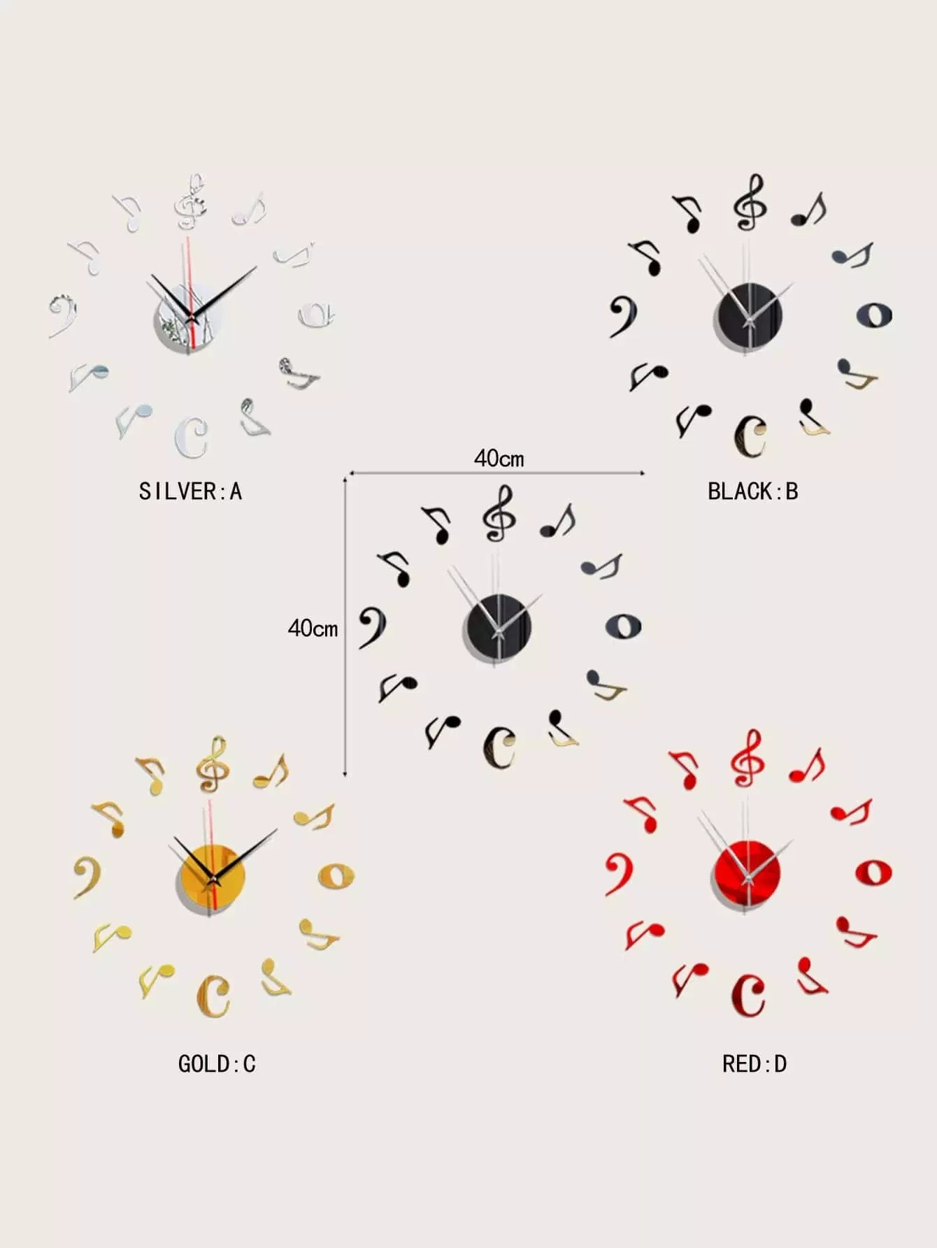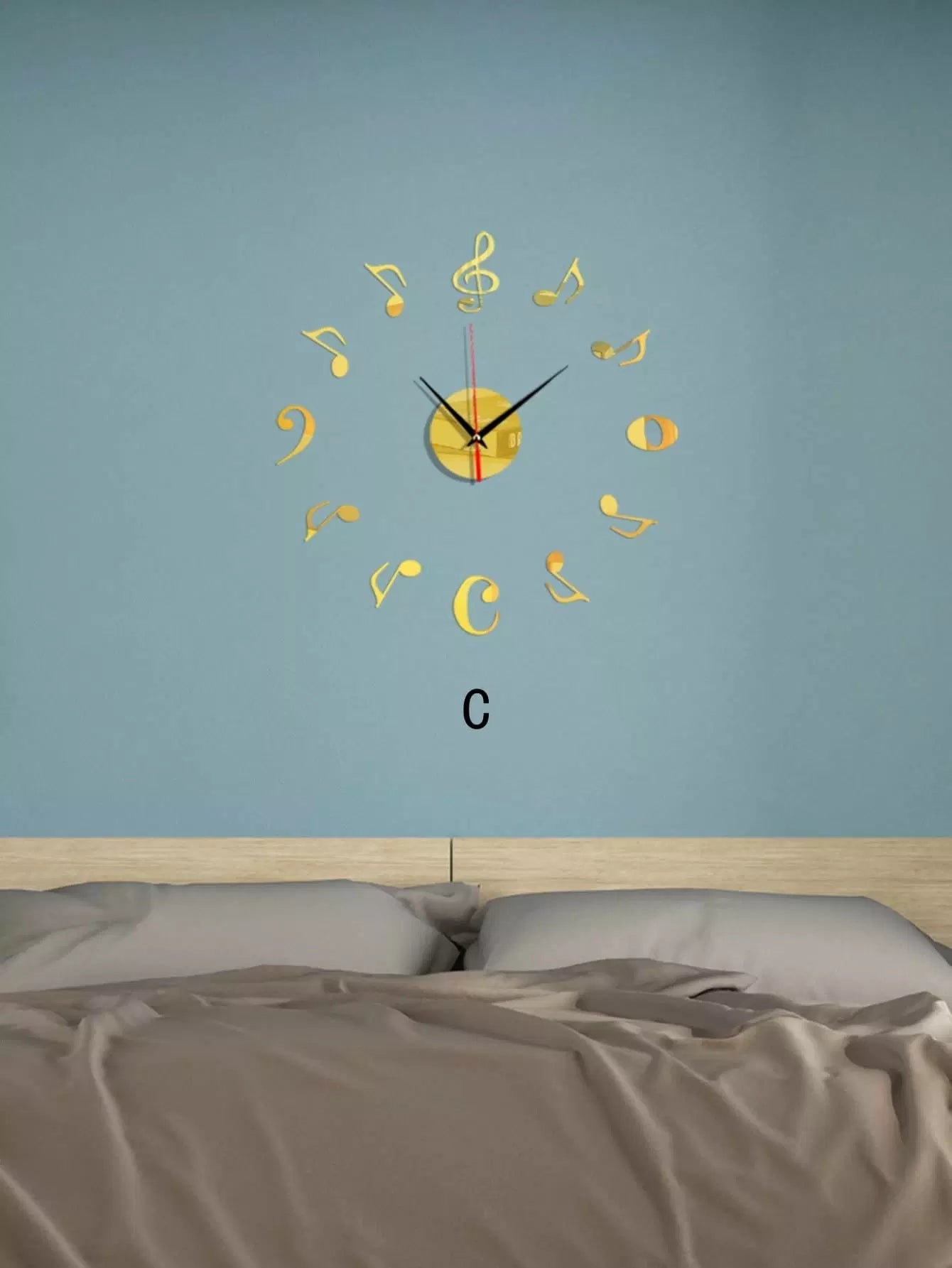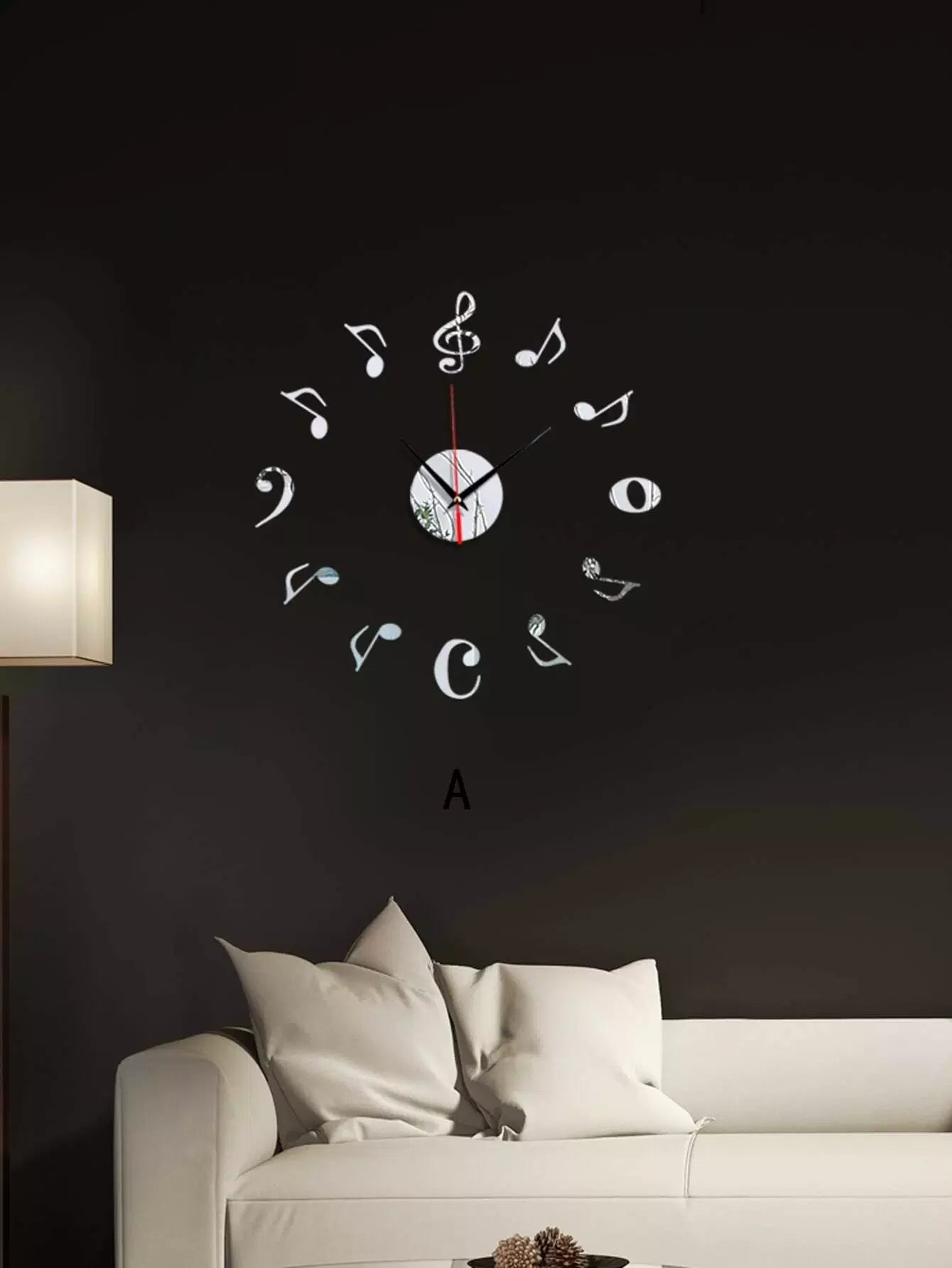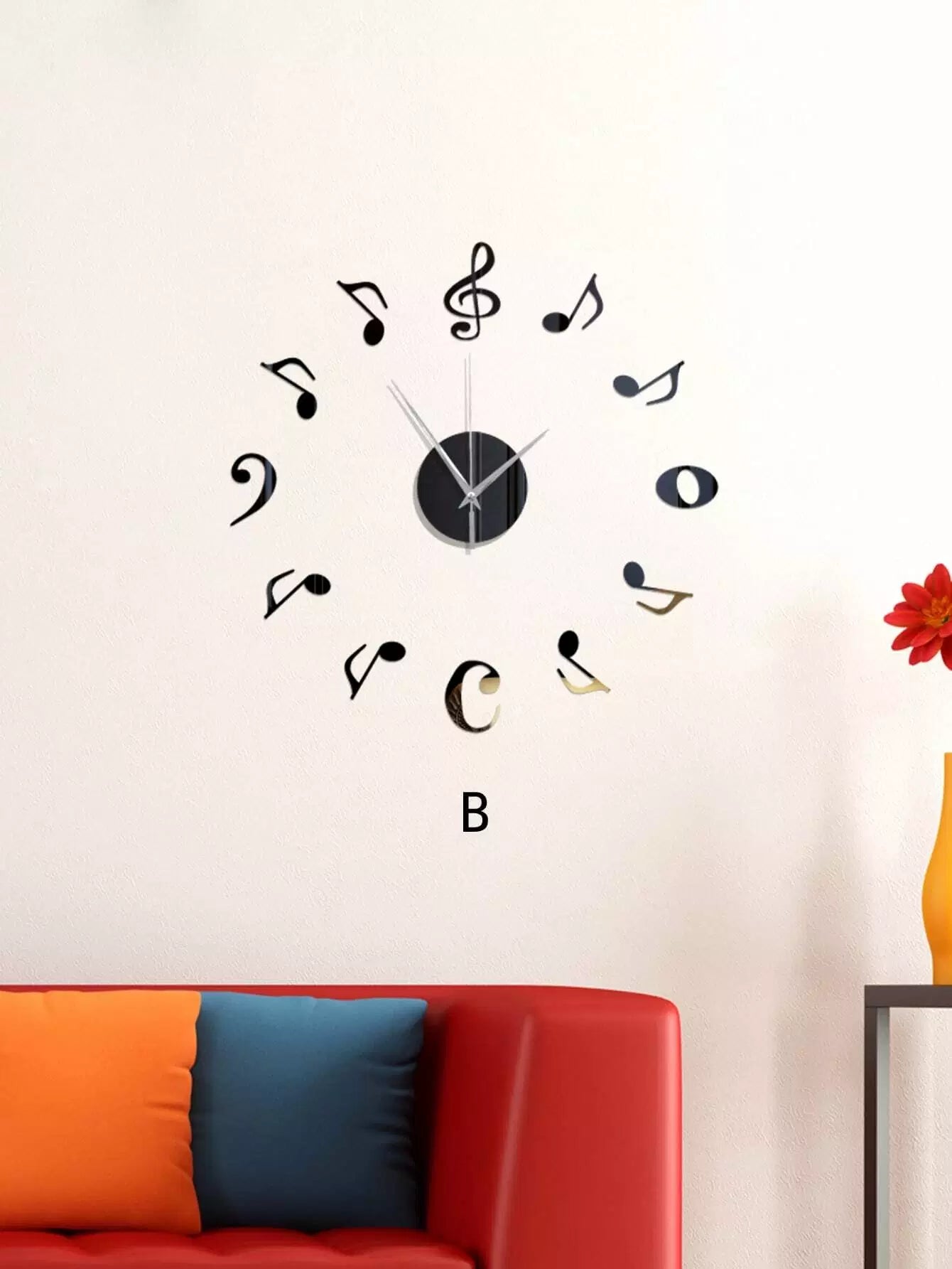 1pc Music Note Decor Mirror Surface Wall Clock