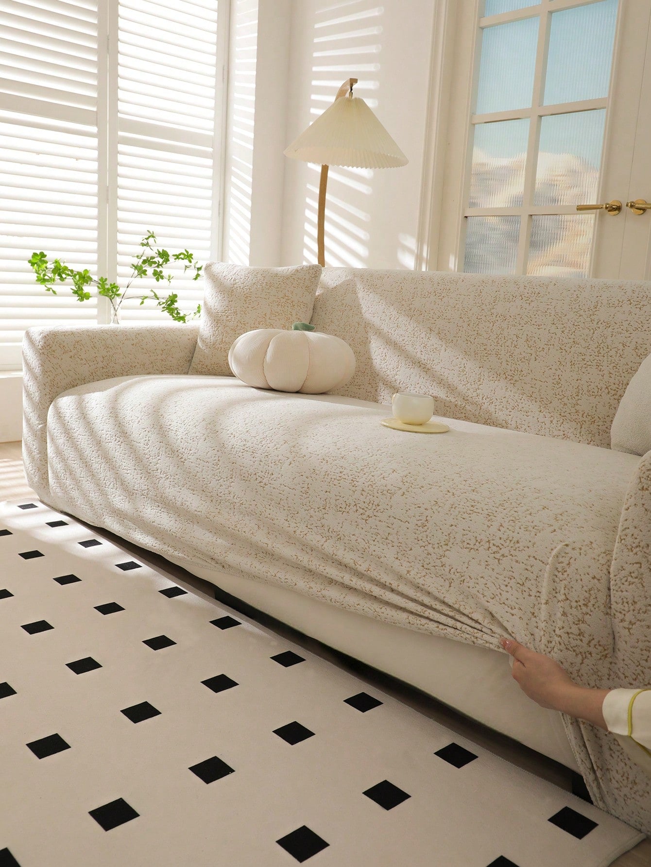 1pc Solid Color Bohemian Style Jacquard Sofa Cover Elastic Jacquard Sofa Slipcover Protects Sofa From