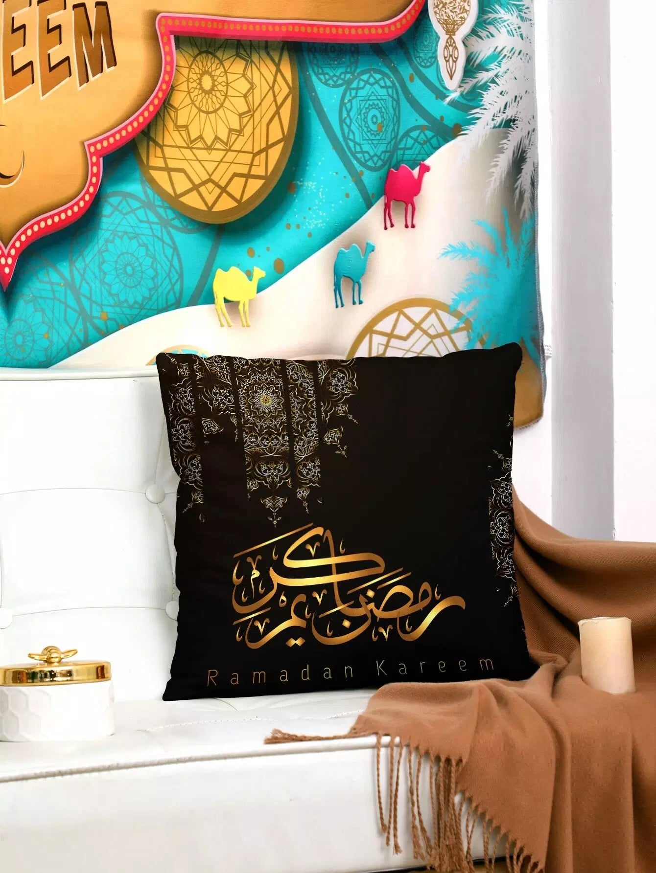 Ramadan Letter Graphic Cushion Cover Without Filler