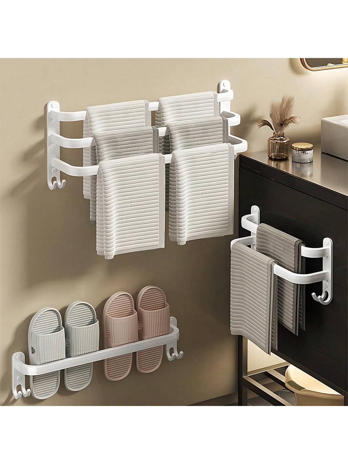 1pc Towel Hanger - Punch Free - Space Aluminum Towel Rack
