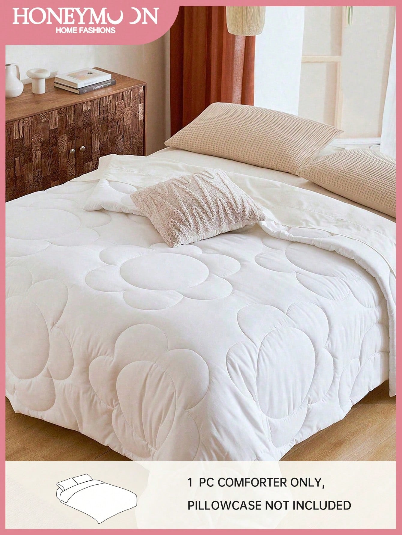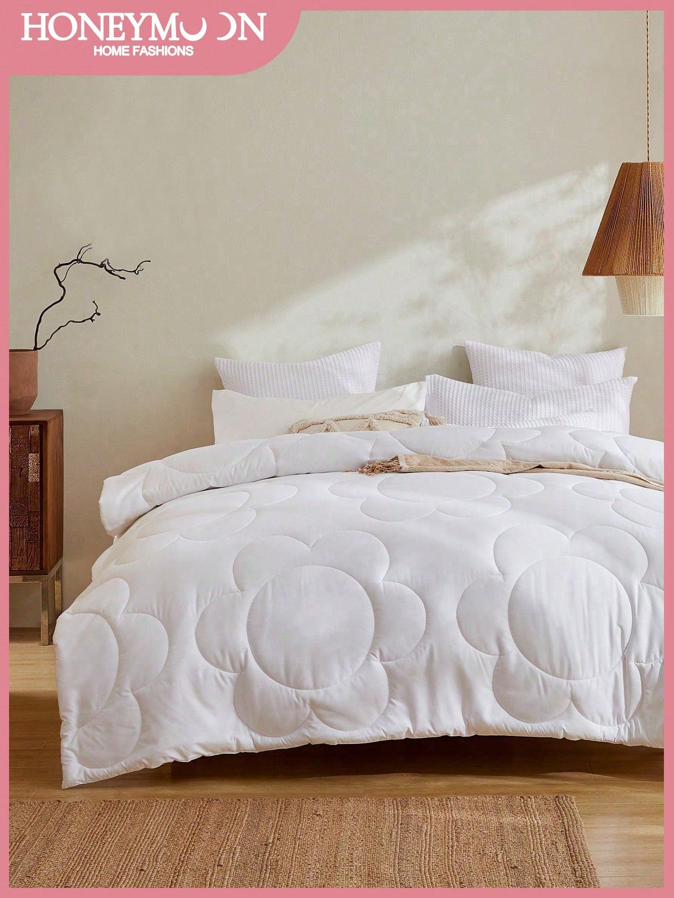 1pc Fluffy Warm Floral Stitch All-Season Comforter With Corner Tabs
