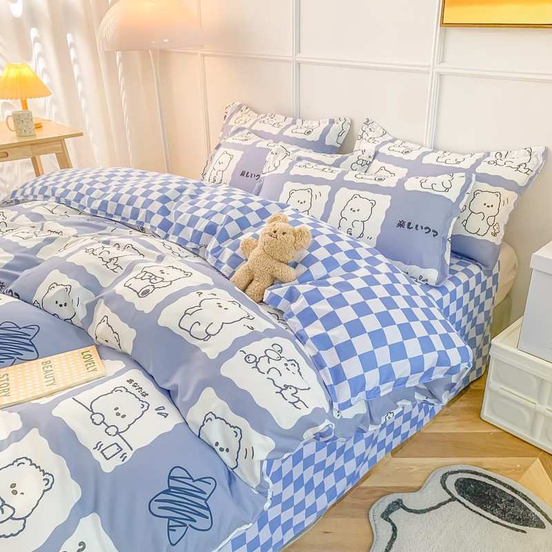 | 70-80gsm printedmicrofiber Duvet Cover:1pc 200X230CM,1pc 230X230CM Flat sheet, 2pcs of48x74cm pillowcase |