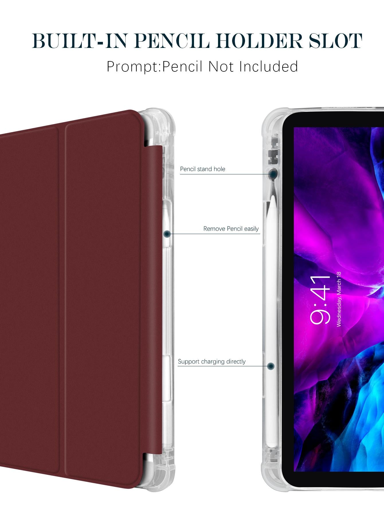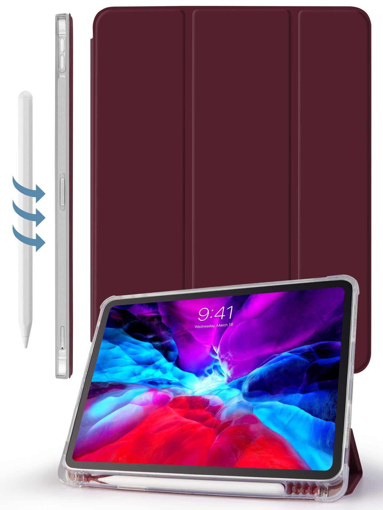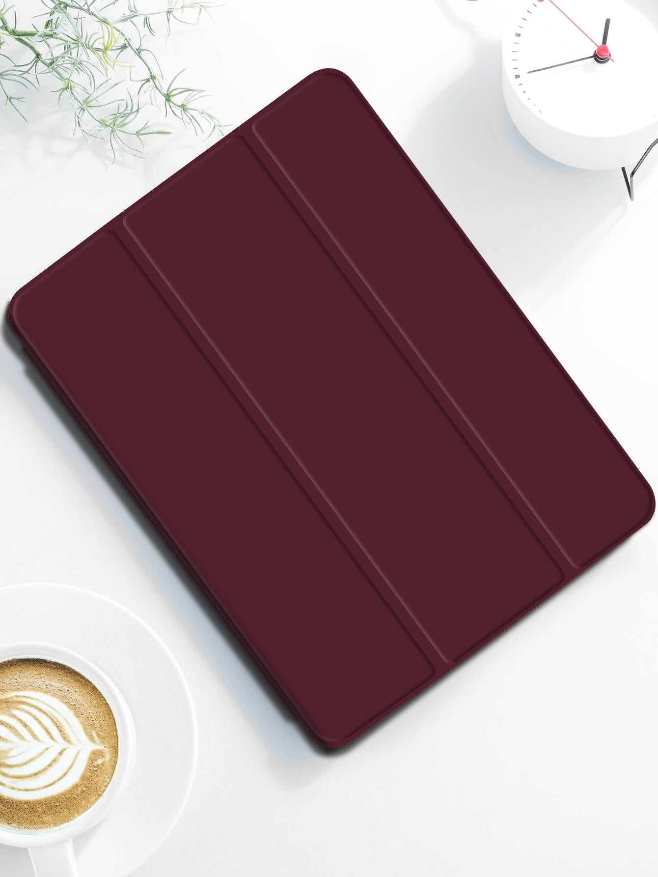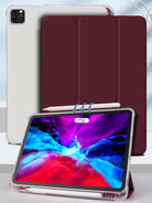 3-Fold IPad Case With Pen Slot - Plum Color - Matte TPU Soft Shell