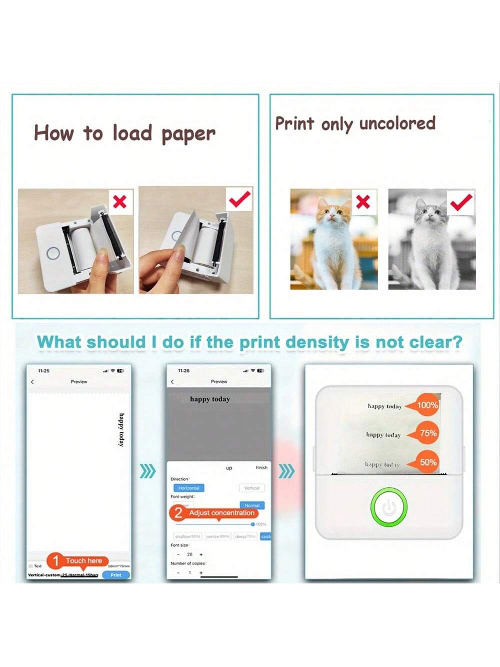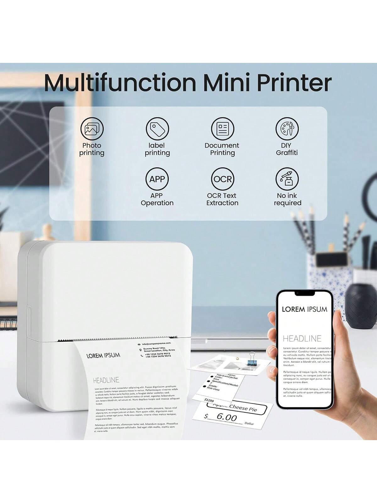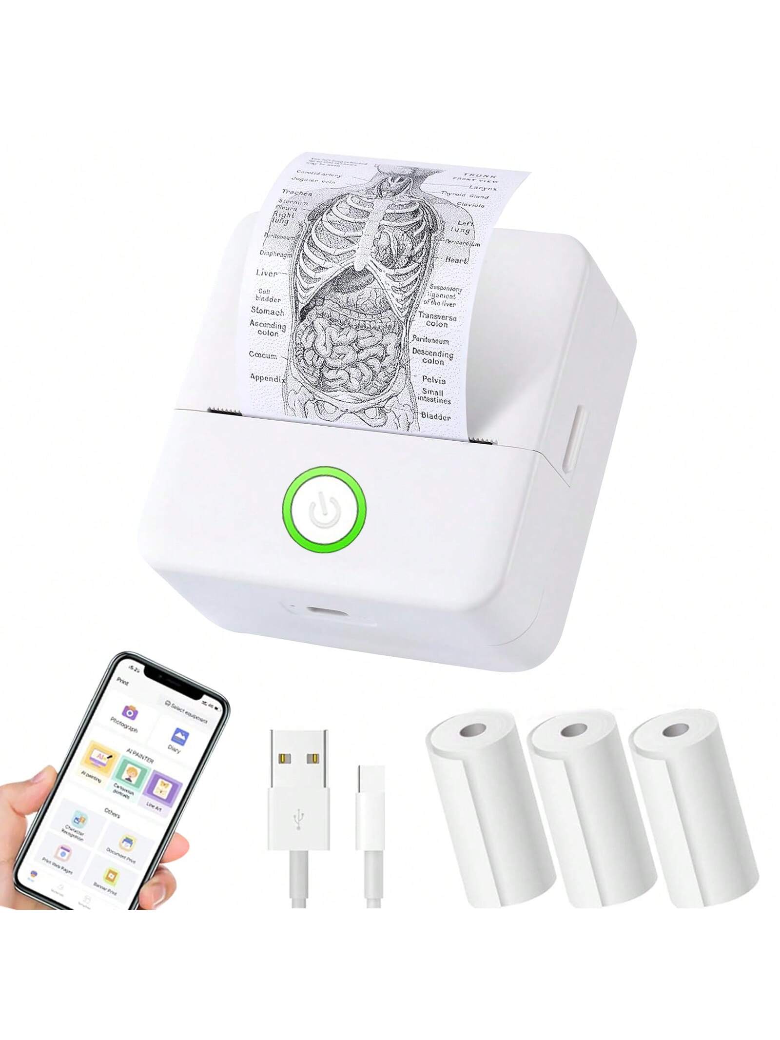 Mini Thermal Label Printer - Includes 3 Rolls Of Paper