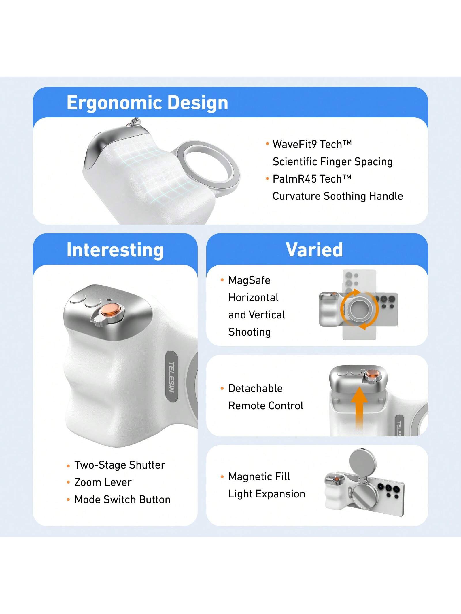 TELESIN Fun Shot Magnetic Phone Camera DSLR Style Shutter Grip For IPhone & Android With Detachable