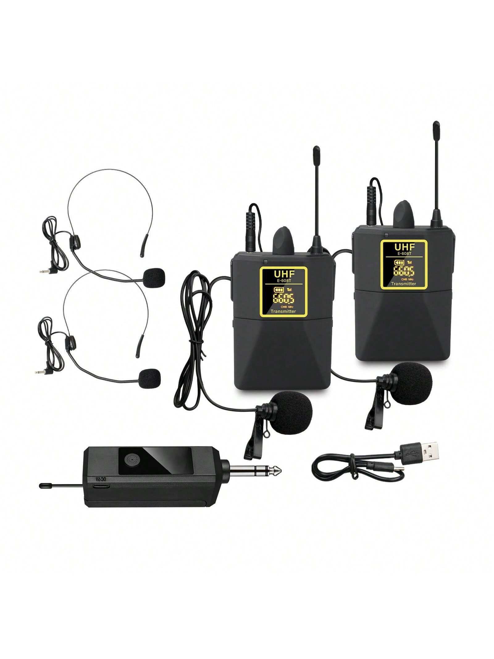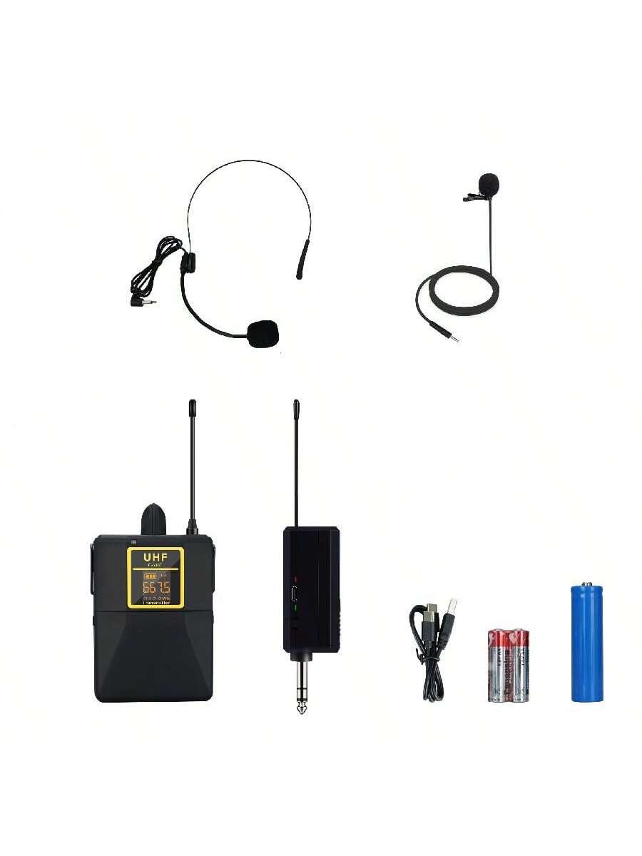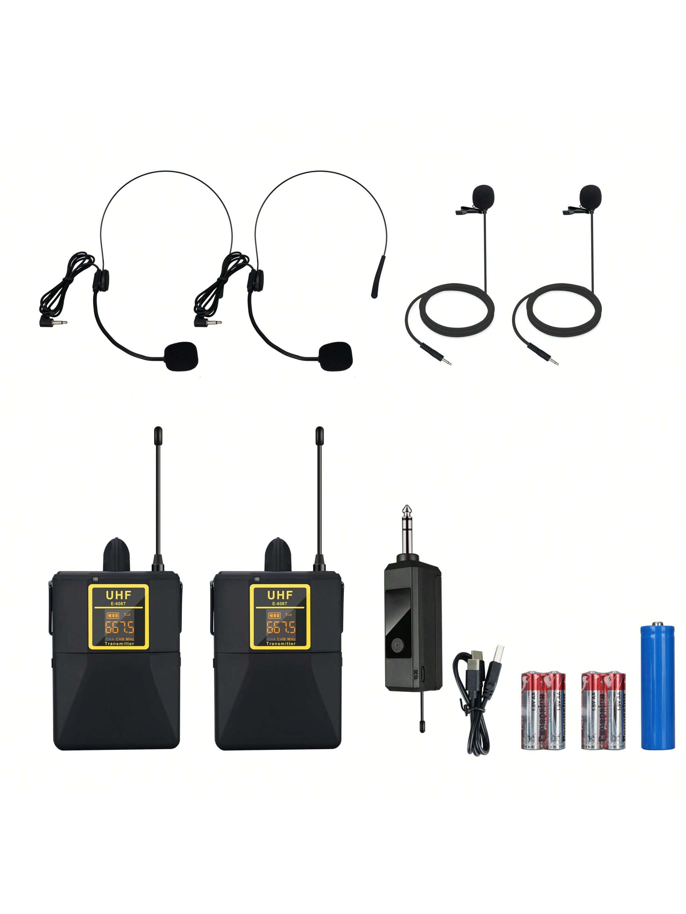 UHF Wireless Microphone System Kit - Portable Professional Cordless Microphone Set With Headset