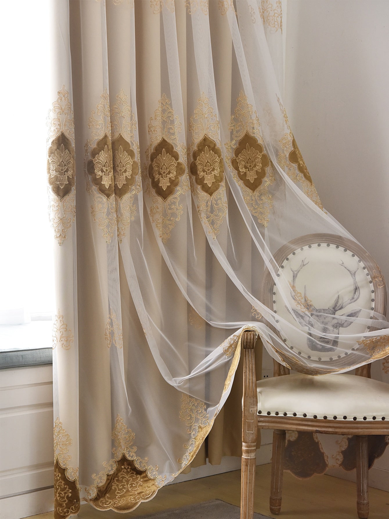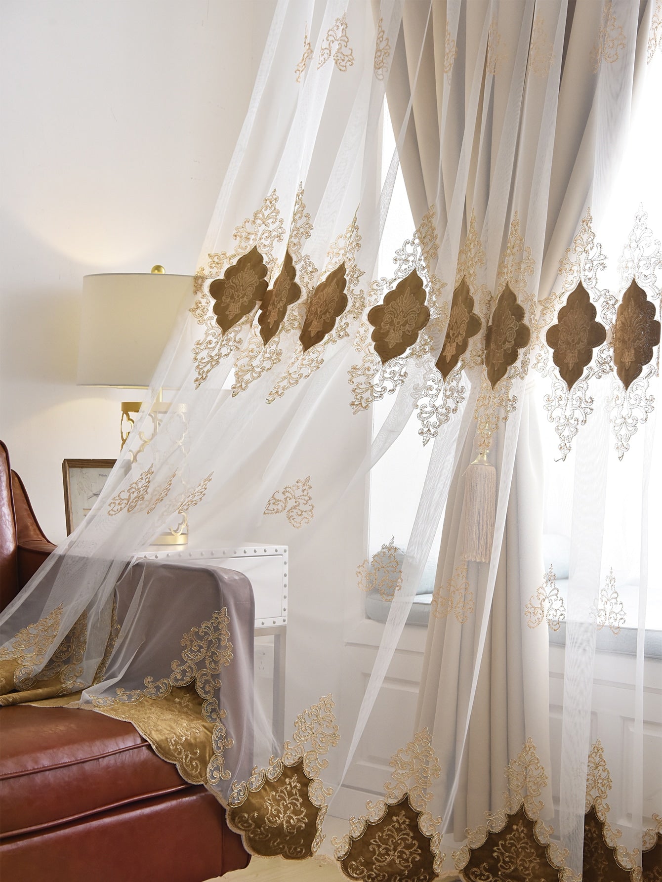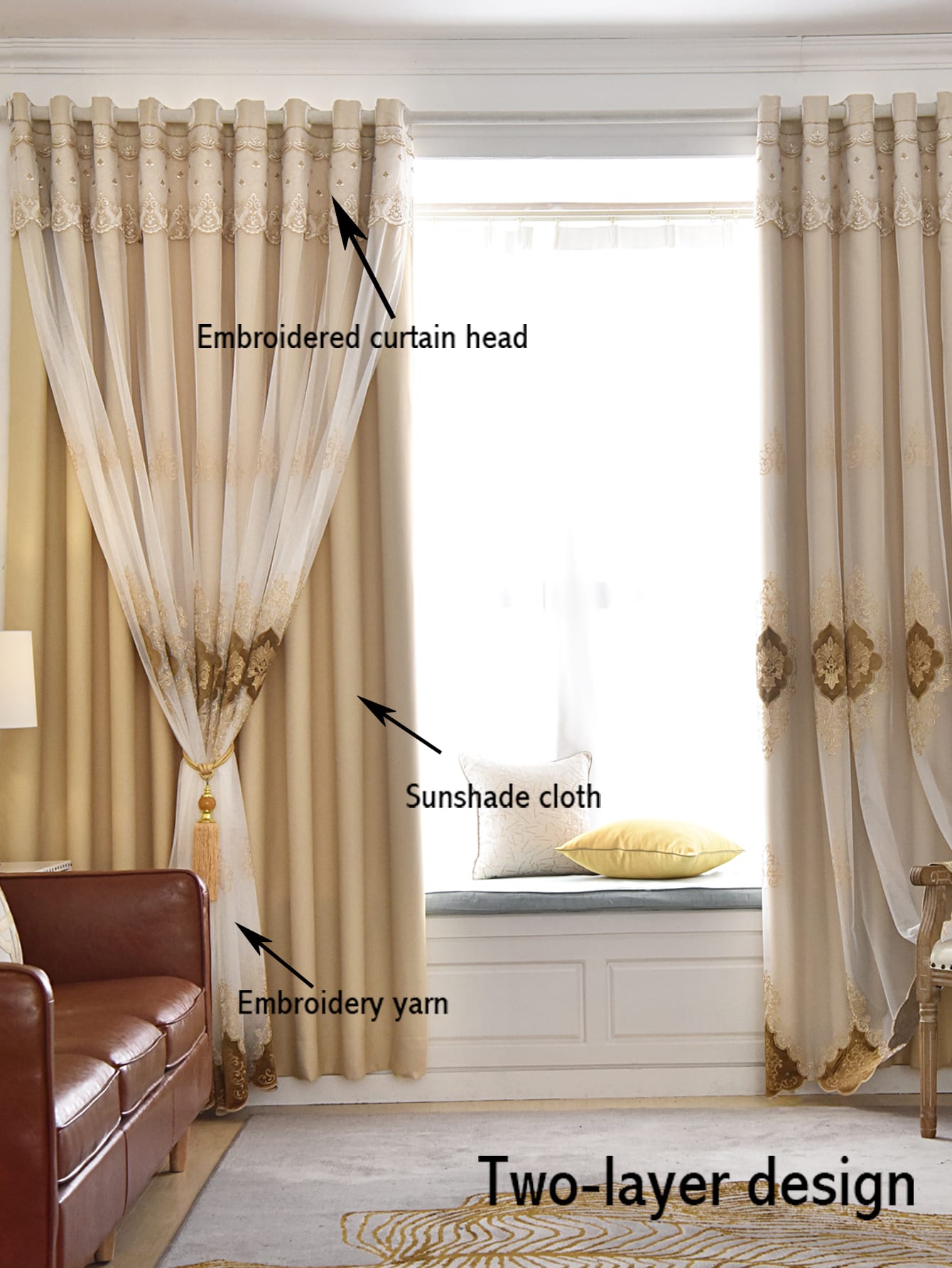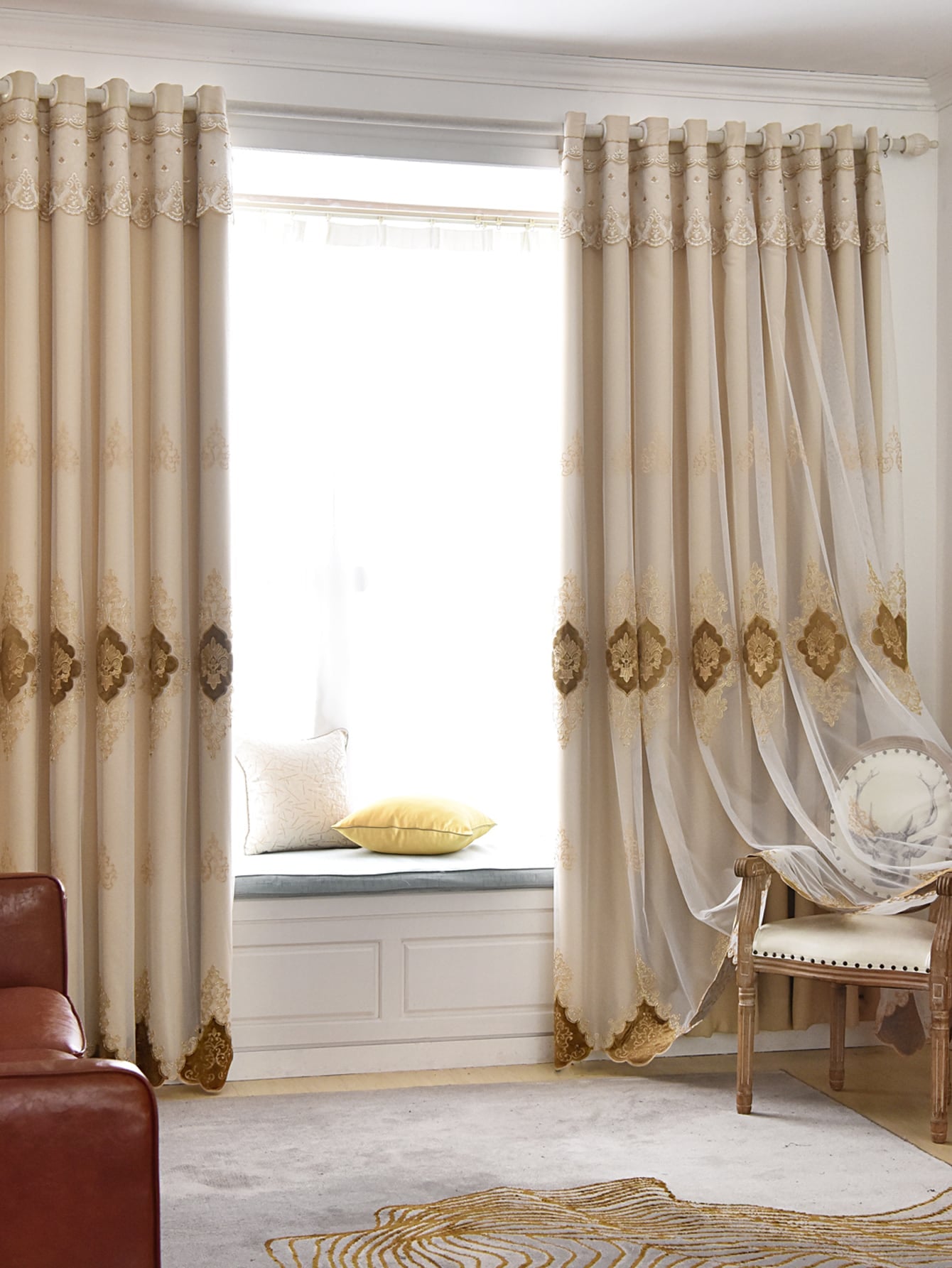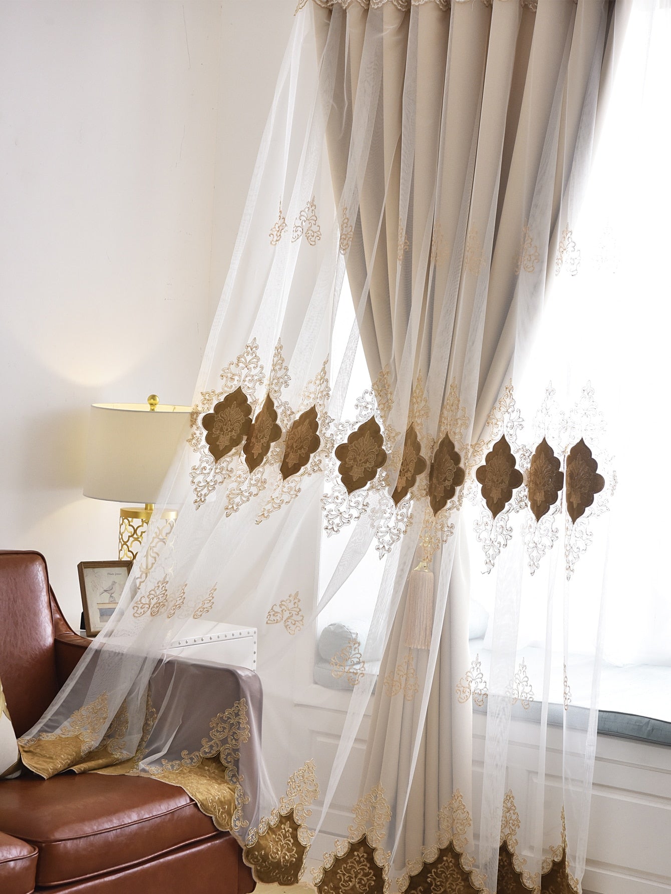 1pc European Embroidered Double-Layer Blackout Curtain