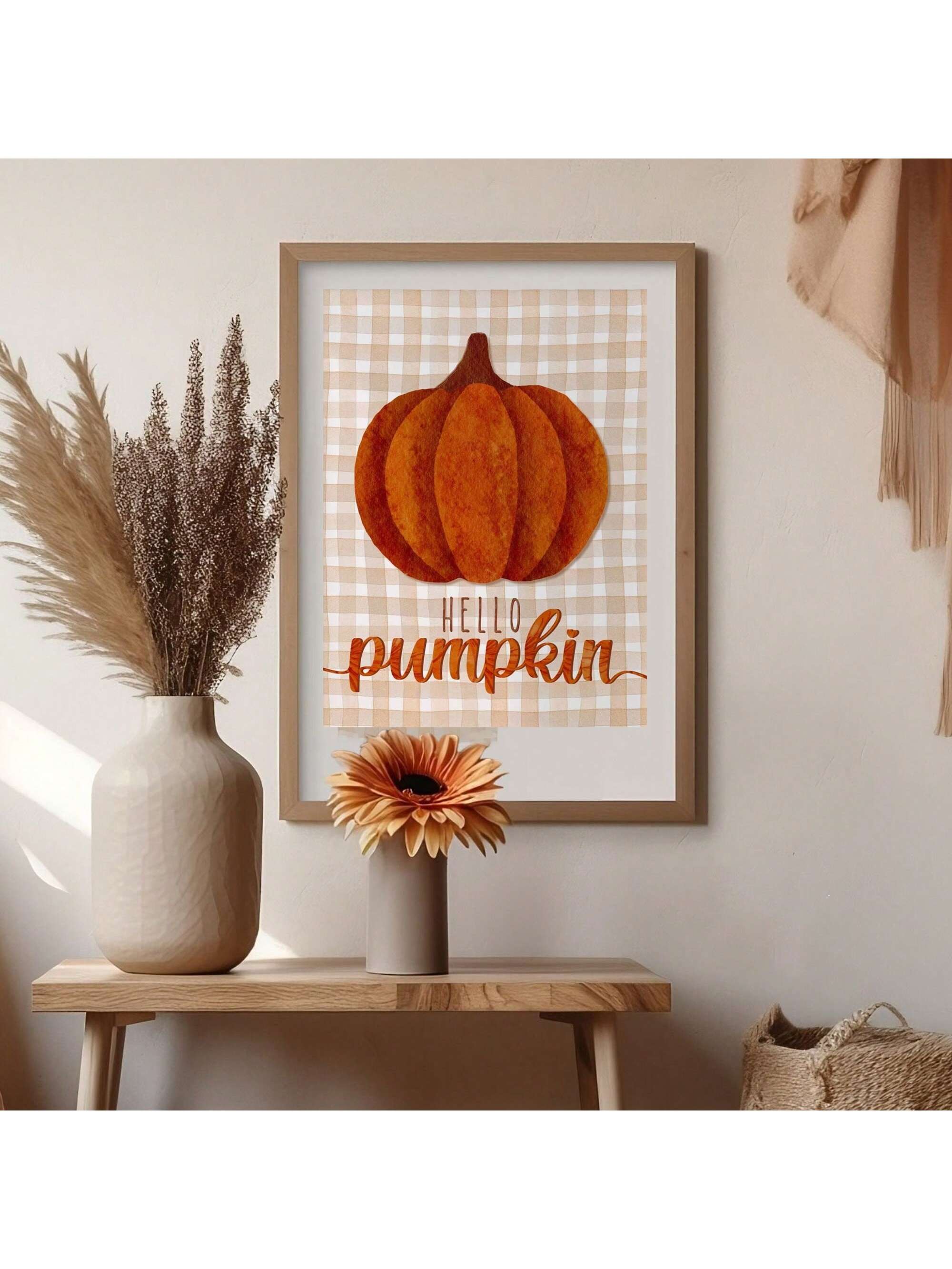 1pc Modern Abstract Hello Pumpkin - Lattice Fall Pumpkins Canvas Painting