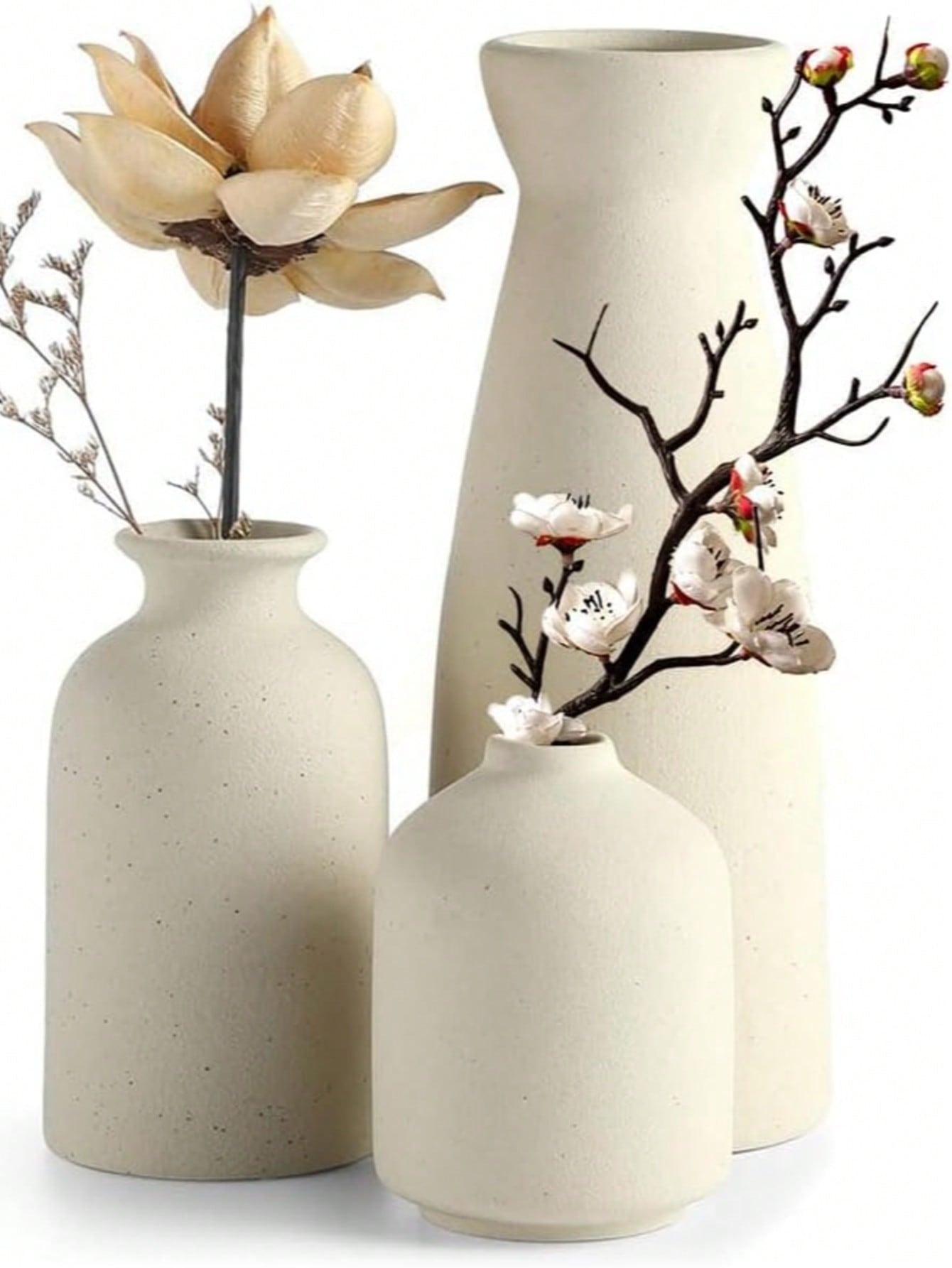 Beige Ceramic Vase Set - 1 Small Vases For Decoration