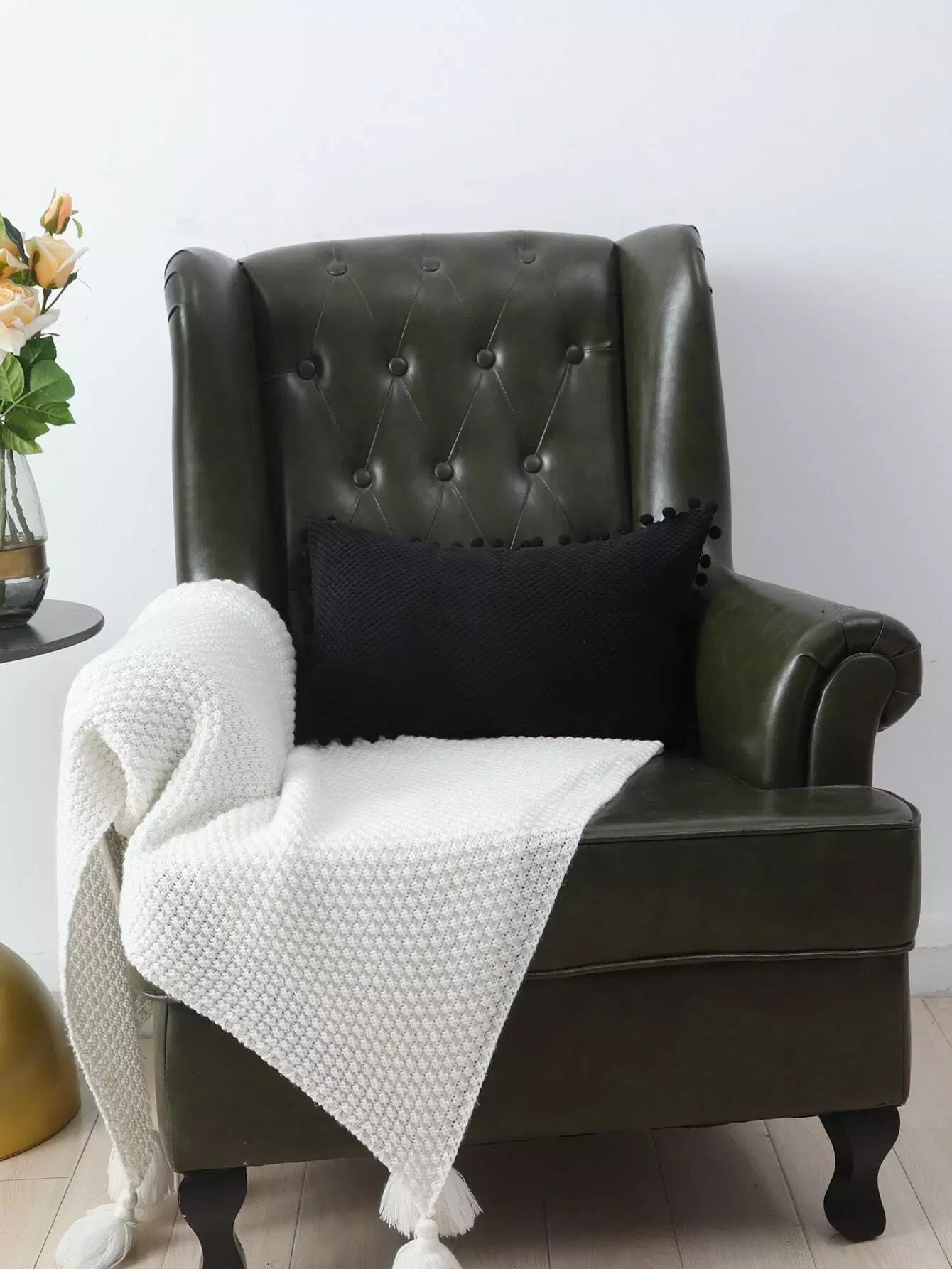 1pc Solid Pom Pom Cushion Cover Without Filler
