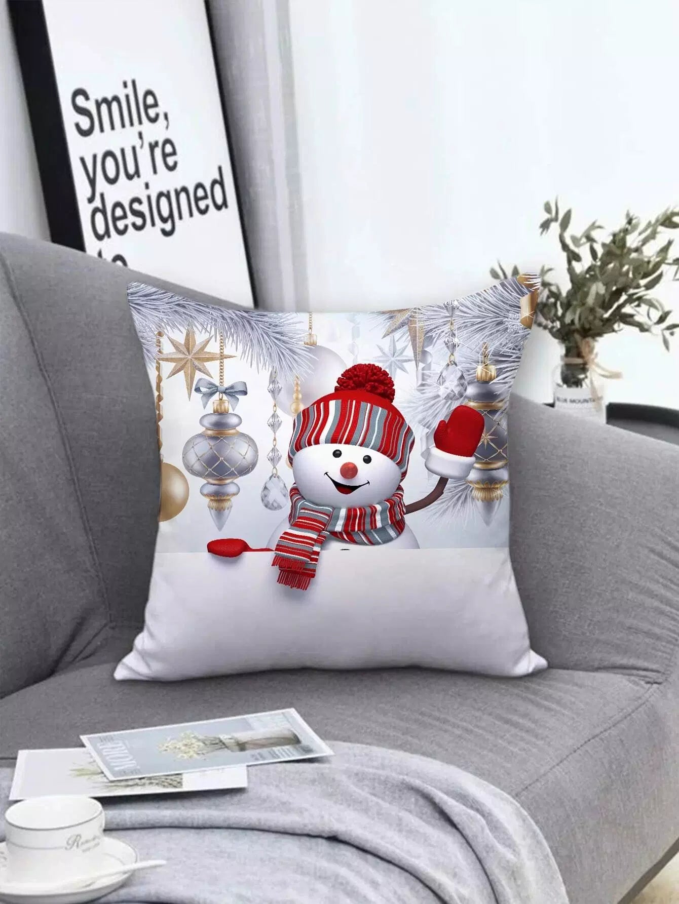 Home & Living - Christmas Snowman Print Cushion Cover Without Filler