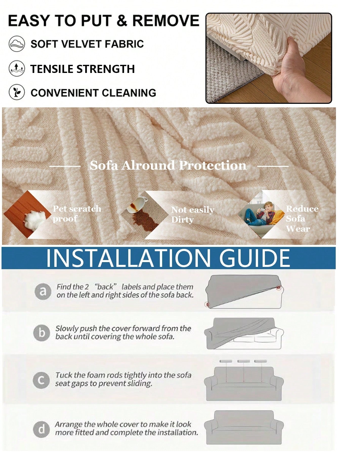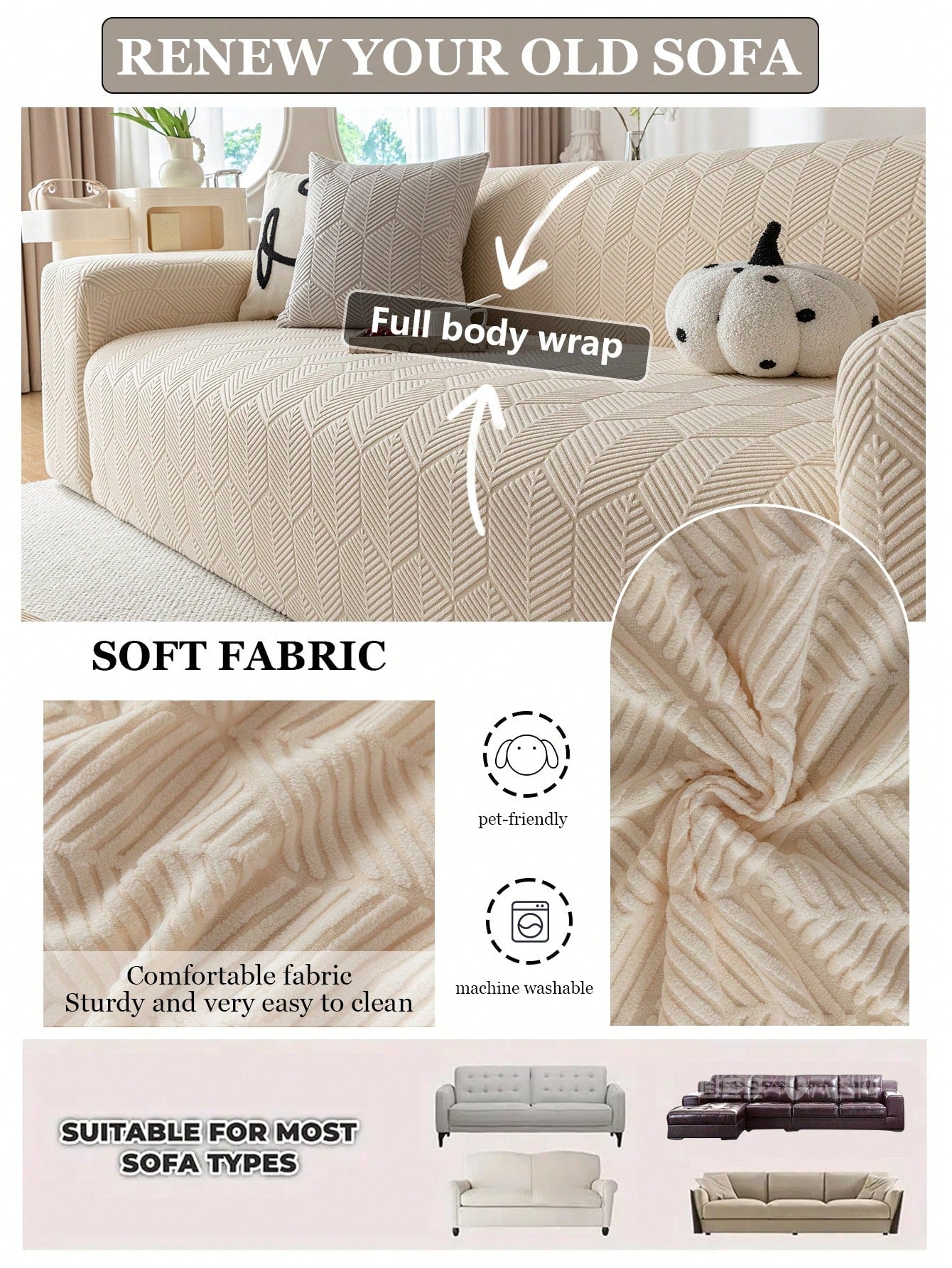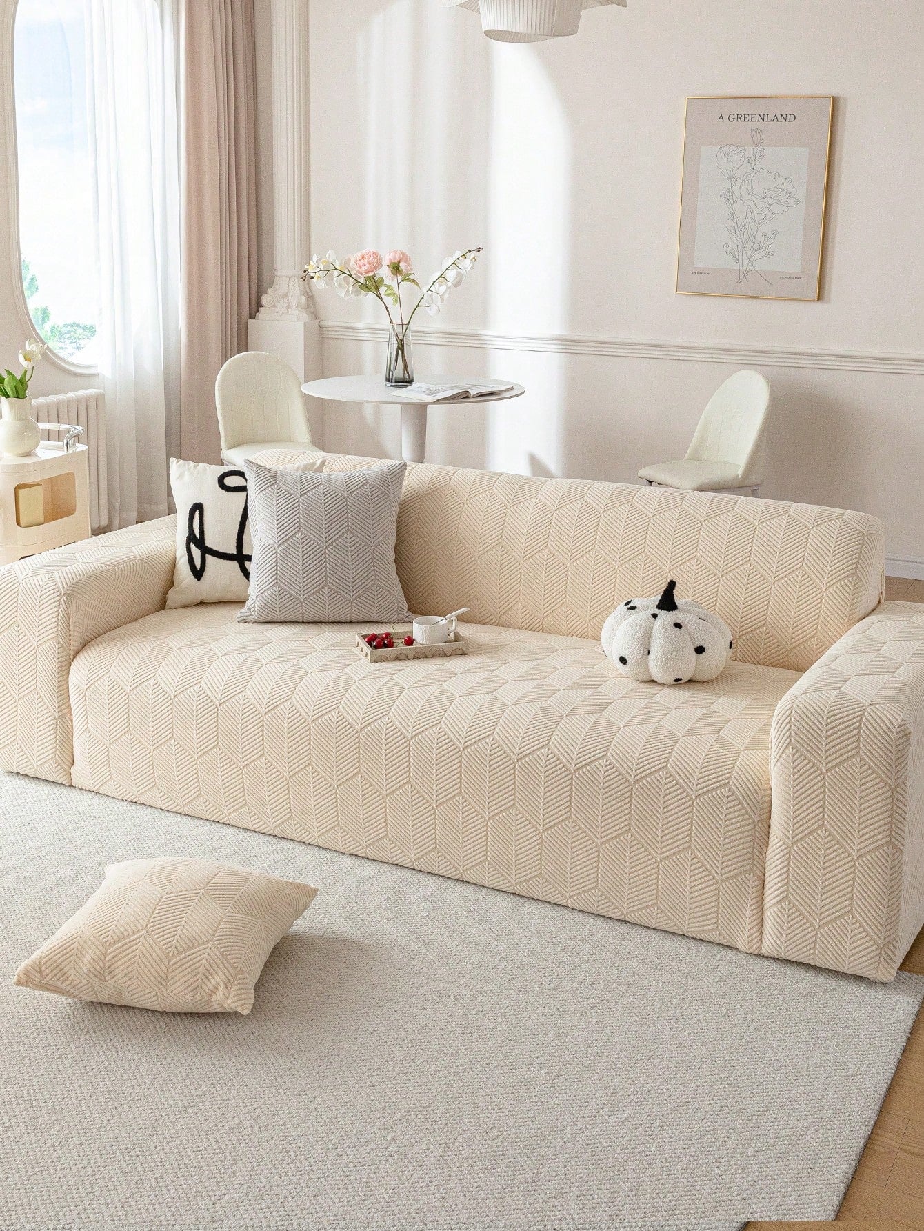 1pc 3D Sofa Cover - Elastic Multi-Functional Full Coverage Sofa Slipcover With Geometric Pattern