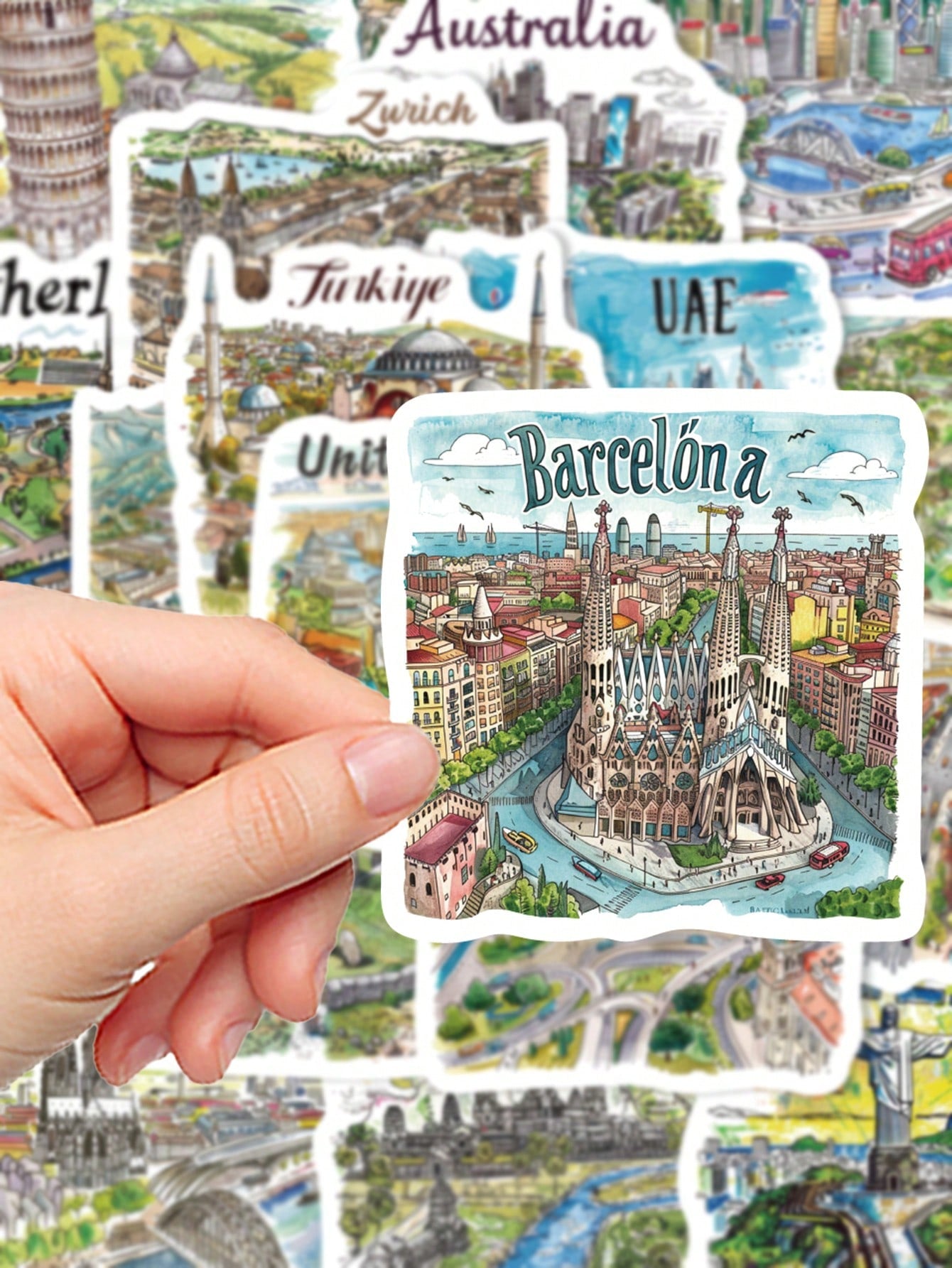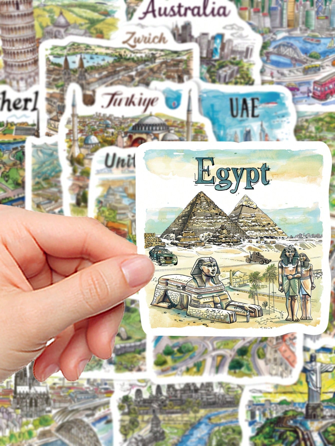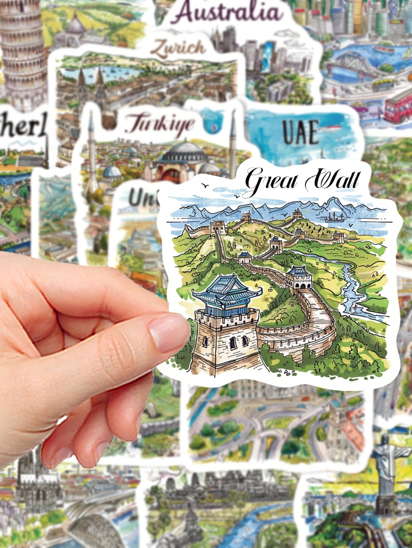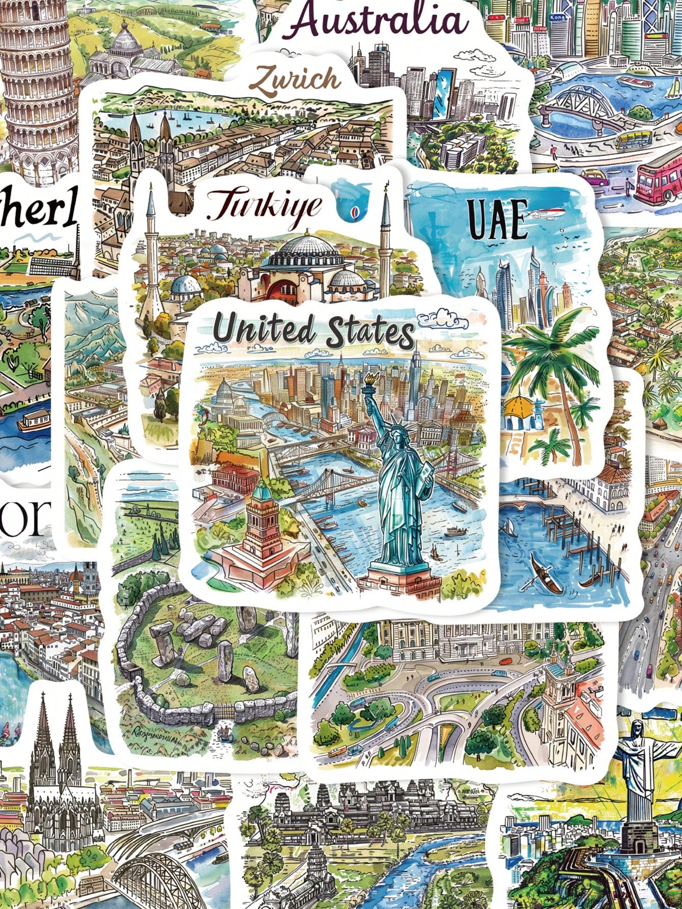 50pcs Handpainted Travel Map Stickers Cartoon City Style High-Quality DIY For Phone Case Waterproof