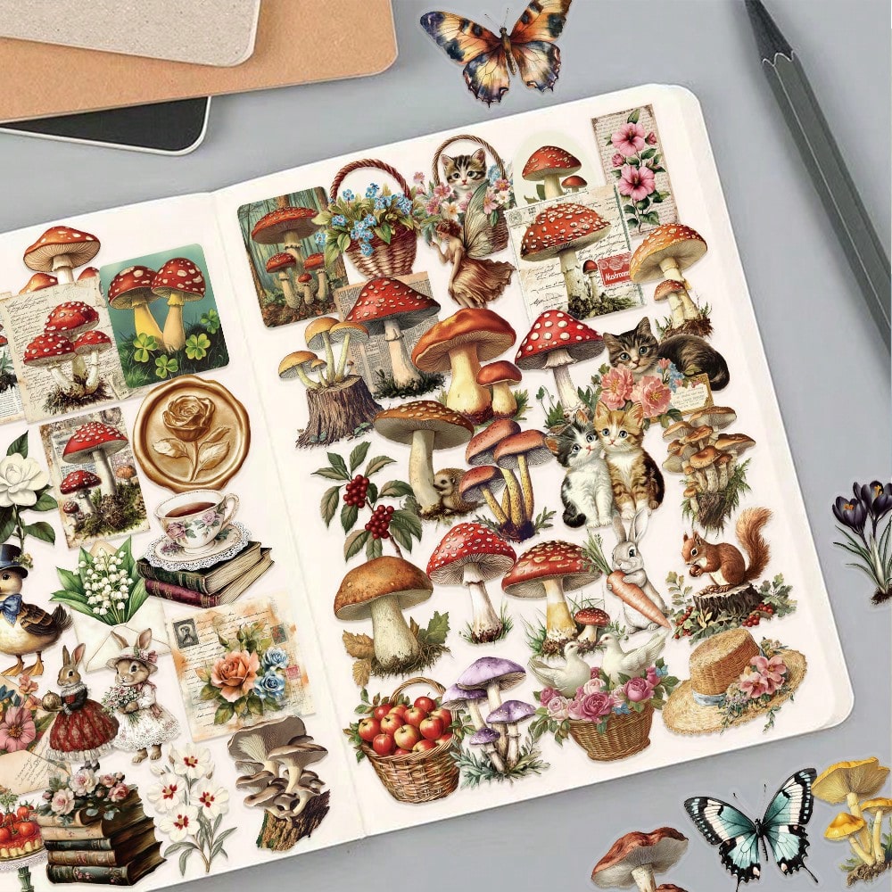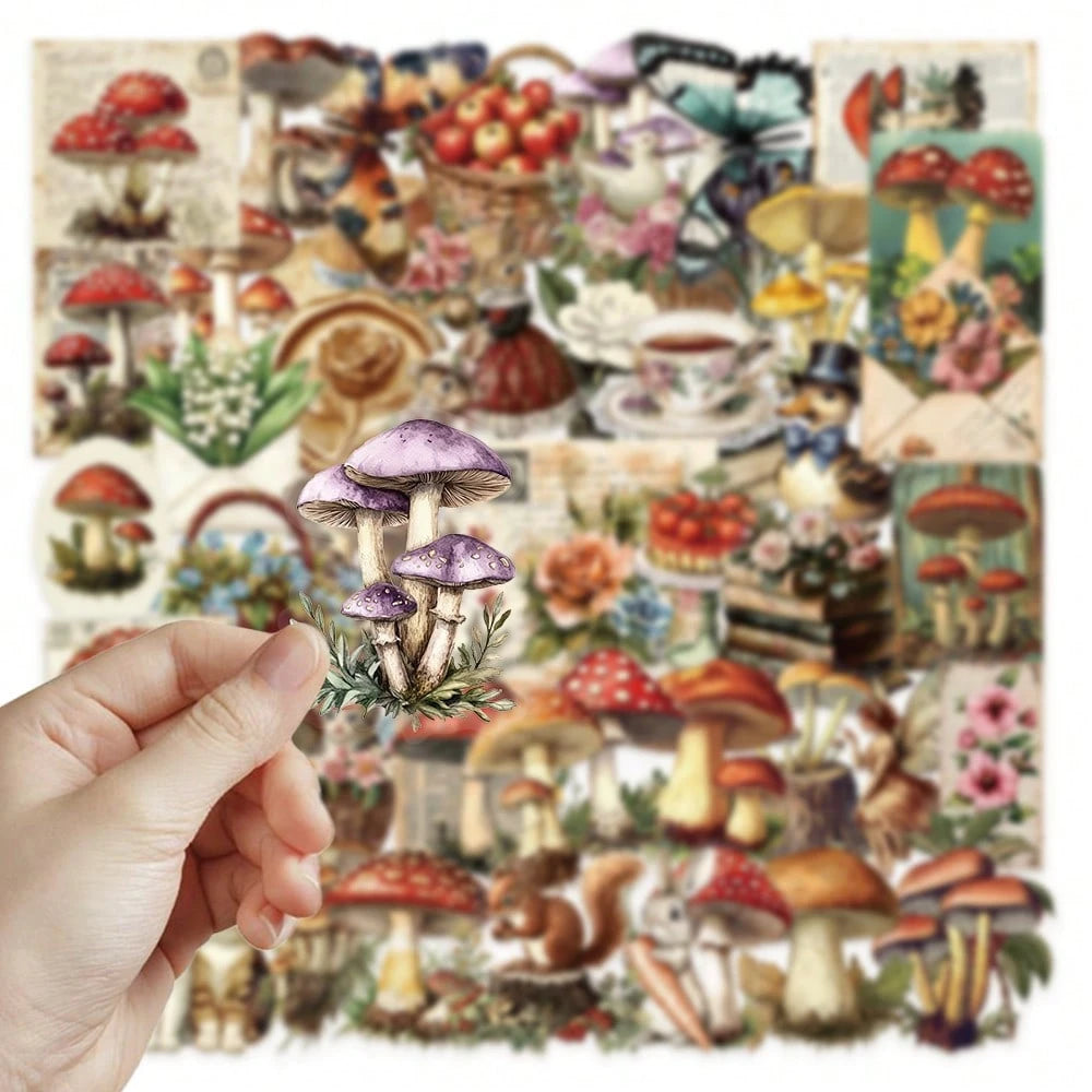 50pcs Retro Mushroom Stickers Graffiti Decal Decorative For Storage Box Notebook Phone Case Holiday