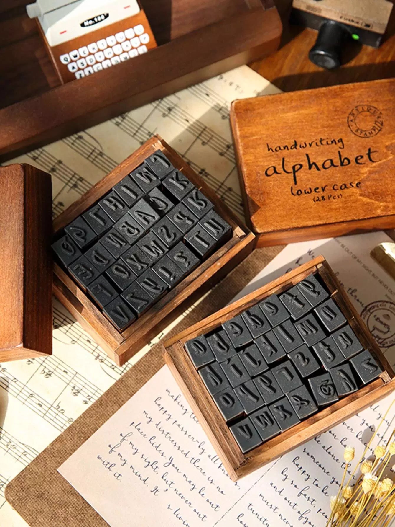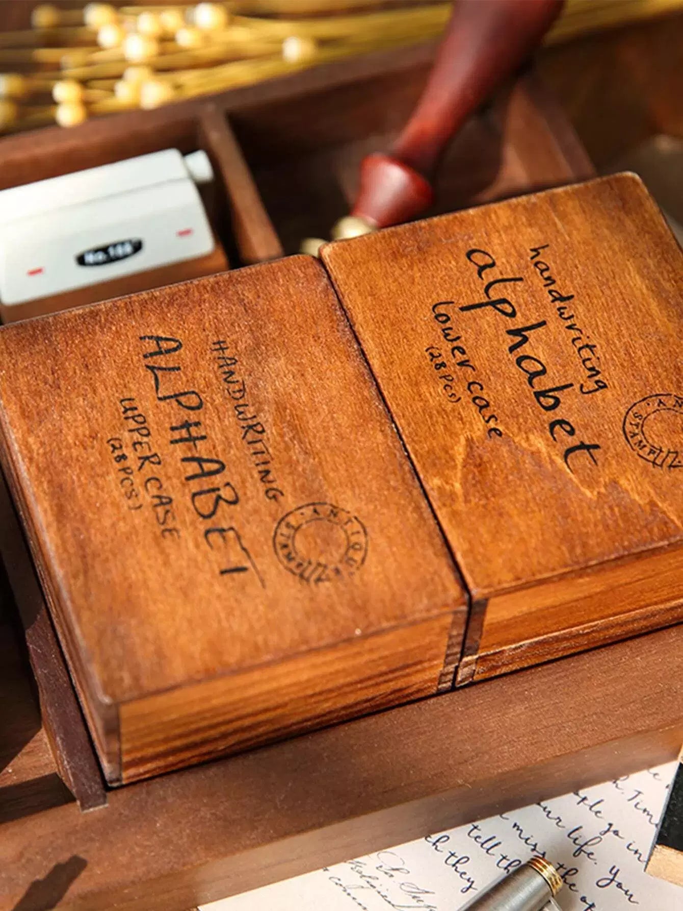 1box Letter Graphic Wooden Stamp