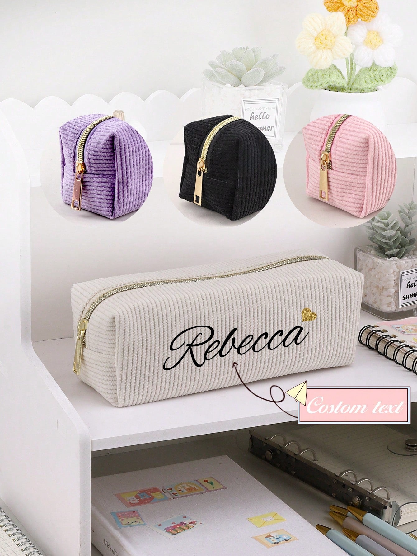1PC Thermal Transfer Custom Corduroy Pencil Case - Stationery Storage Pencil Case With Zipper