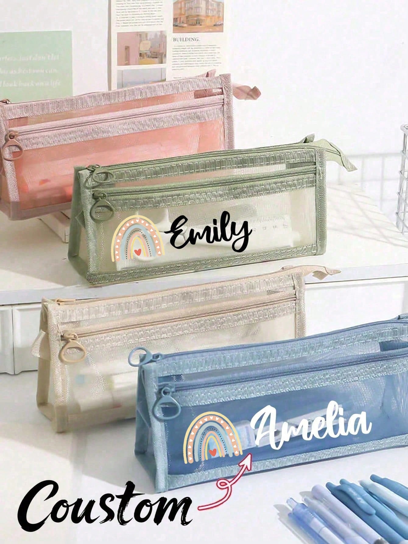 Personalized Name Transparent Large Capacity Pencil Box