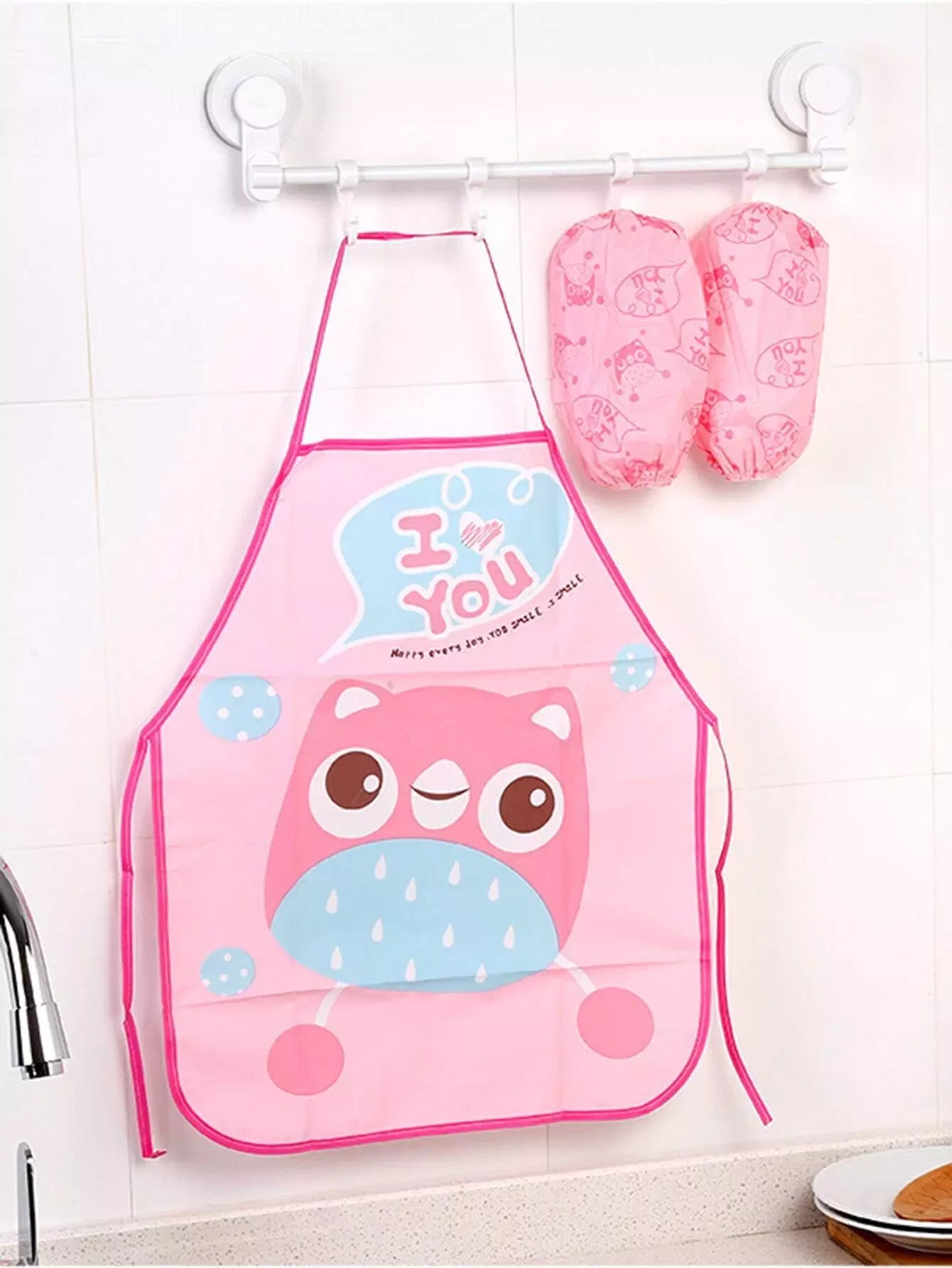 1pc Kids Cartoon Graphic Apron With Sleeve Cover