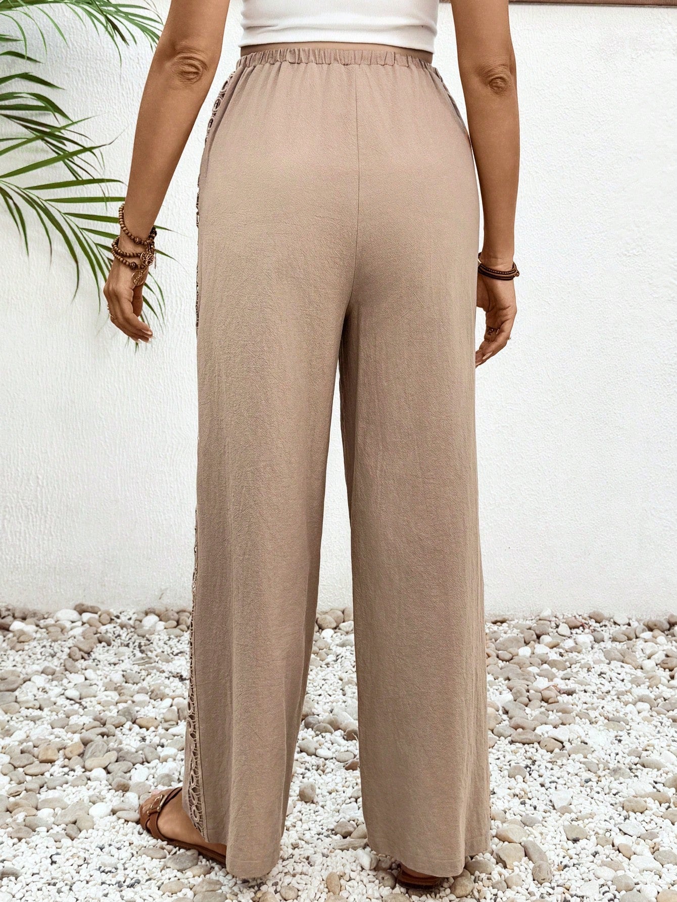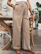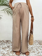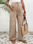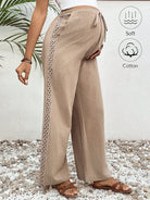 Maternity Solid Color Waist Tie Contrast Lace Pocket Casual Pants