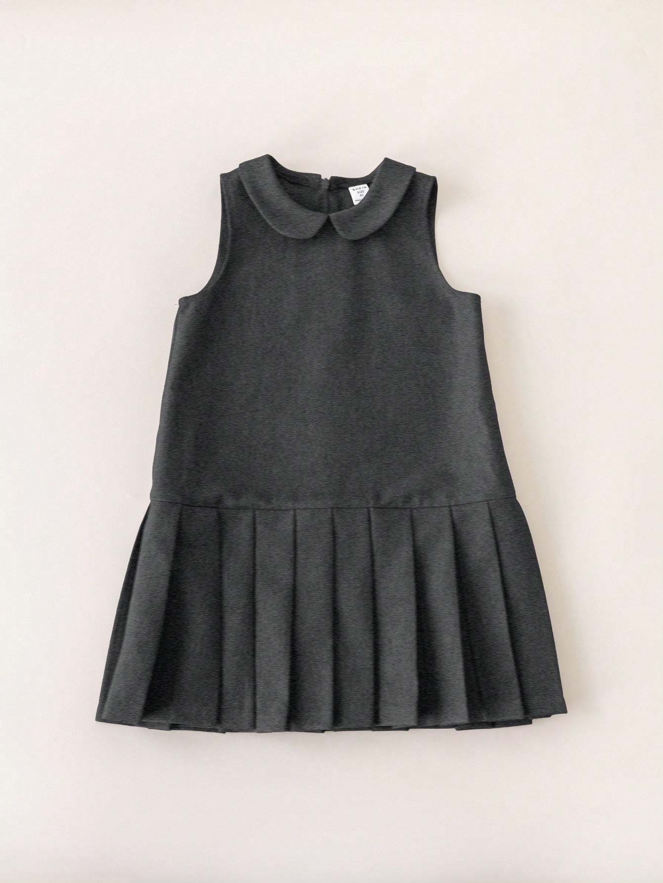 PrepCrw Young Girls Autumn/Winter Loose Woven Sleeveless Brown Dress, Collegiate Style