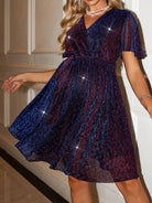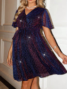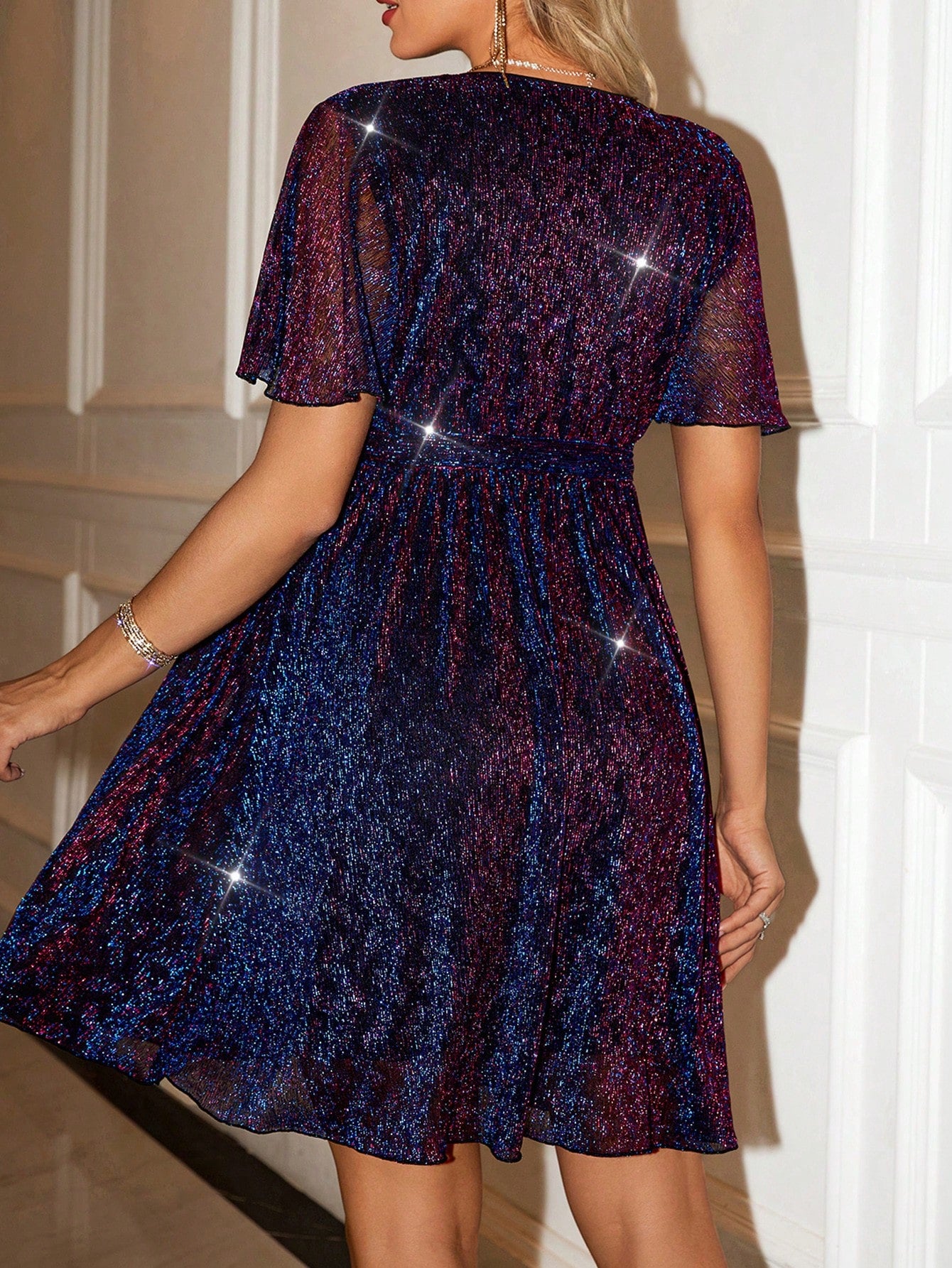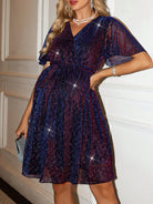 Surplice Neck Glitter Cocktail Party Long Sleeve Dress, For Pregnant Women, For Maternity Without Belt