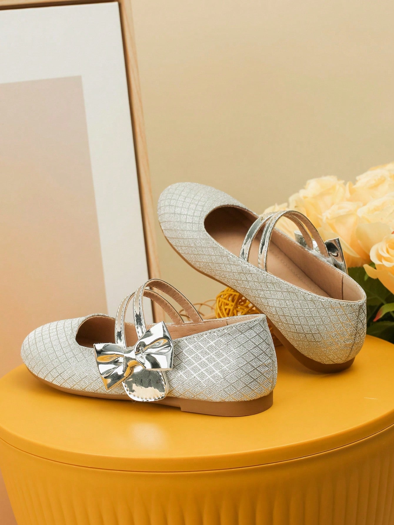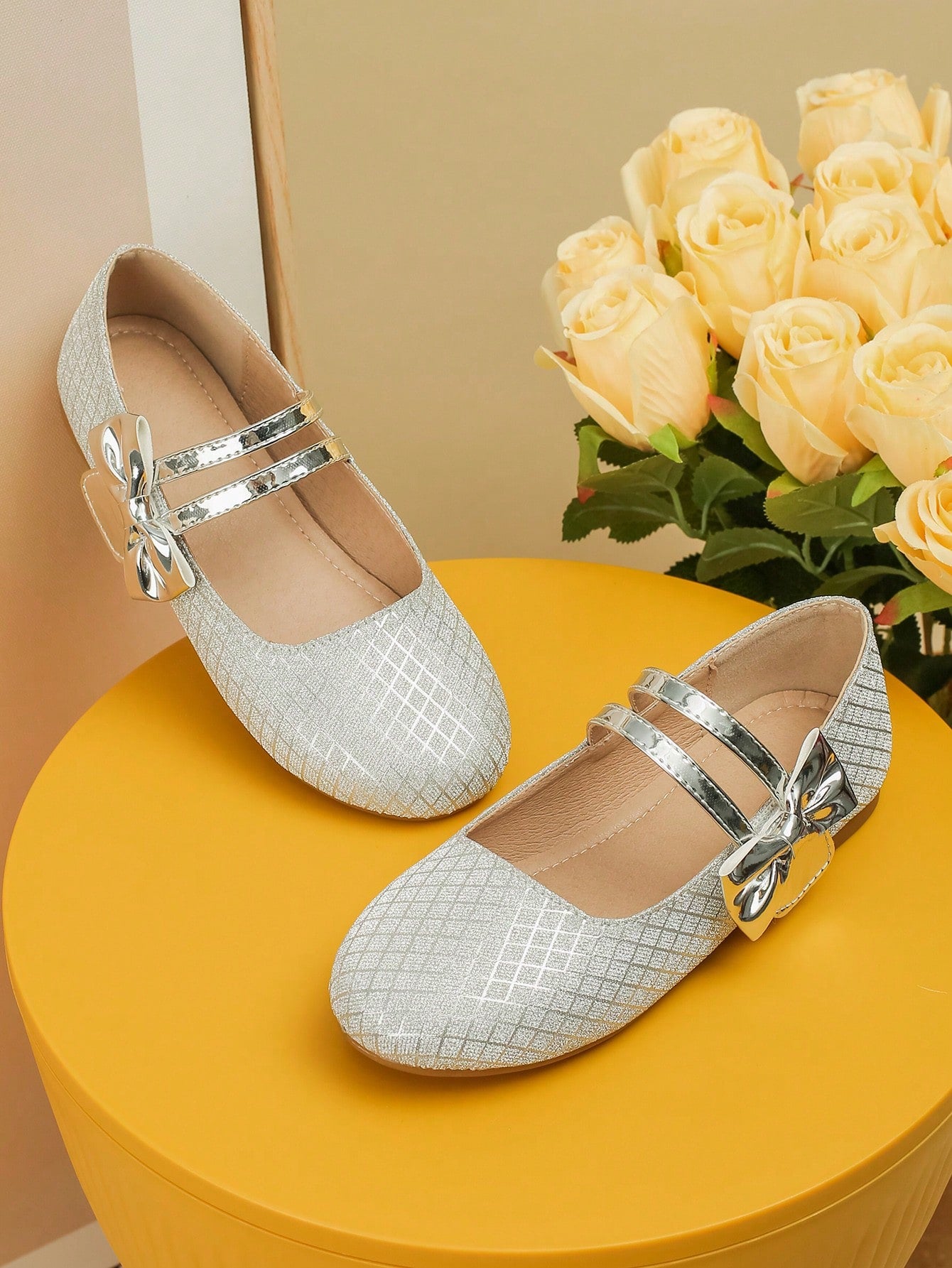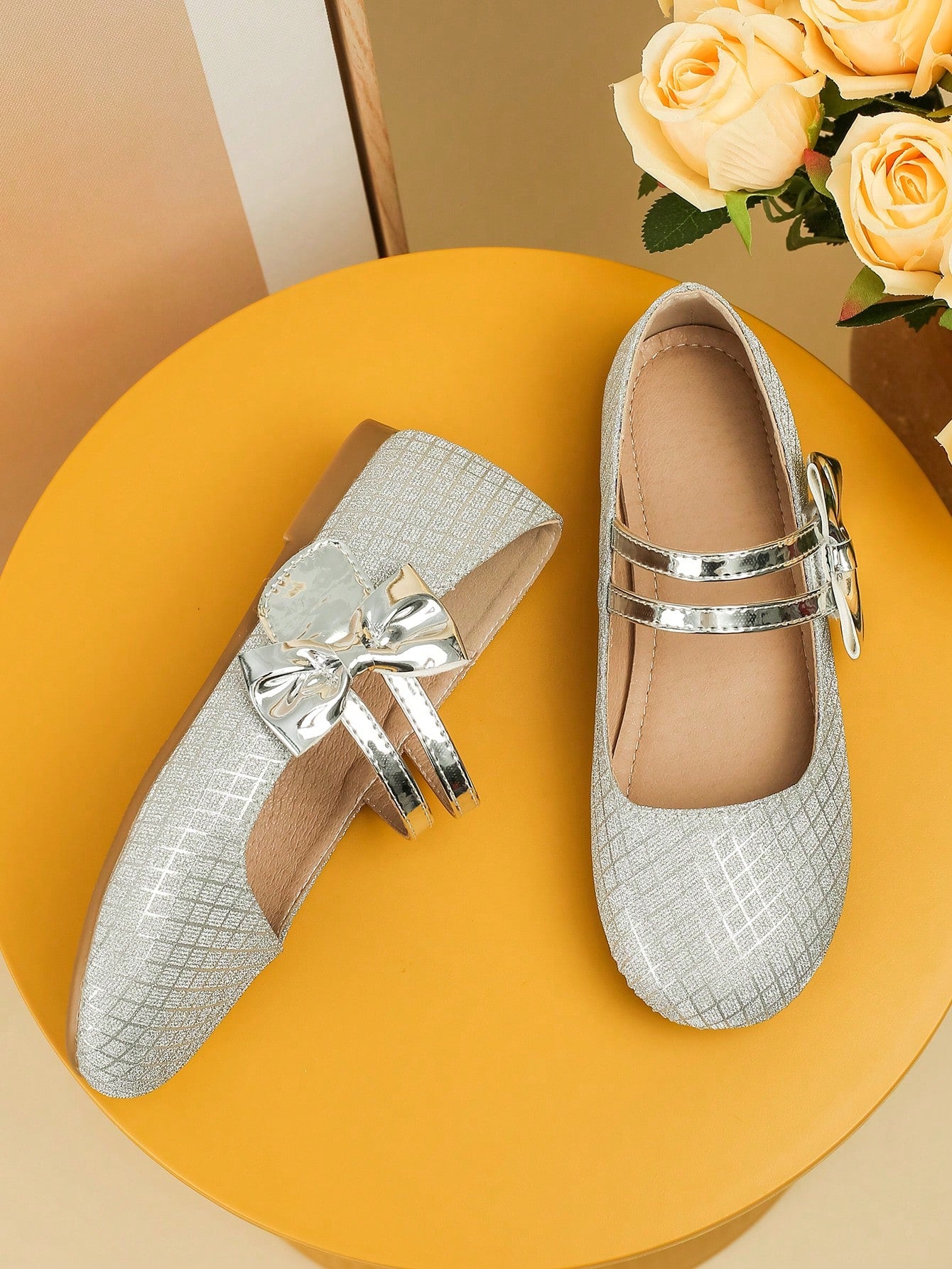 1pair Girls' Fashionable Metallic Flat Shoes, Teen Students Casual Loafers