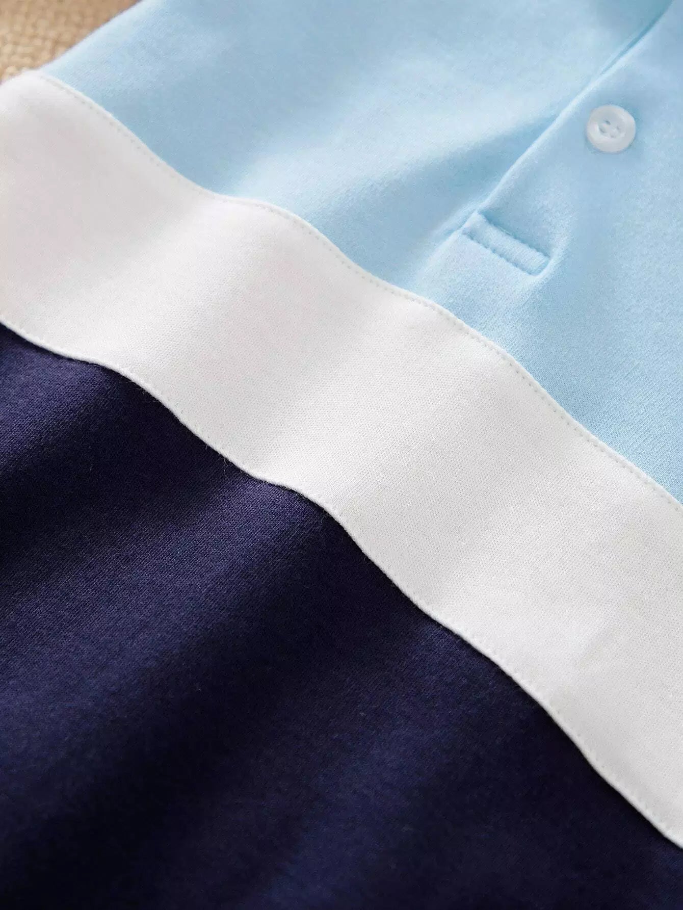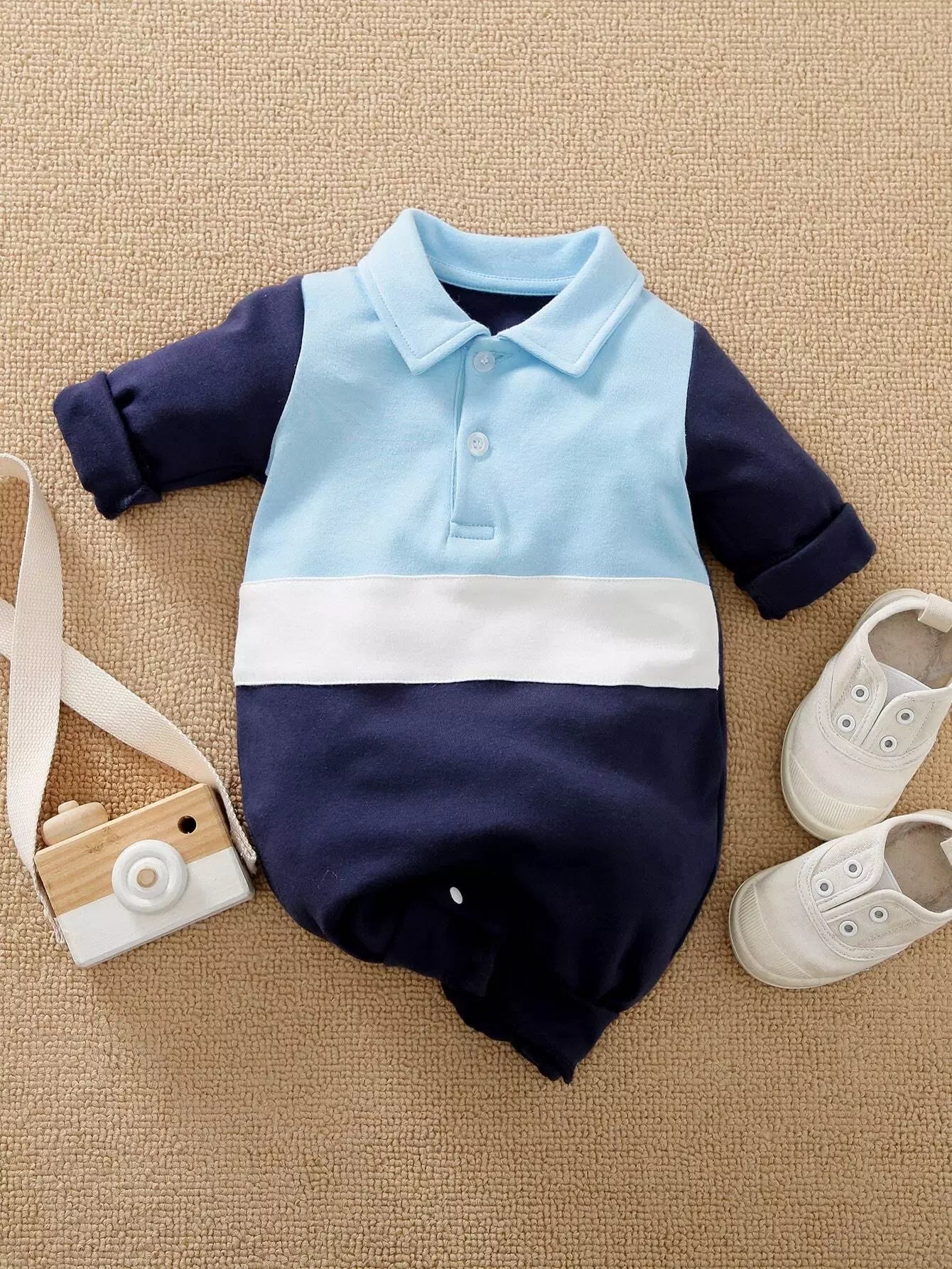 Baby Boy Button Half Placket Colorblock Jumpsuit