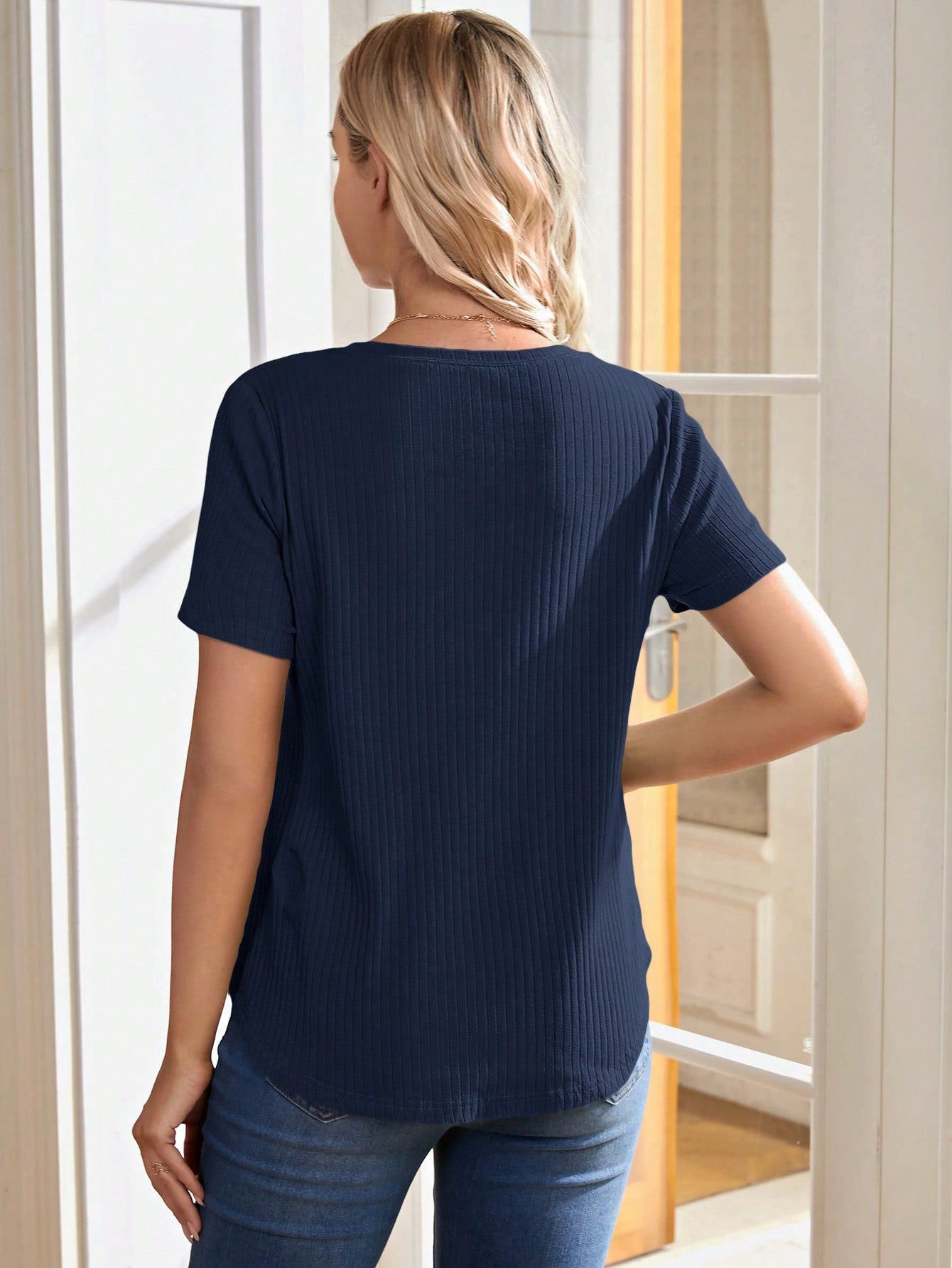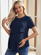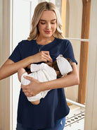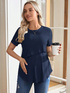 SHEIN Maternity Casual Solid Color Short Sleeve Nursing T-Shirt