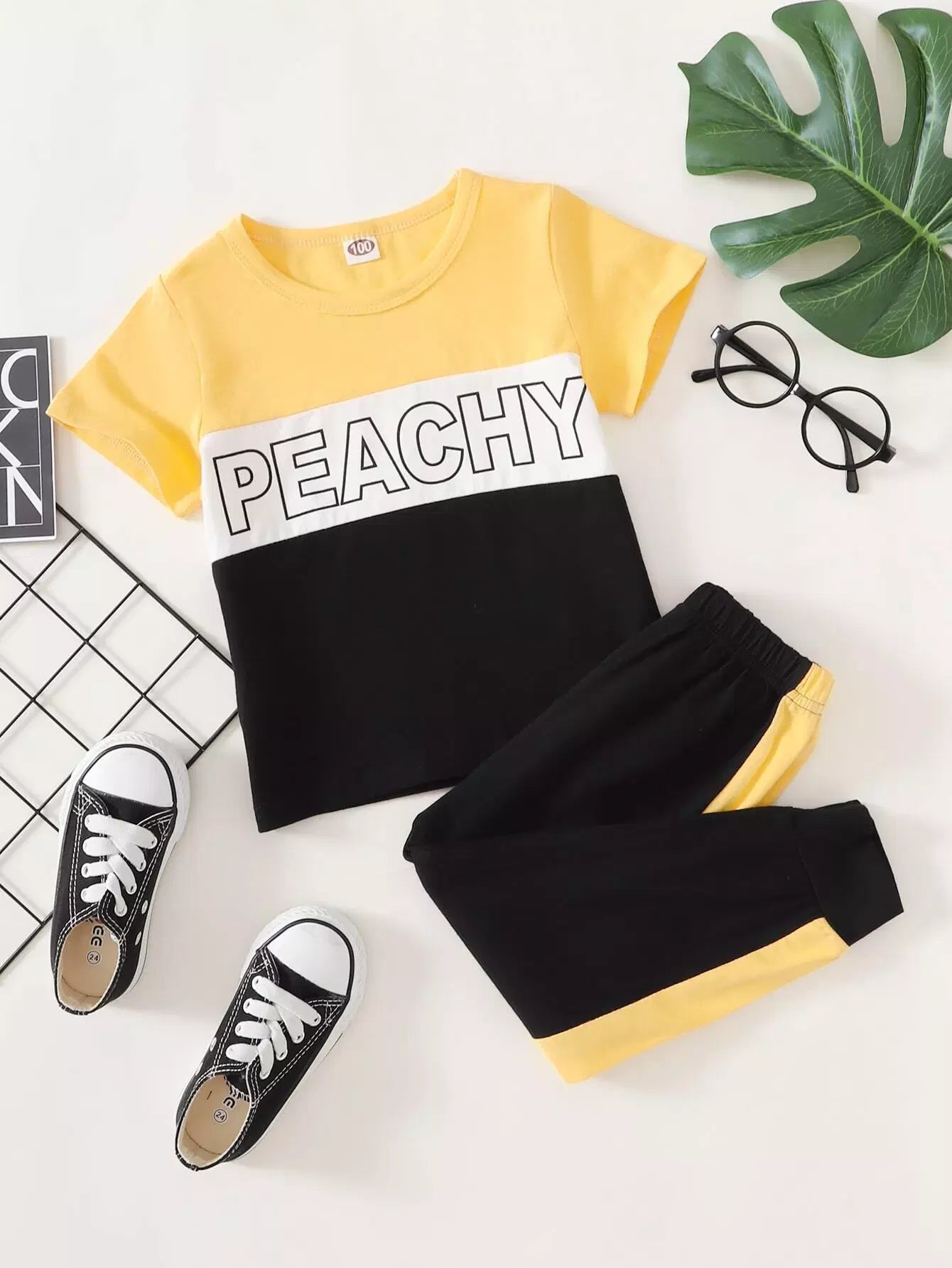 Toddler Boys Colorblock Letter Graphic Tee & Sweatpants