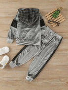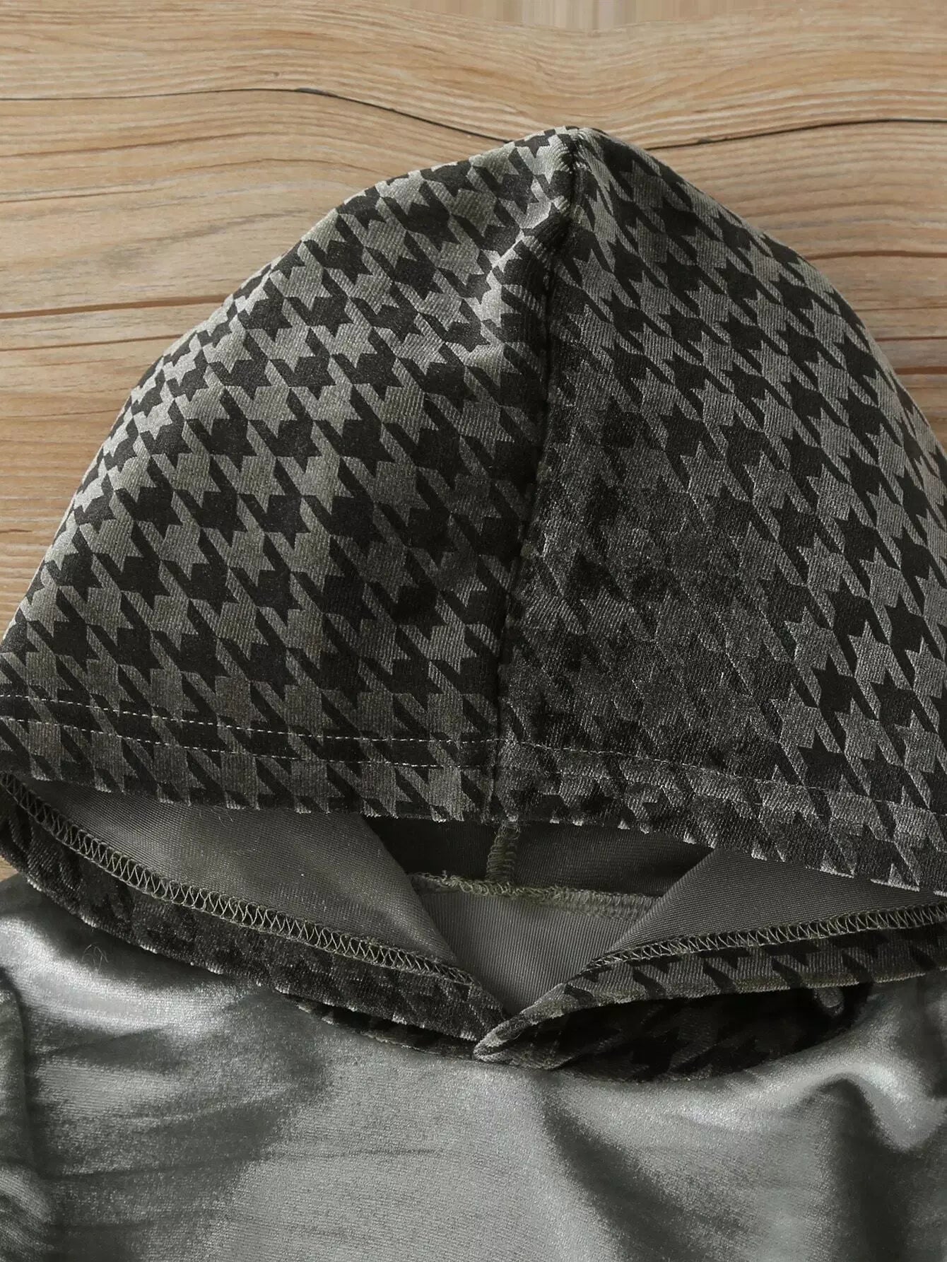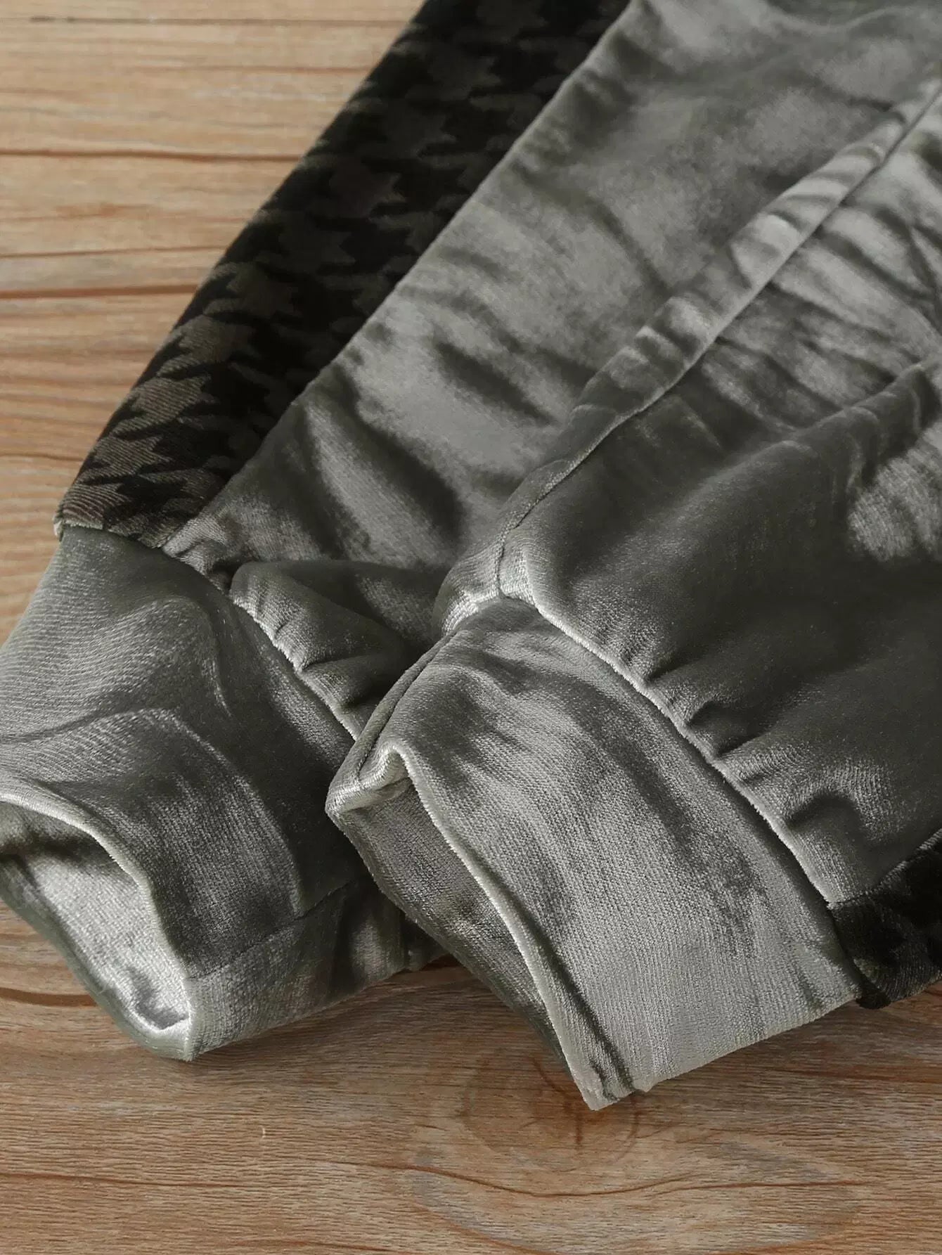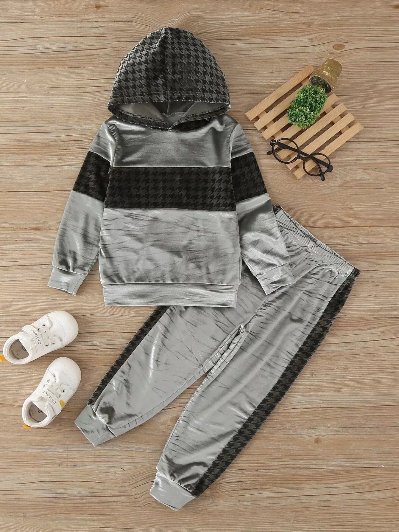 Toddler Boys Houndstooth Pattern Color Block Velvet Hoodie & Sweatpants