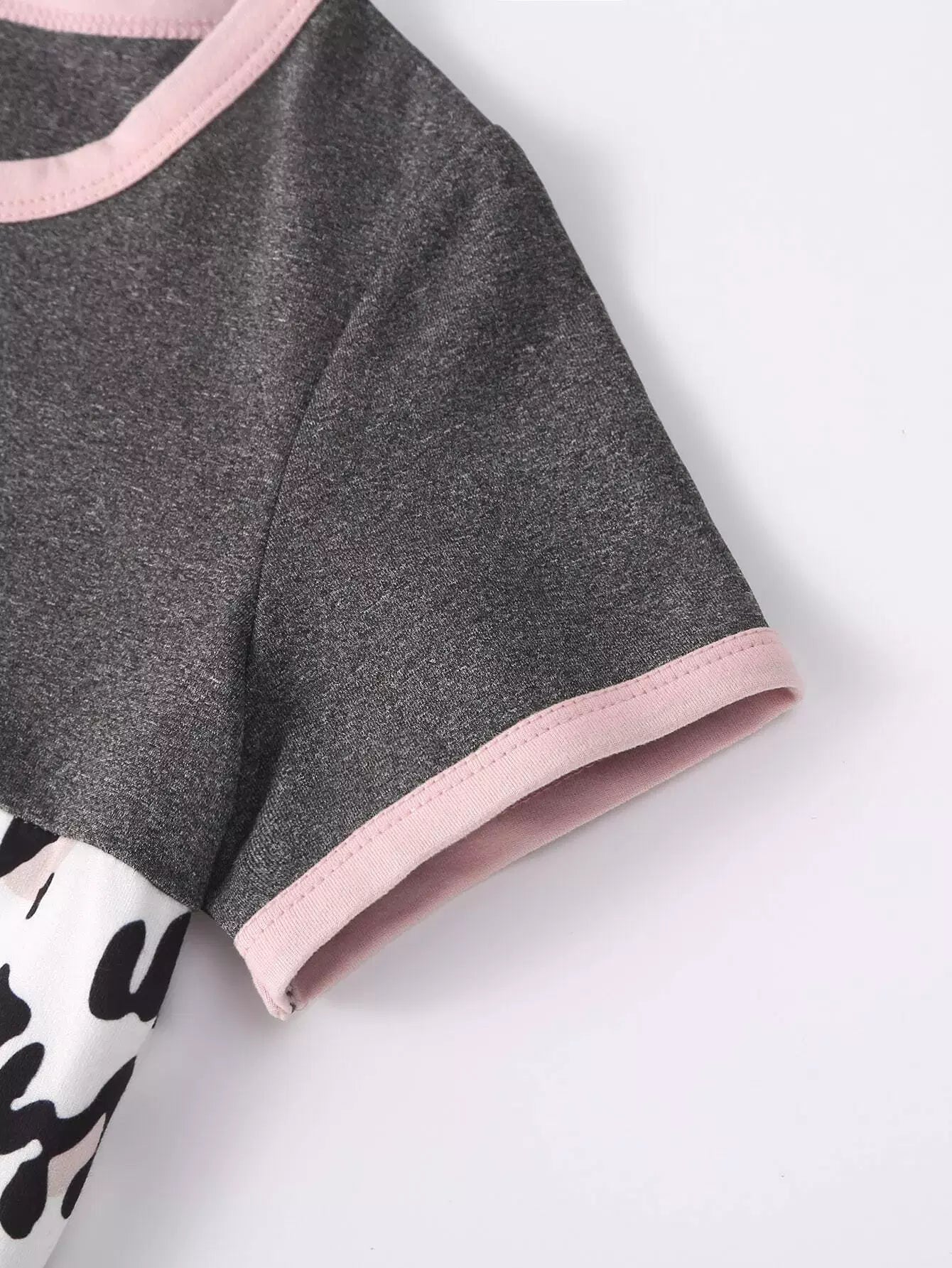 Kids - Toddler Girls Contrast Leopard Colorblock Tee